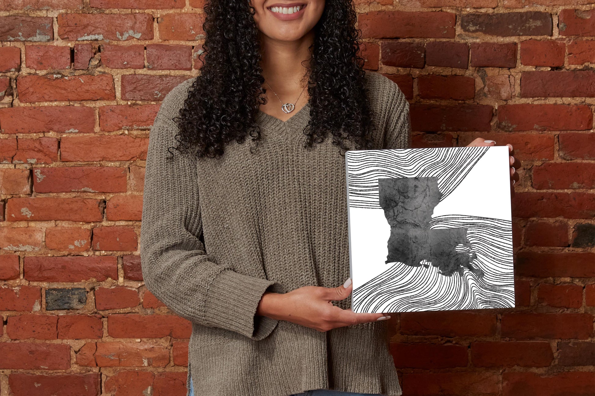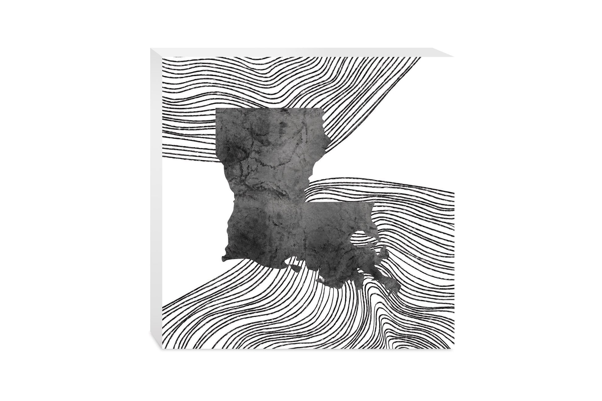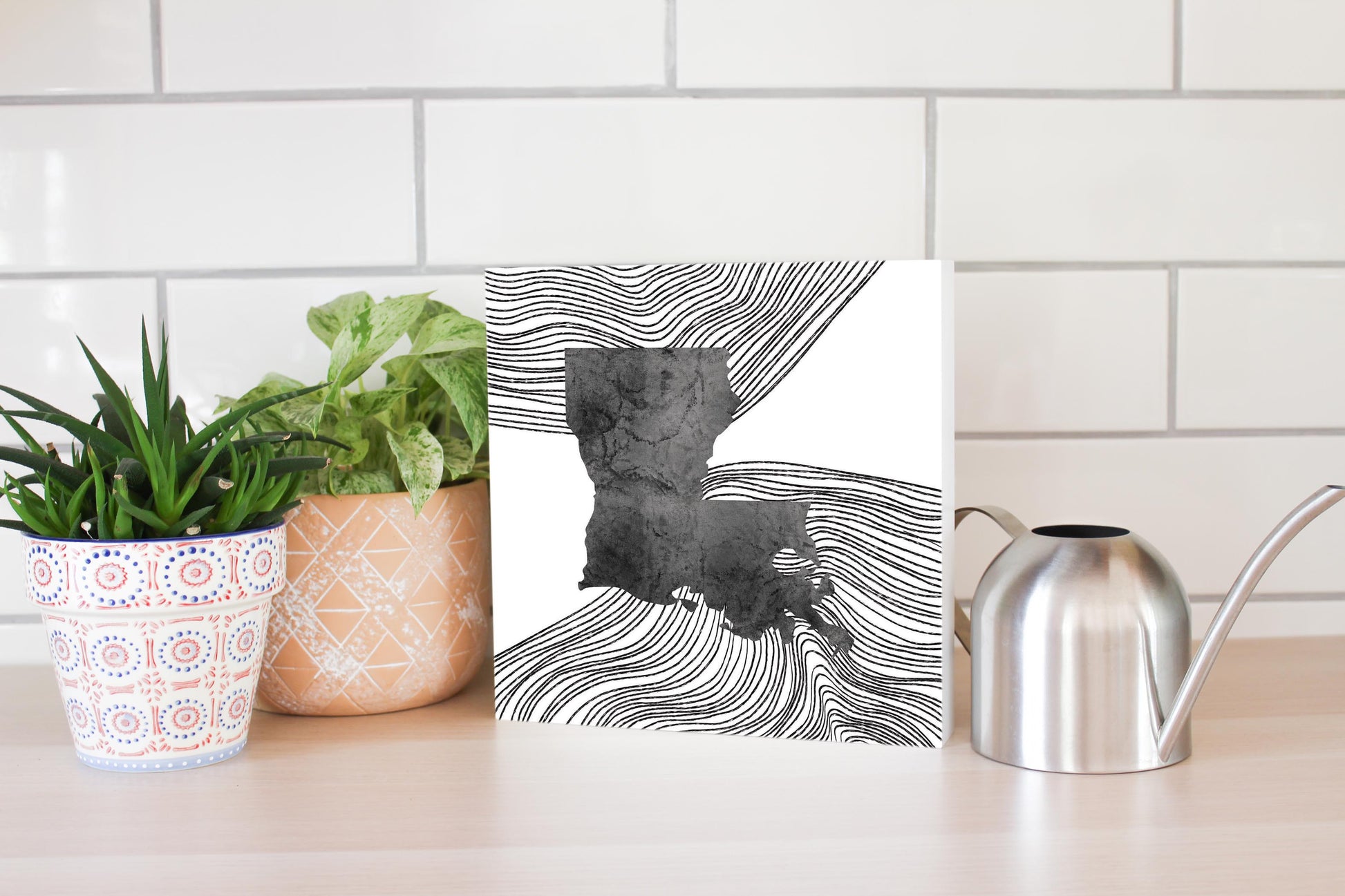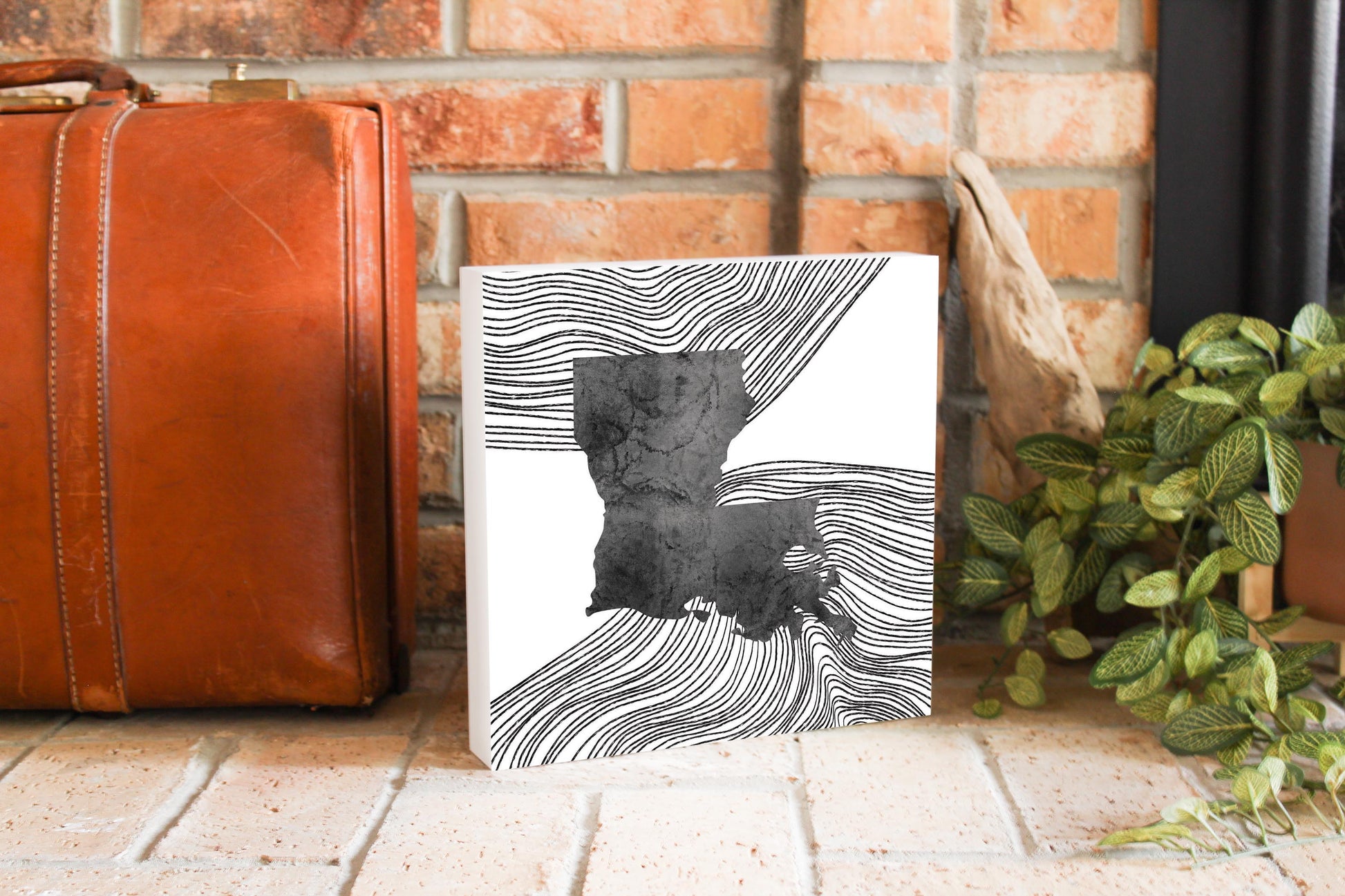 Modern Louisiana State Shape With Fluid Lines | Wood Block | Eaches | Min 2