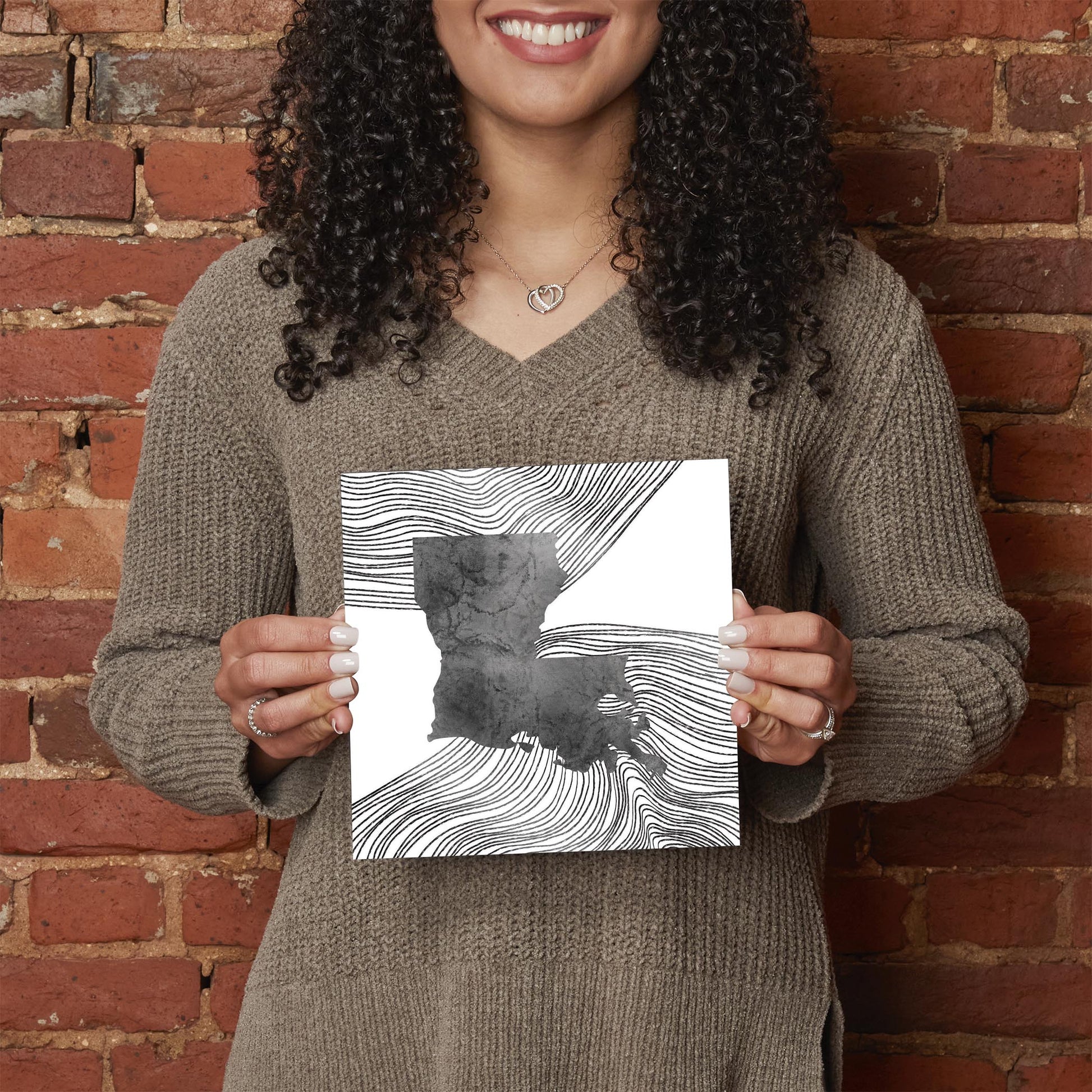 Modern Louisiana State Shape With Fluid Lines | Hi-Def Glass Art | Eaches | Min 2