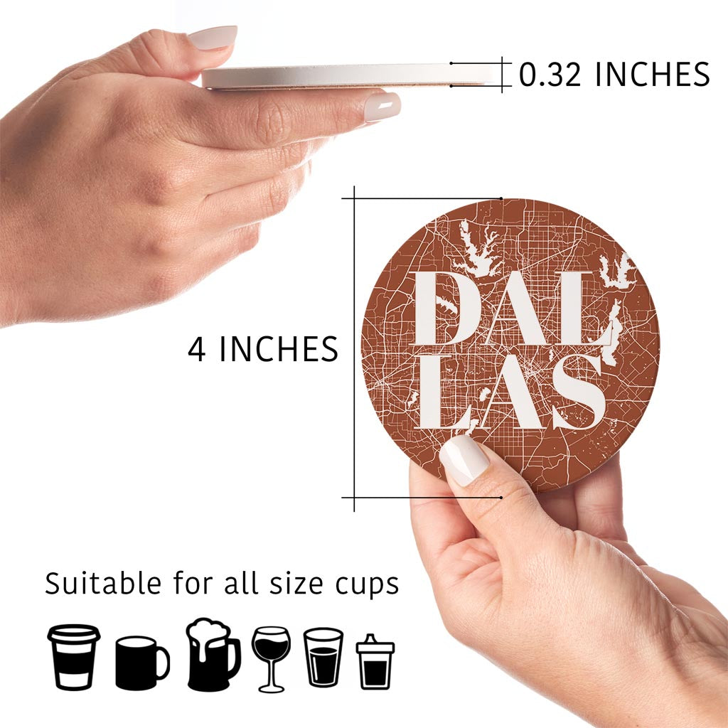 Modern Minimalist Dallas Texas Map | Absorbent Coasters | Set of 4 | Min 2