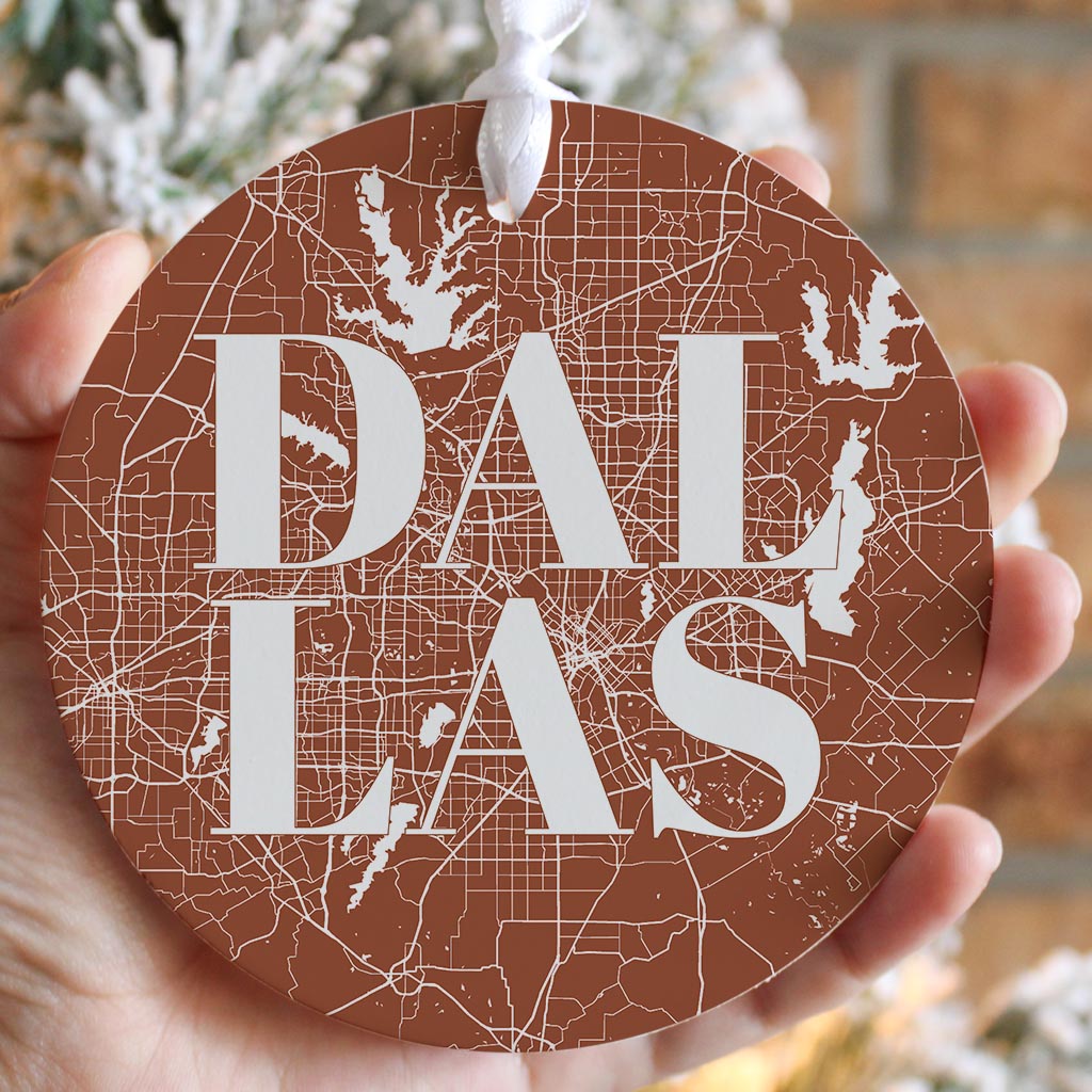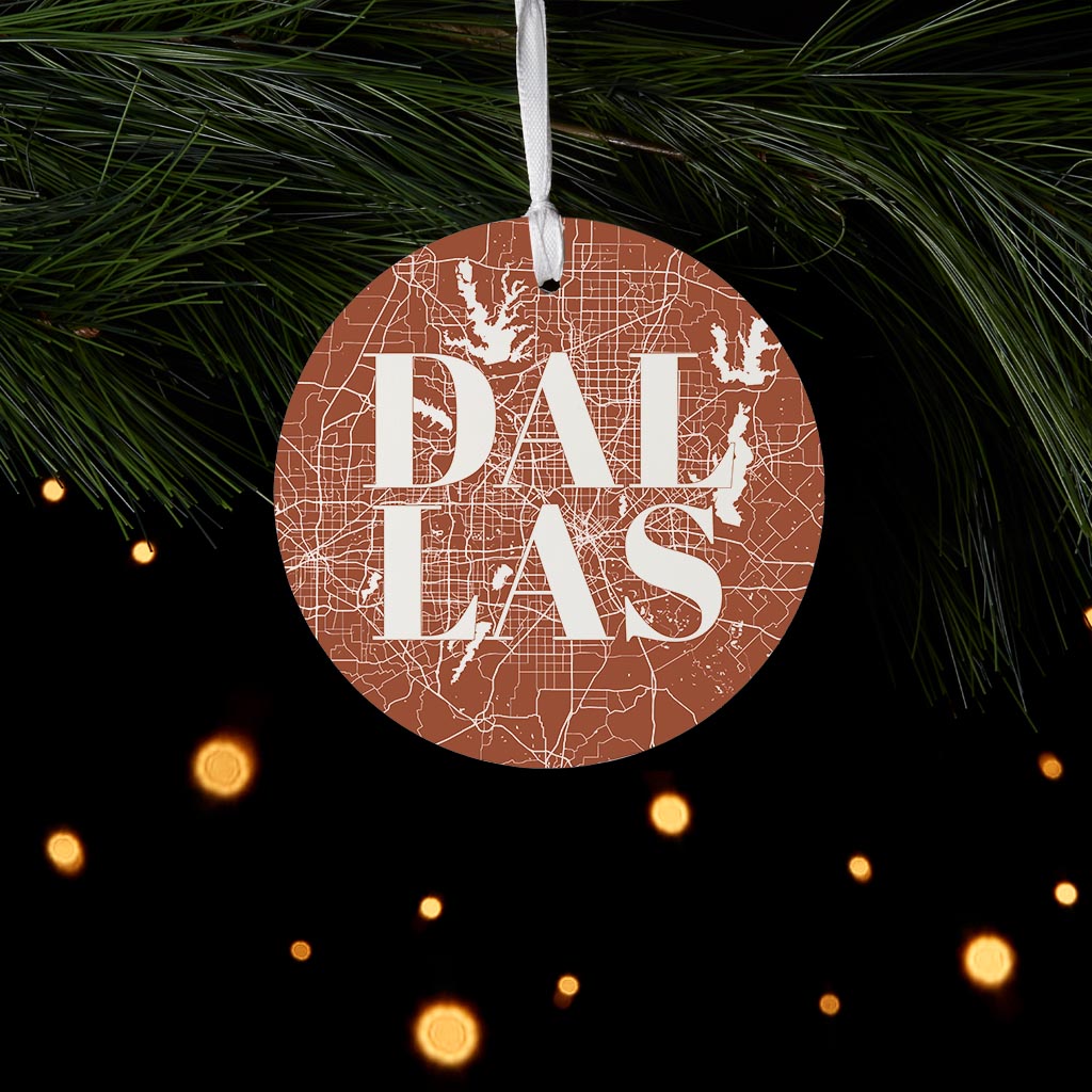 Modern Minimalist Dallas Texas Map | Wood Ornament | Eaches | Min 6