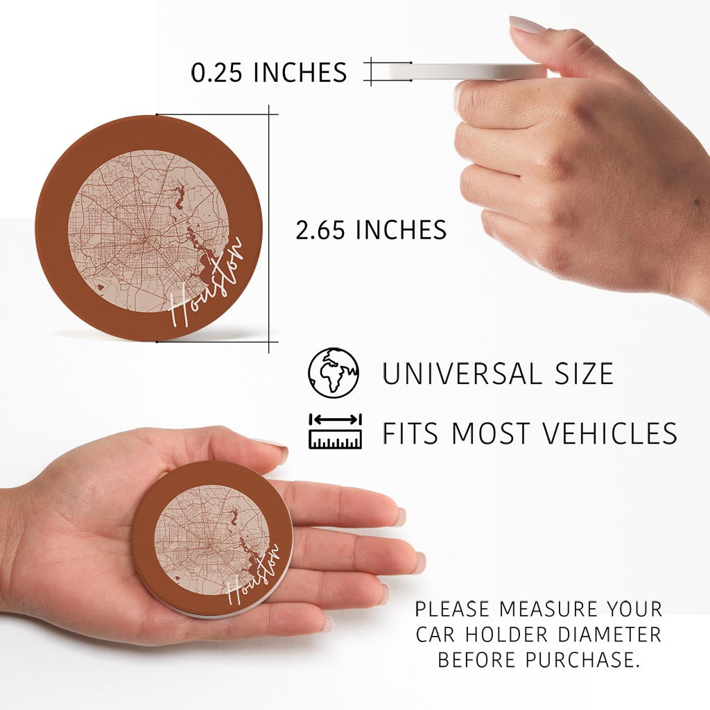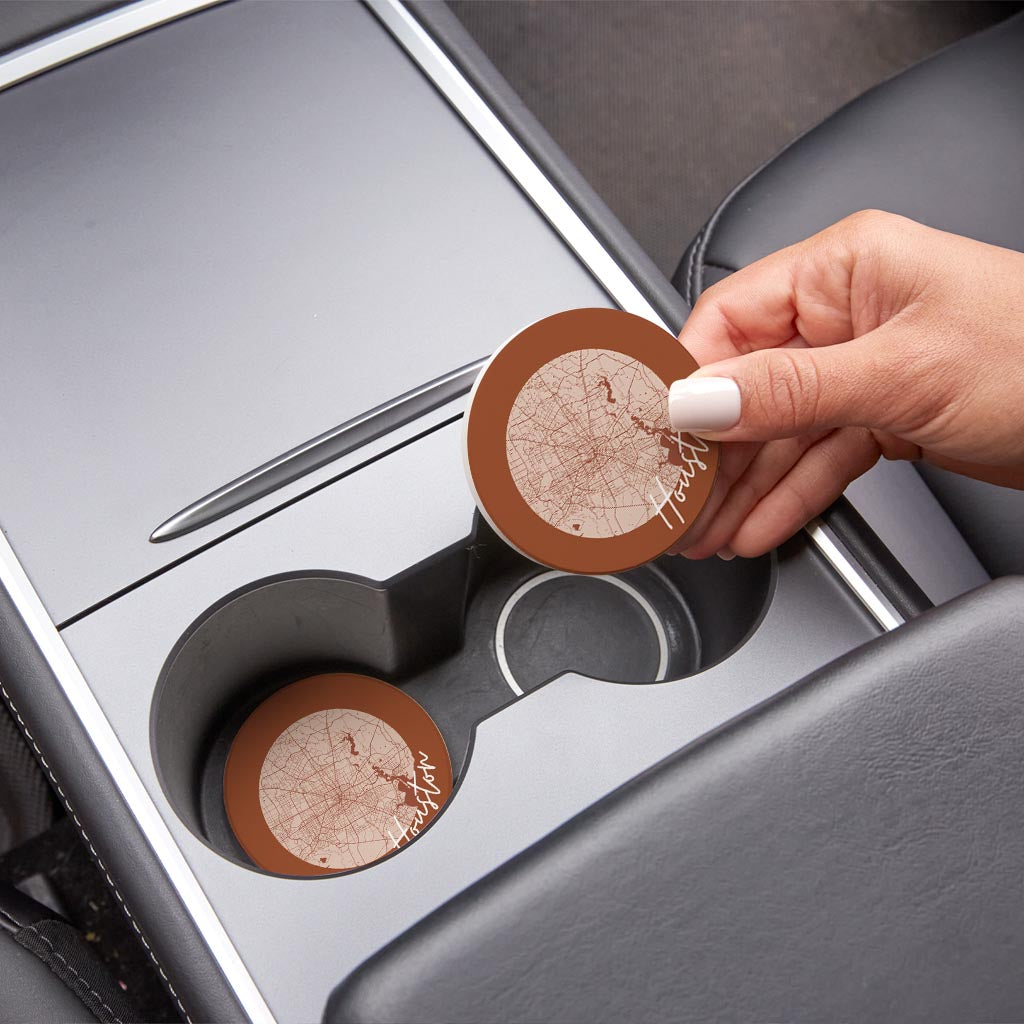 Modern Minimalist Houston Texas Map | Absorbent Car Coasters | Set of 2 | Min 4
