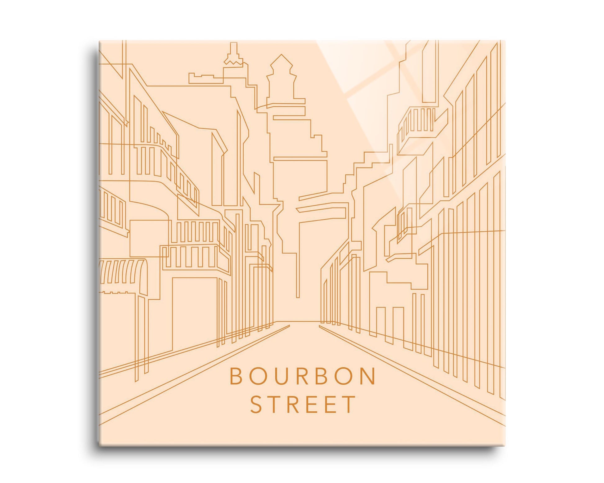 Modern Minimalist Louisiana Bourbon Street Line Drawing | Hi-Def Glass Art | Eaches | Min 2