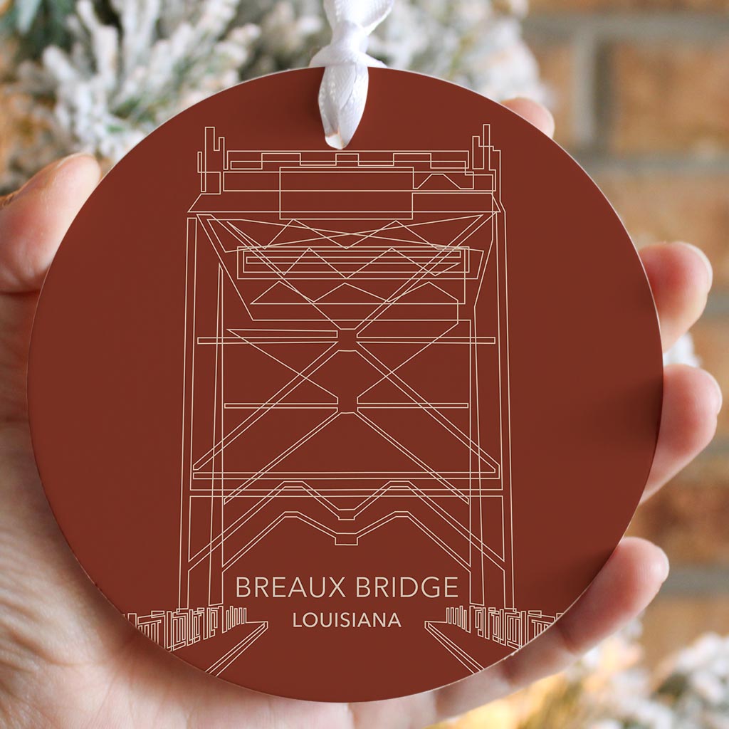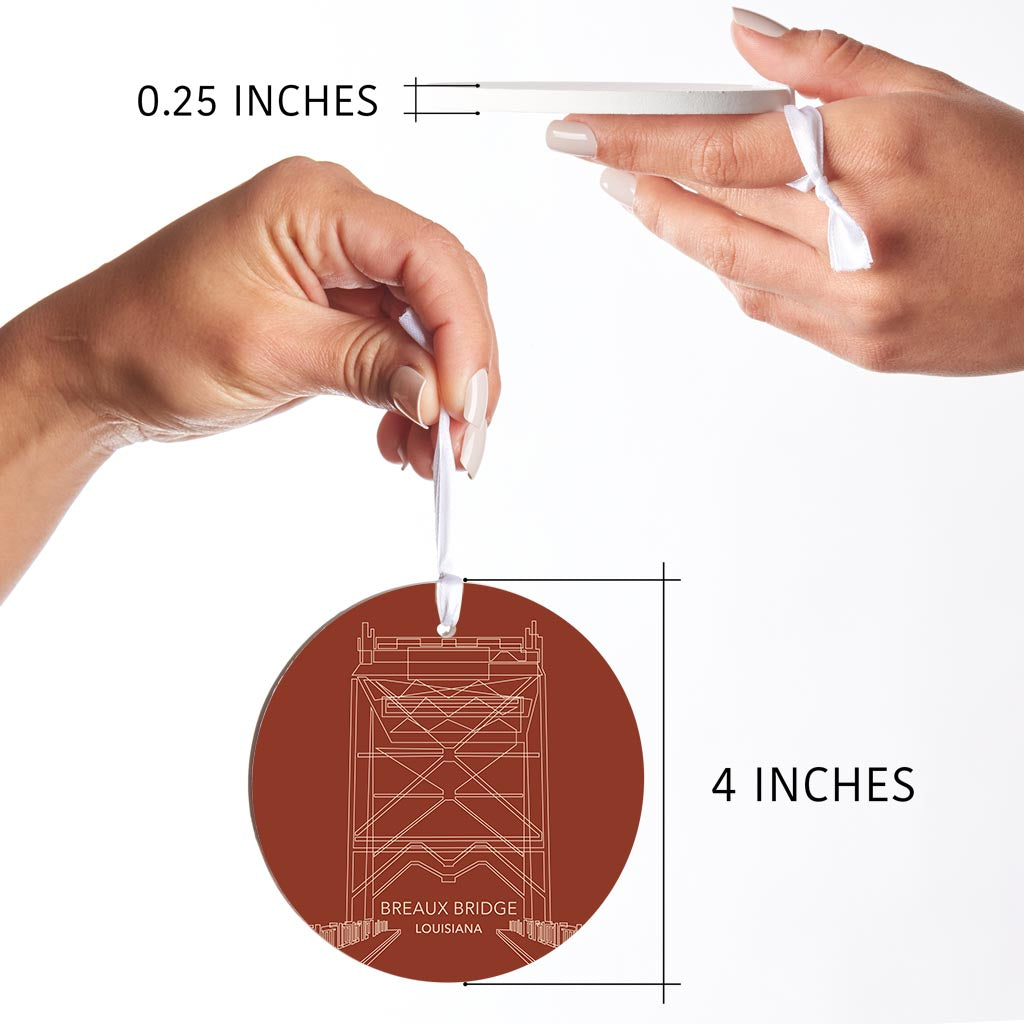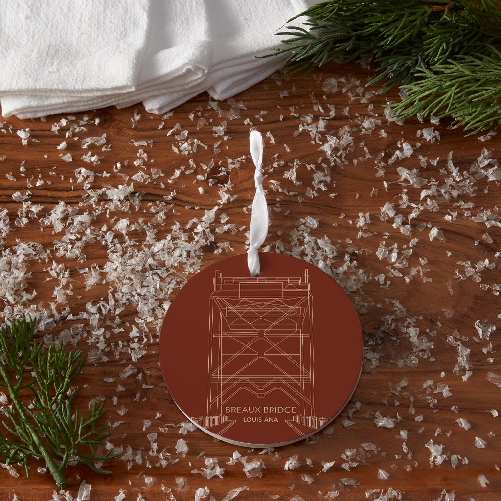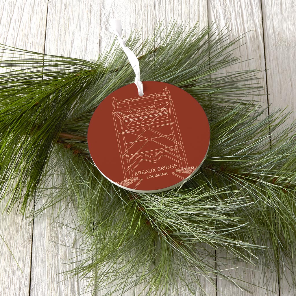 Modern Minimalist Louisiana Breaux Bridge Line Drawing | Wood Ornament | Eaches | Min 6