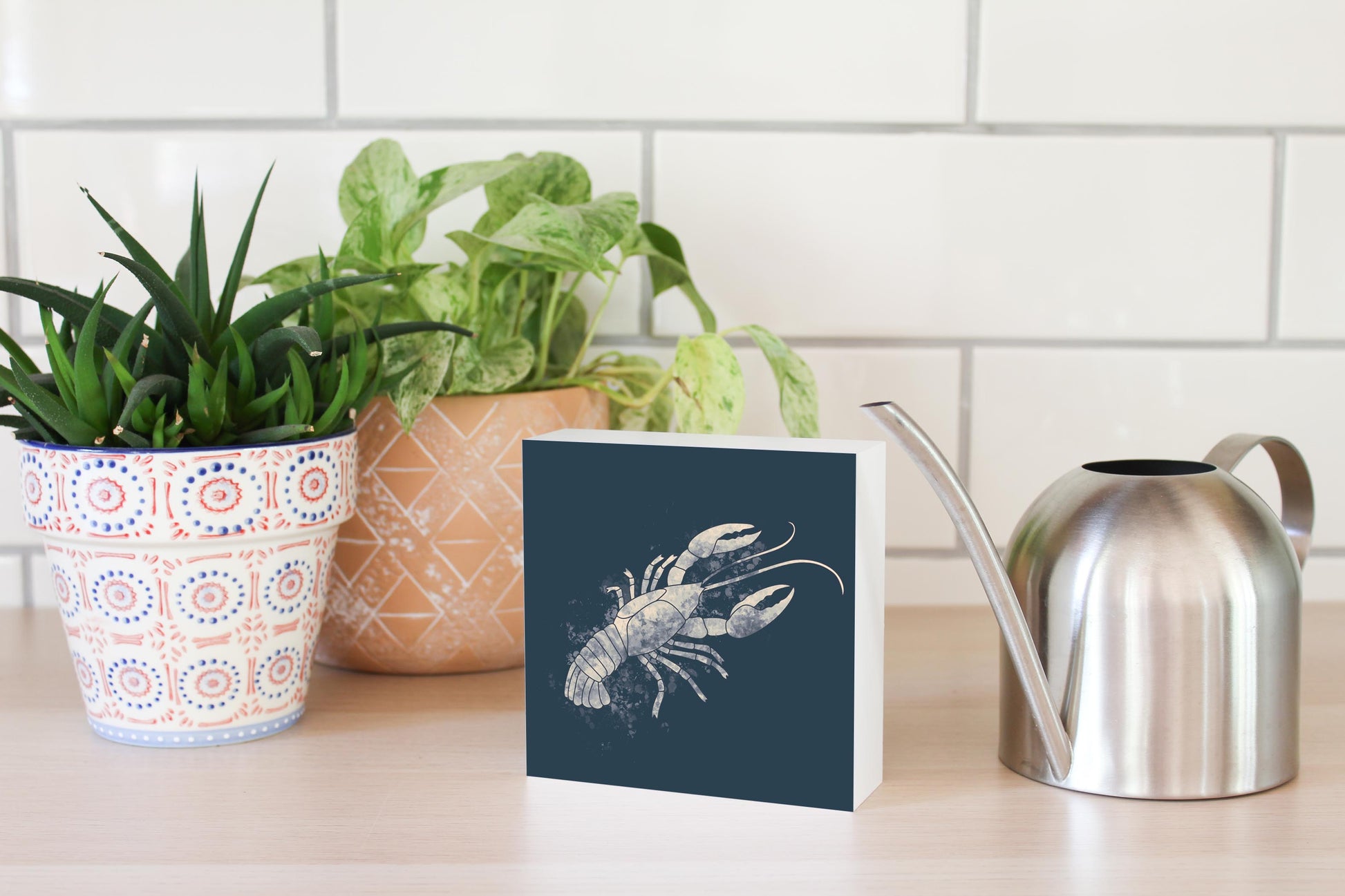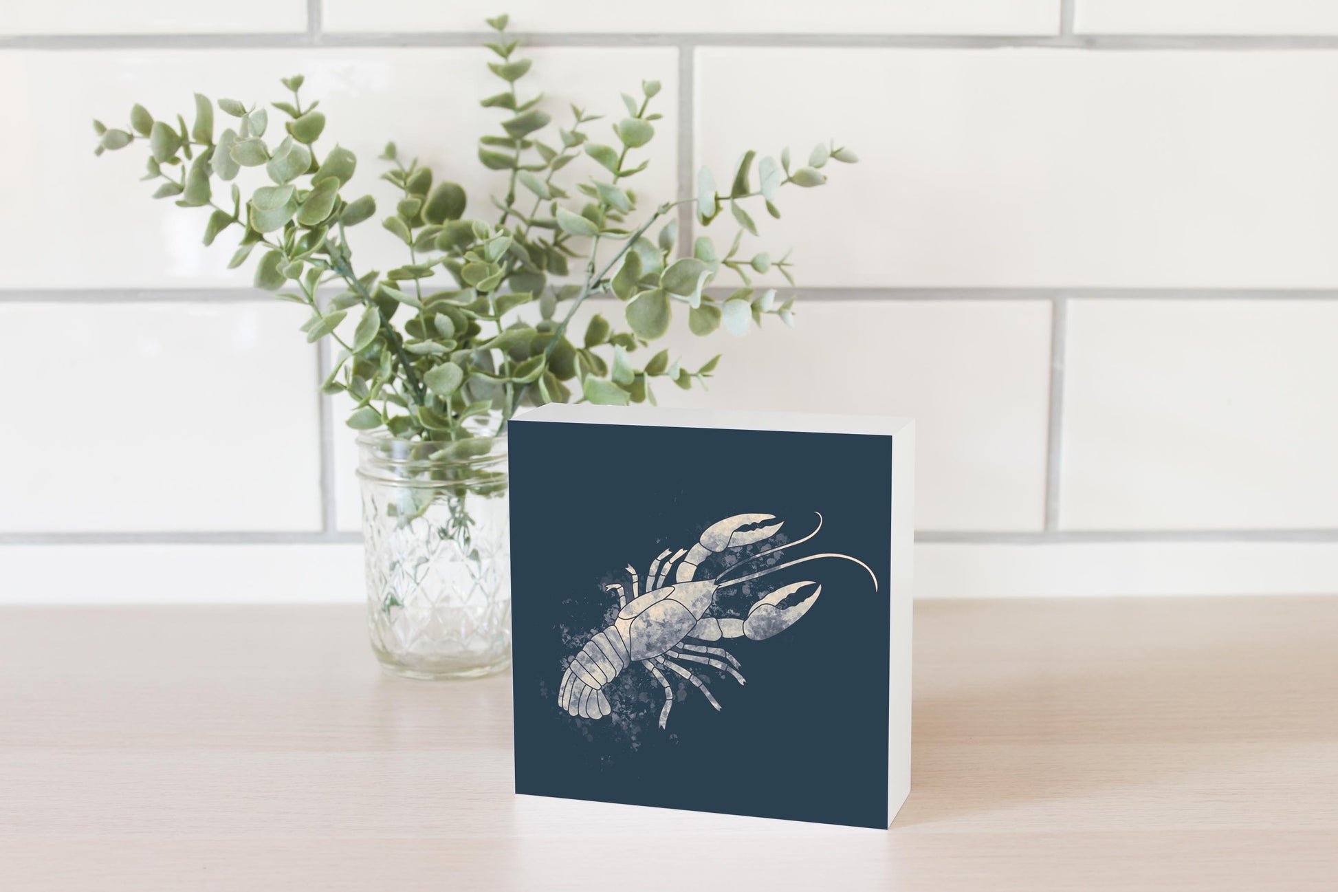 Modern Minimalist Louisiana Crawfish Water Color | Wood Block | Eaches | Min 4