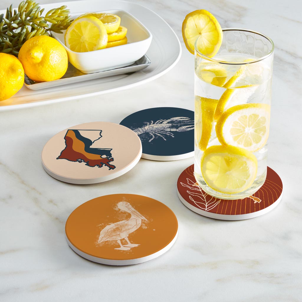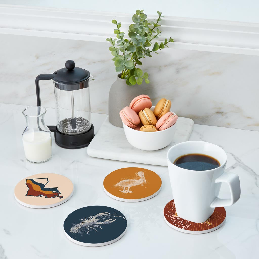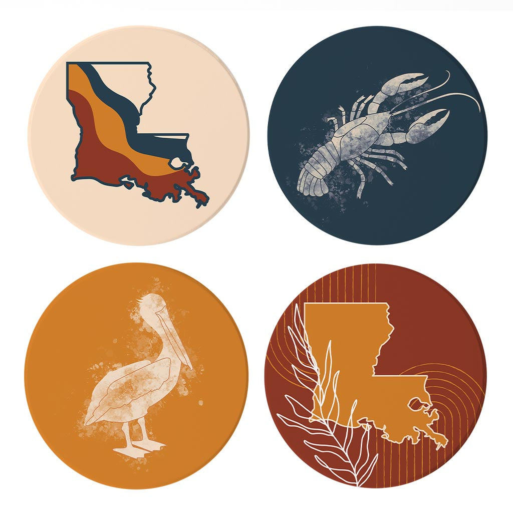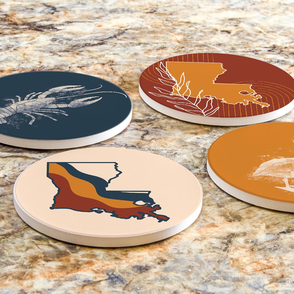 Modern Minimalist Louisiana Set | Absorbent Coasters | Set of 4 | Min 2