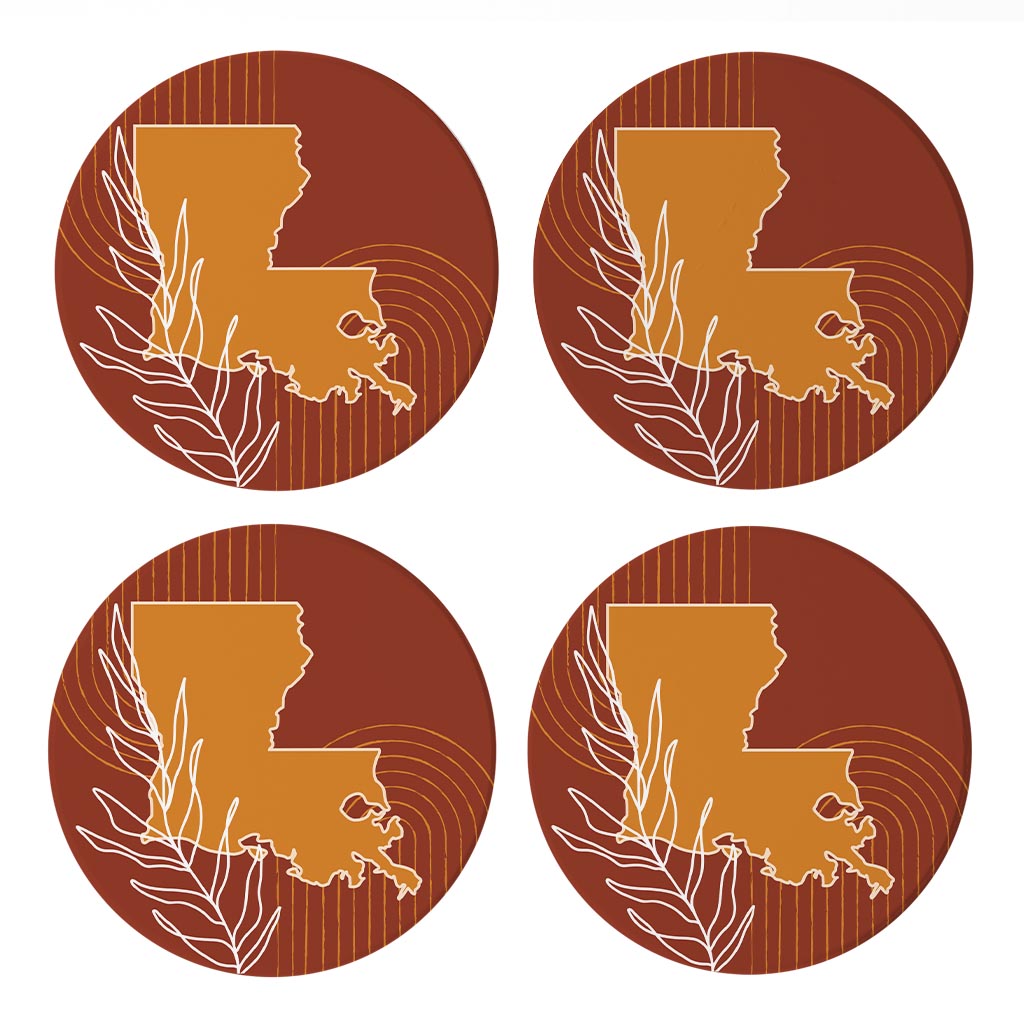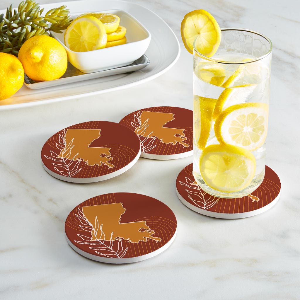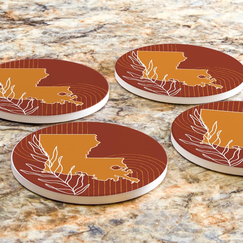 Modern Minimalist Louisiana State Shape With Leaf | Absorbent Coasters | Set of 4 | Min 2