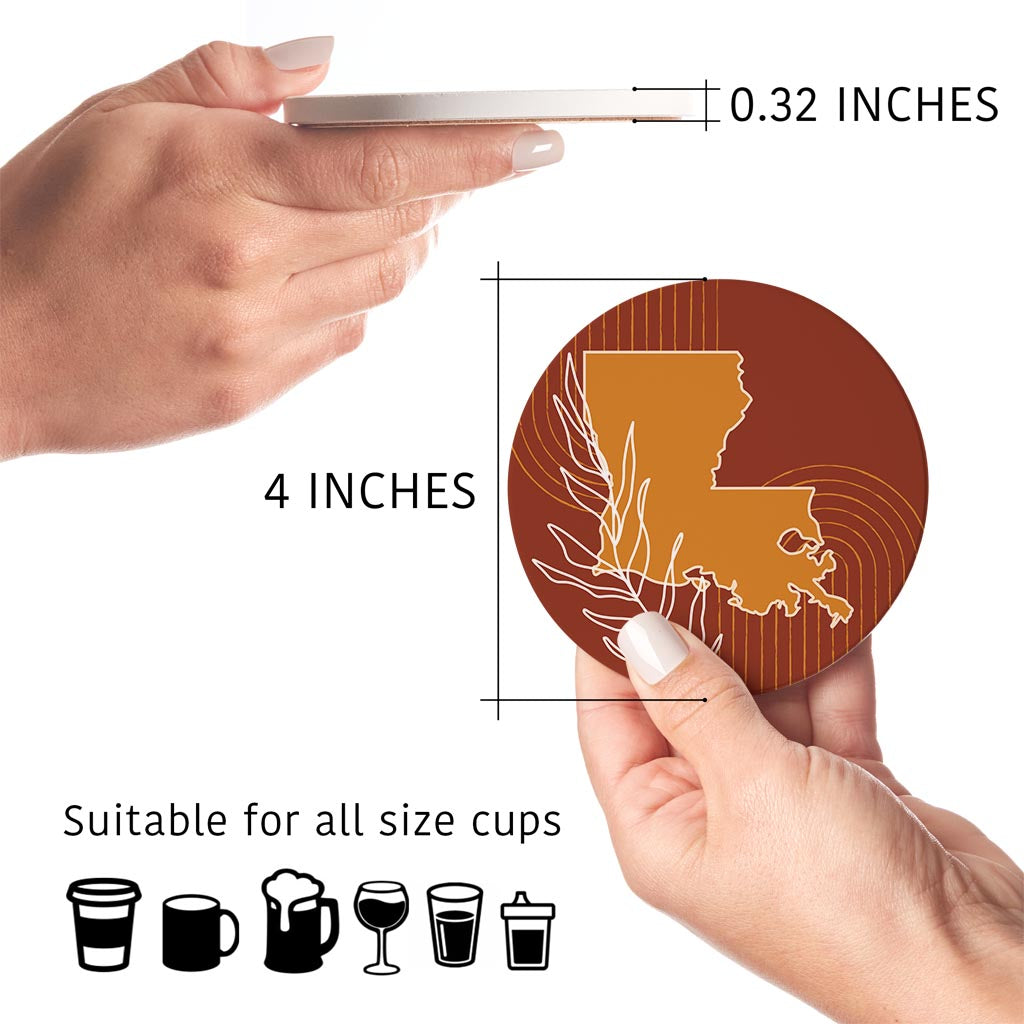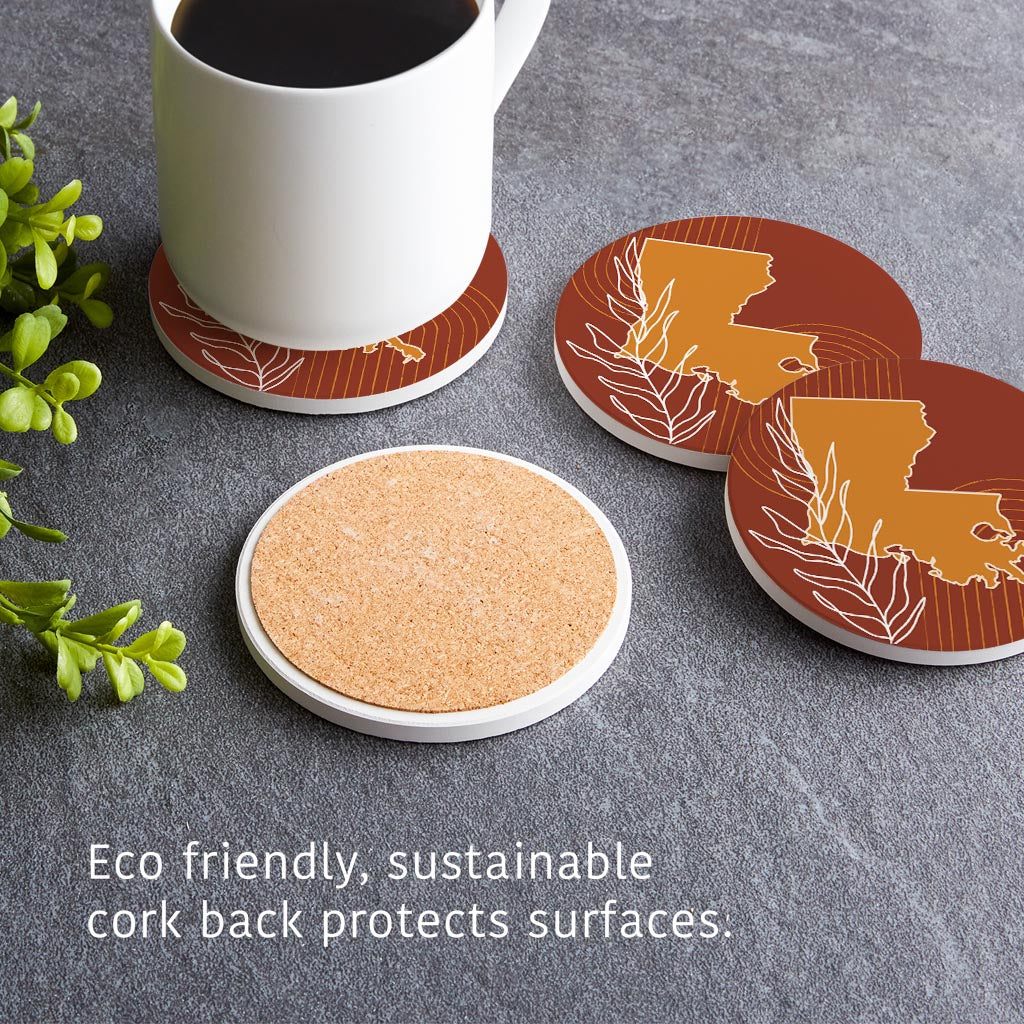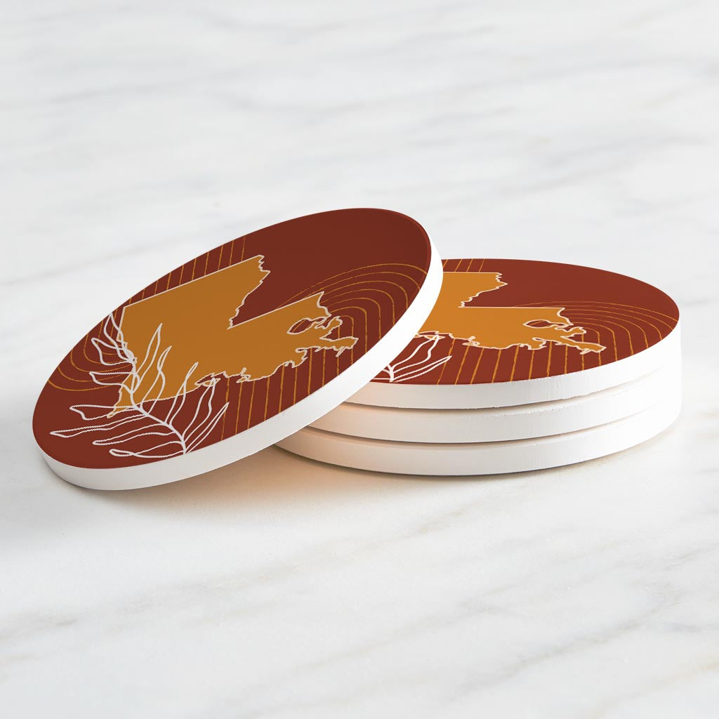 Modern Minimalist Louisiana State Shape With Leaf | Absorbent Coasters | Set of 4 | Min 2