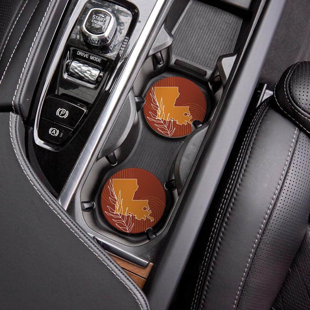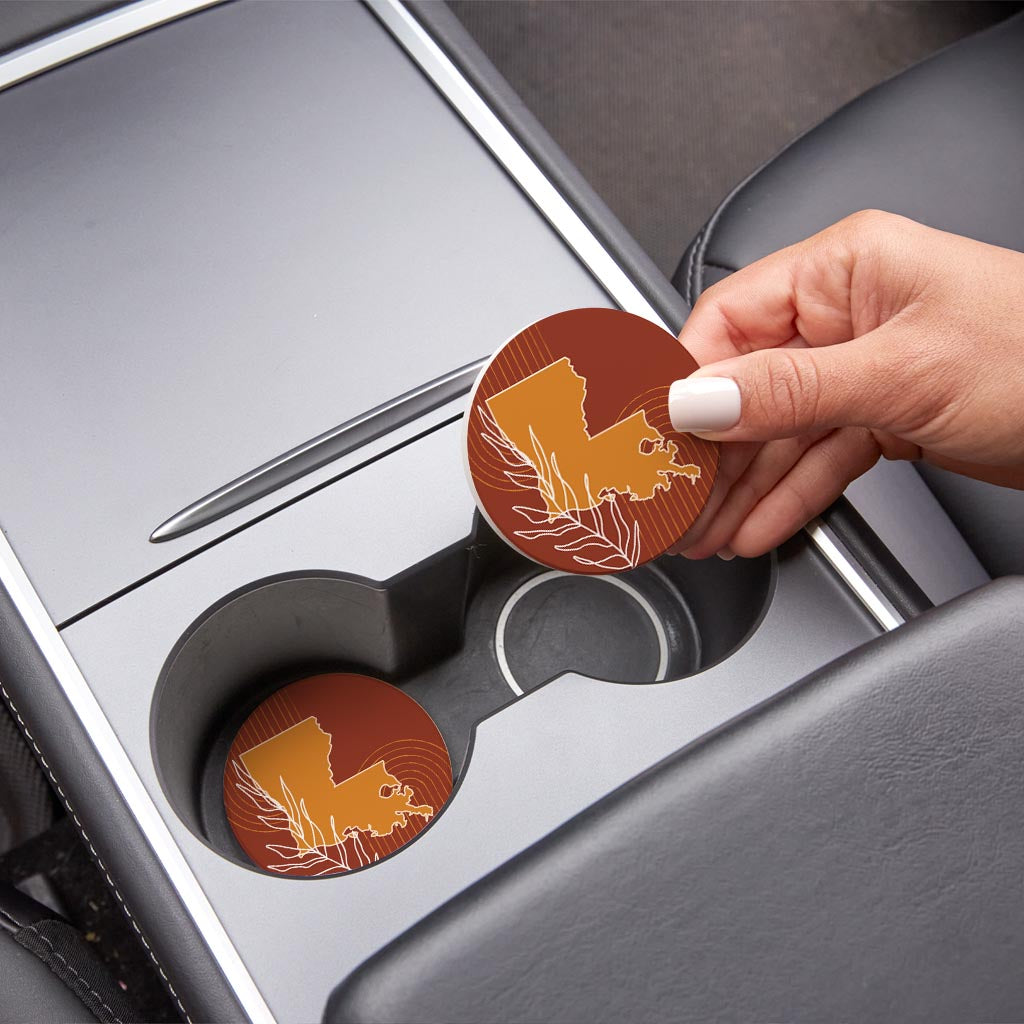Modern Minimalist Louisiana State Shape With Leaf | Absorbent Car Coasters | Set of 2 | Min 4
