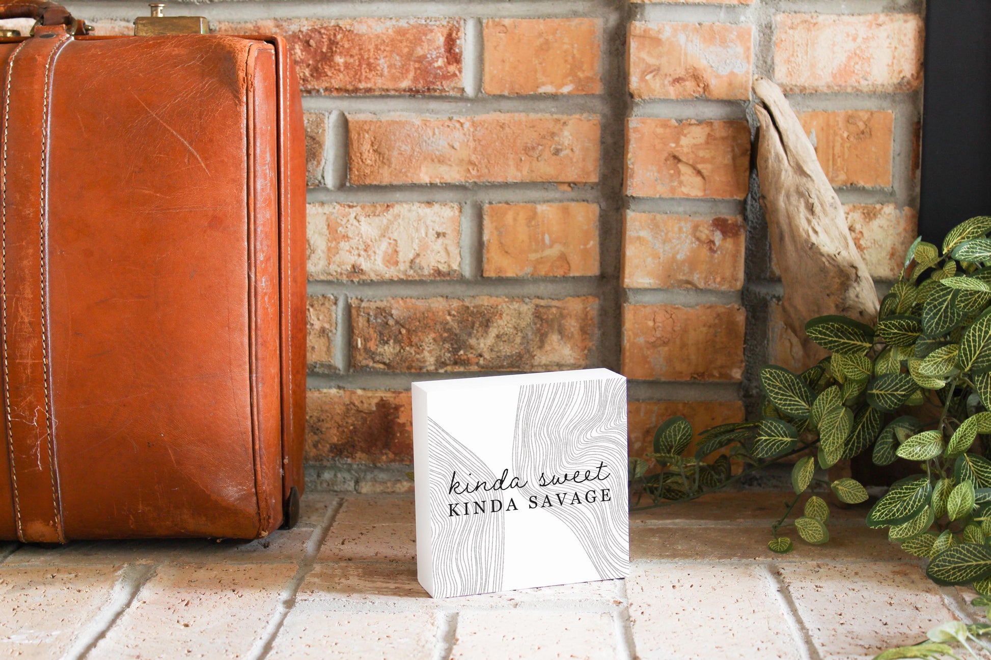 These wood block signs fit any setting! They require no hardware, and the hollow back design feely stands on its own or can be hung on the wall. Perfect for desks, mantels, counters, or shelves. The beautiful texture of the wood and vibrancy of ink are a great pairing. Our eco-friendly, water-based ink provides beautiful color and dimension, and all our wood blocks are made from upcycled compressed wood fiber. Printed and packaged in the USA. Express yourself!