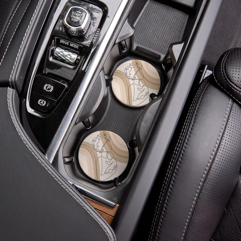 Modern Minimalist Mothers Day Mom Baby | Absorbent Car Coasters | Set of 2 | Min 4