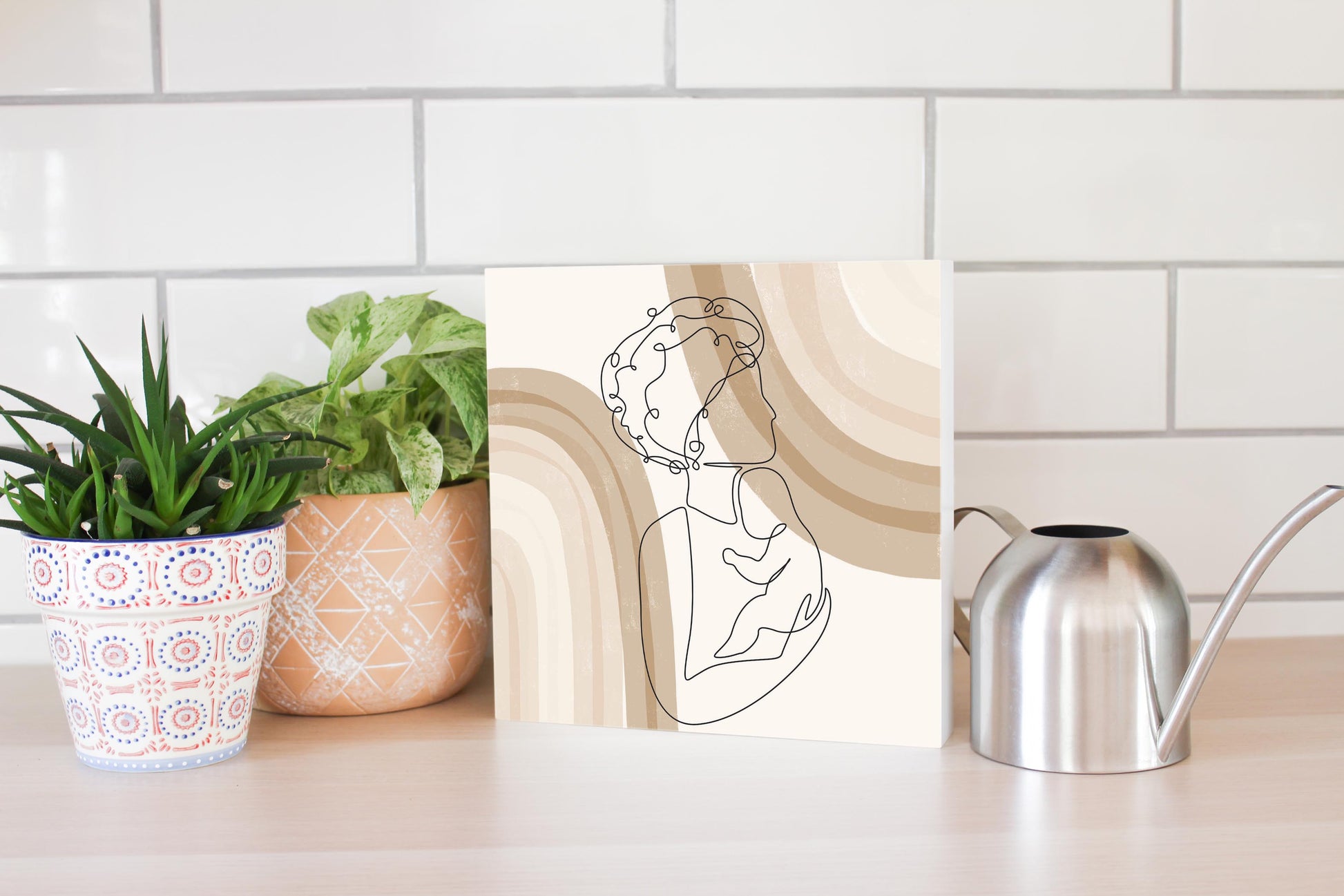 Modern Minimalist Mothers Day Mom Baby | Wood Block | Eaches | Min 2