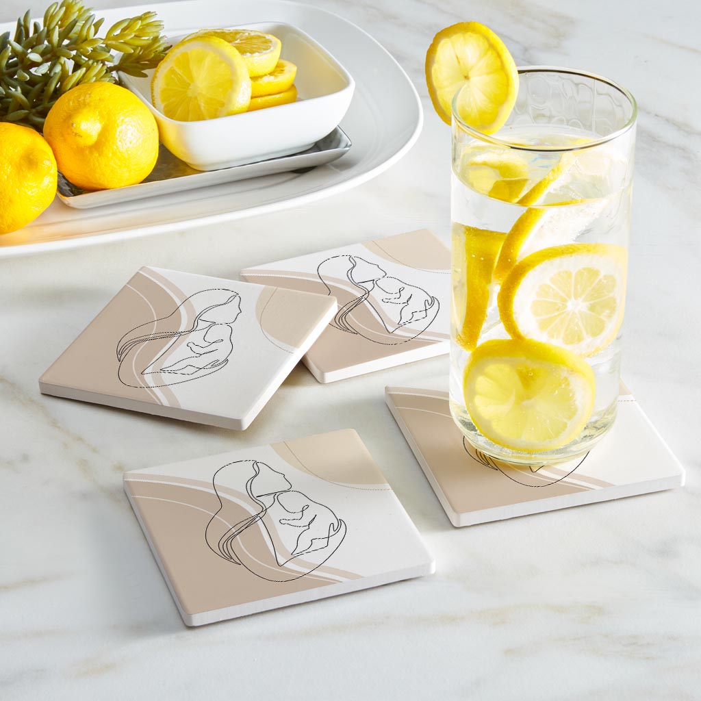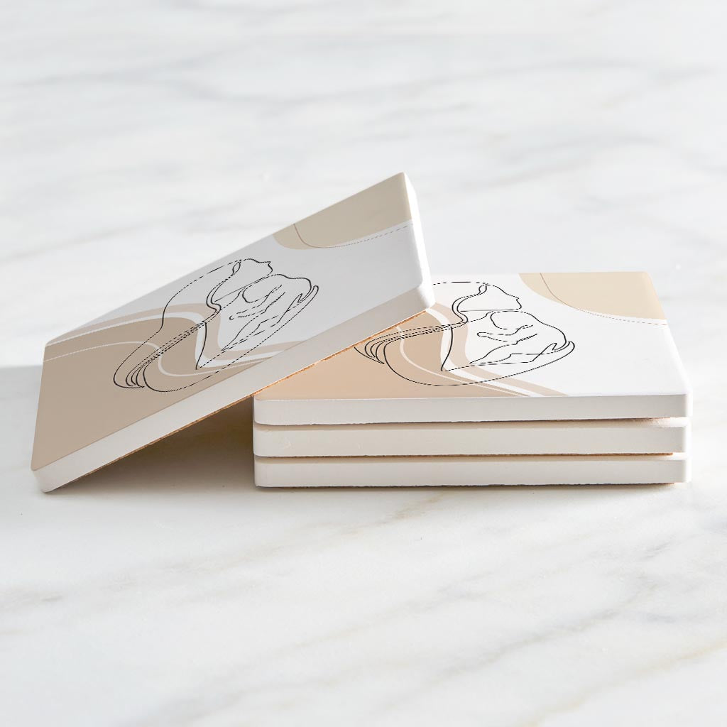 Modern Minimalist Mothers Day Mom Baby | Absorbent Coasters | Set of 4 | Min 2