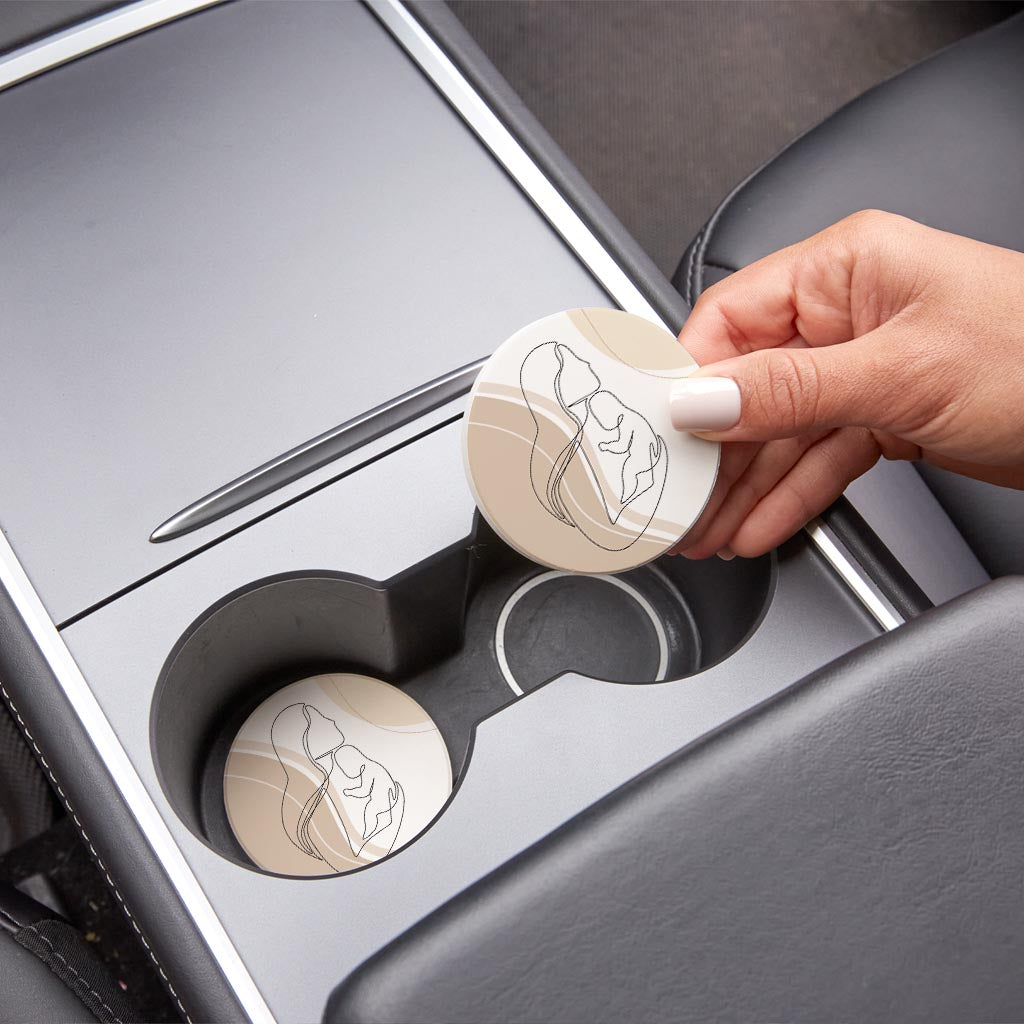 Modern Minimalist Mothers Day Mom Baby | Absorbent Car Coasters | Set of 2 | Min 4