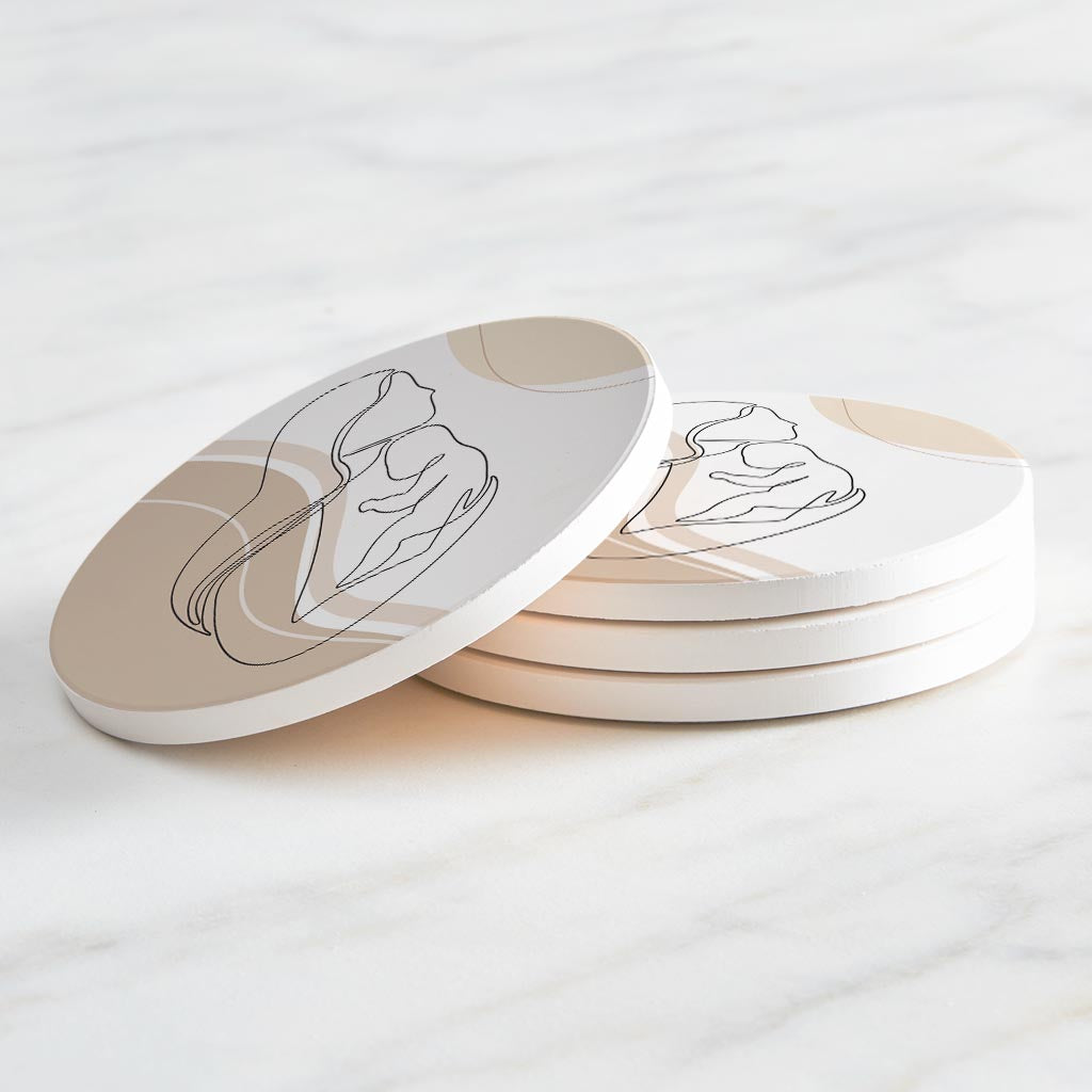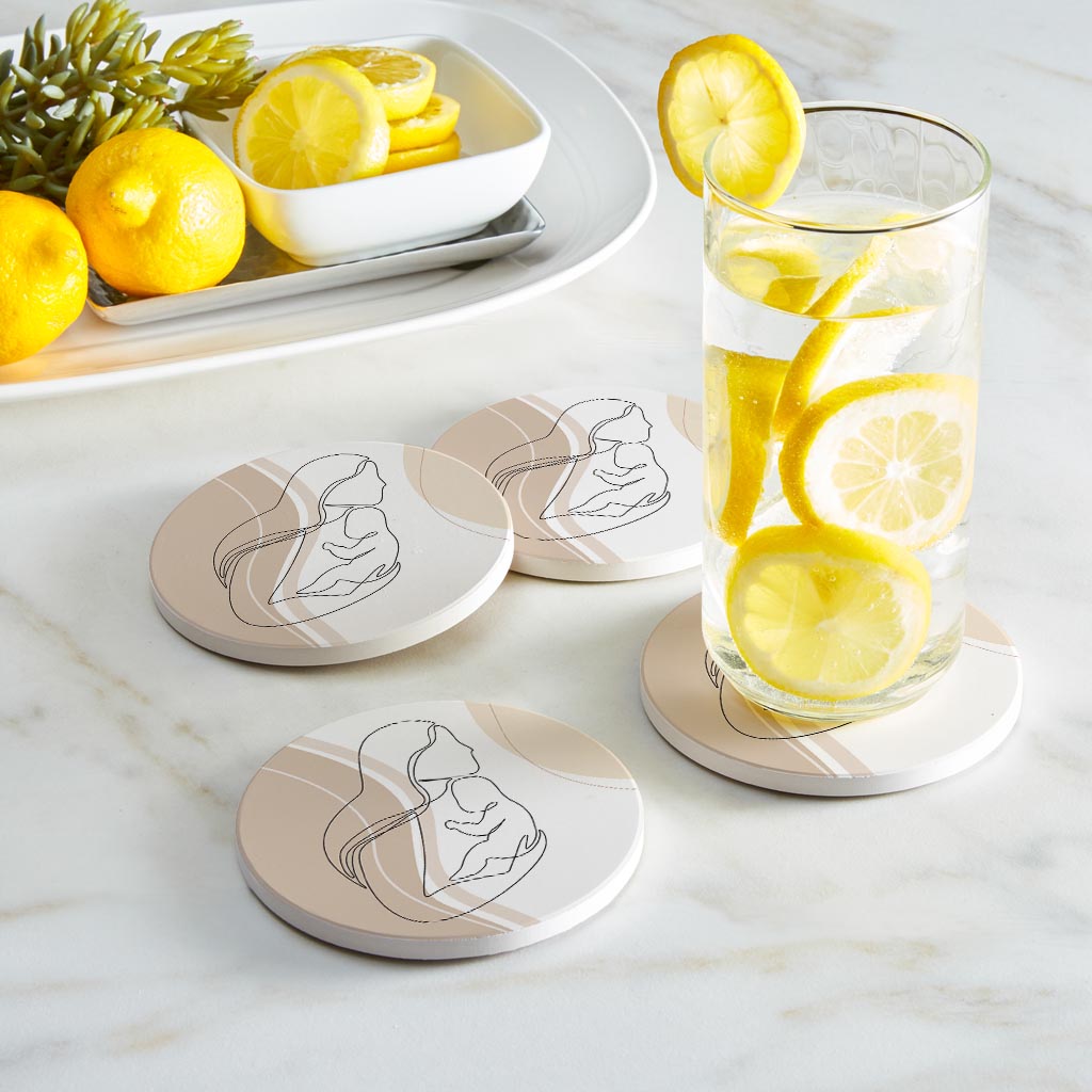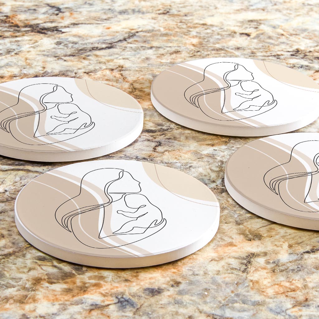 Modern Minimalist Mothers Day Mom Baby | Absorbent Coasters | Set of 4 | Min 2