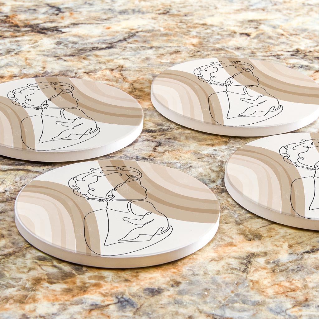 Modern Minimalist Mothers Day Mom Baby | Absorbent Coasters | Set of 4 | Min 2