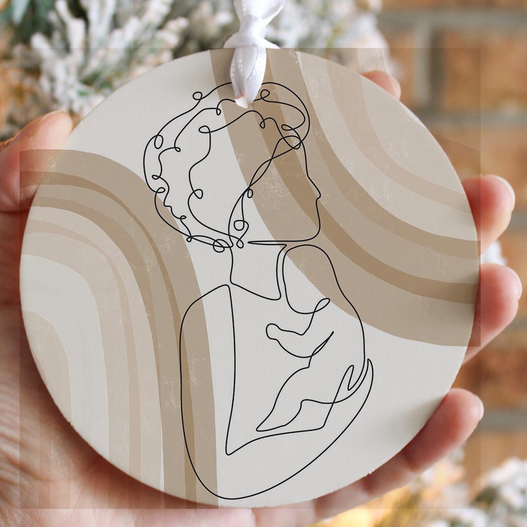Modern Minimalist Mothers Day Mom Baby | Wood Ornament | Eaches | Min 6