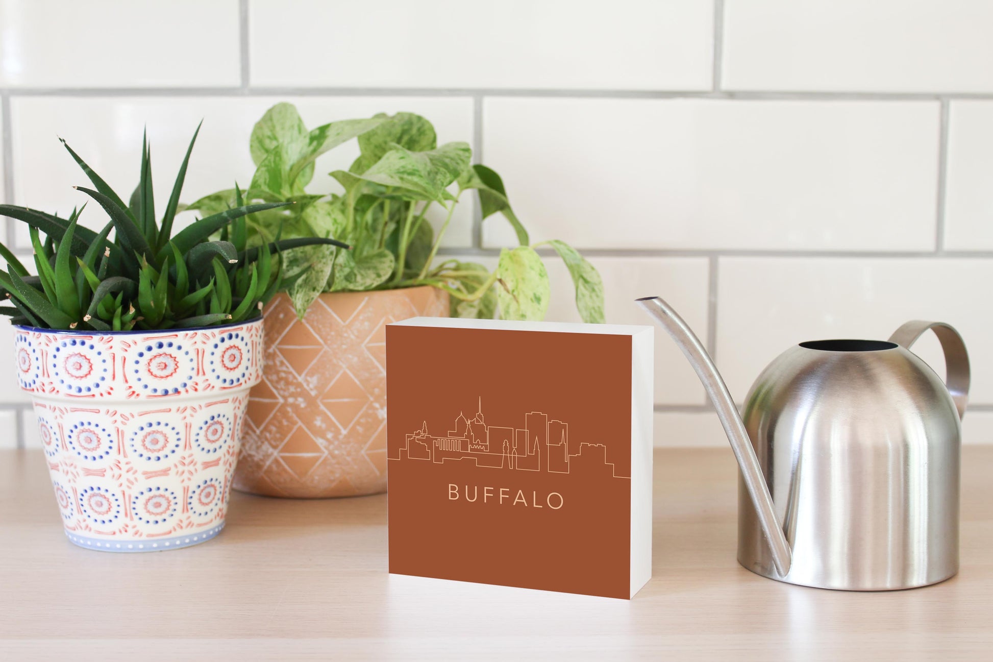 Modern Minimalist New York Buffalo Skyline | Wood Block | Eaches | Min 4