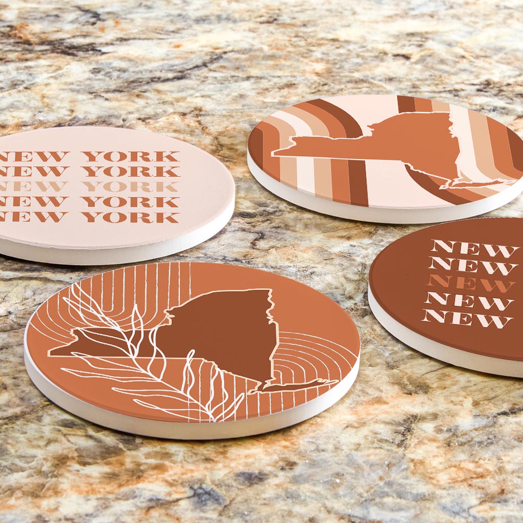 Modern Minimalist New York State Nyrepeated | Absorbent Coasters | Set of 4 | Min 2