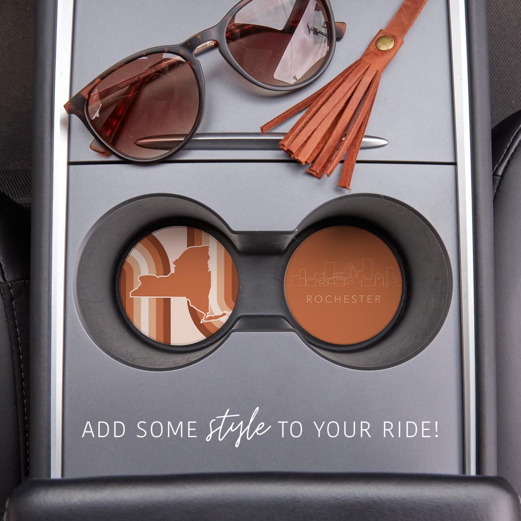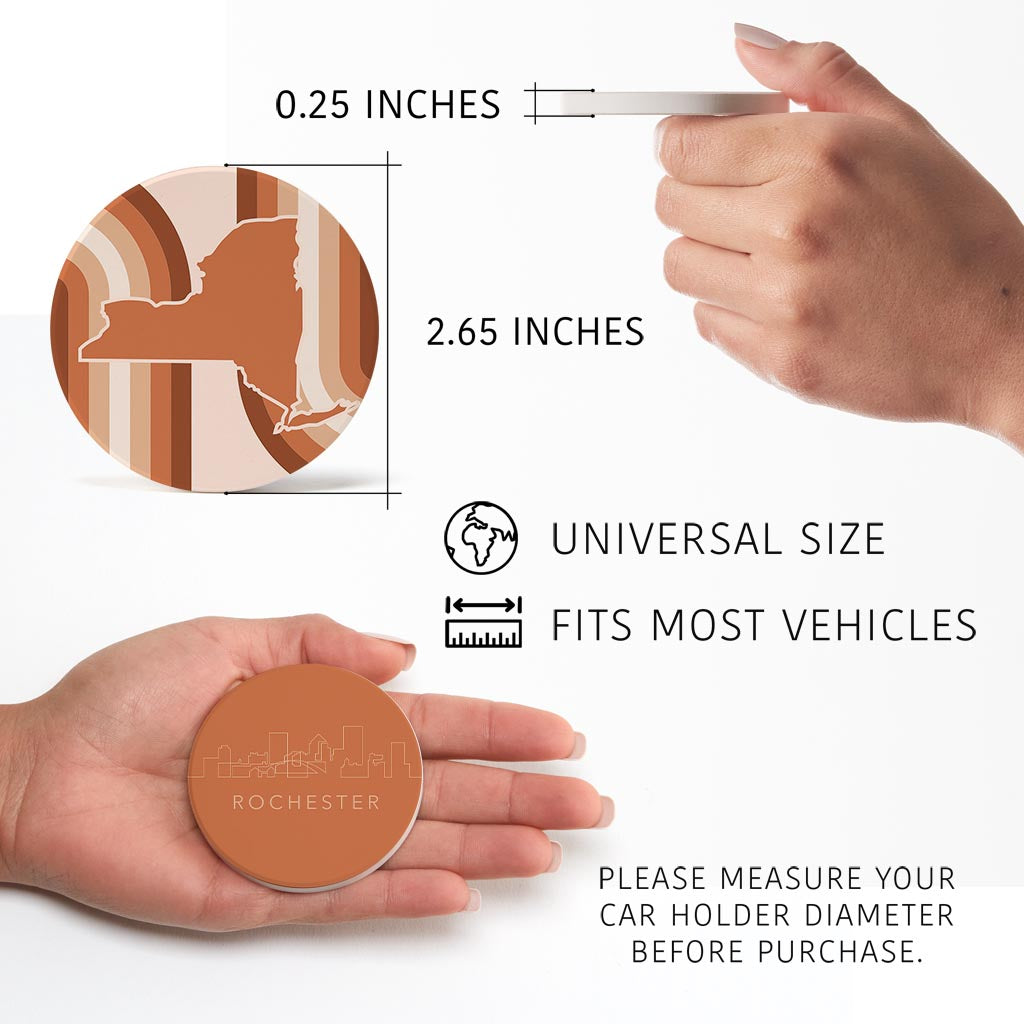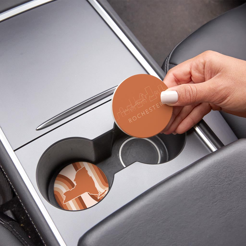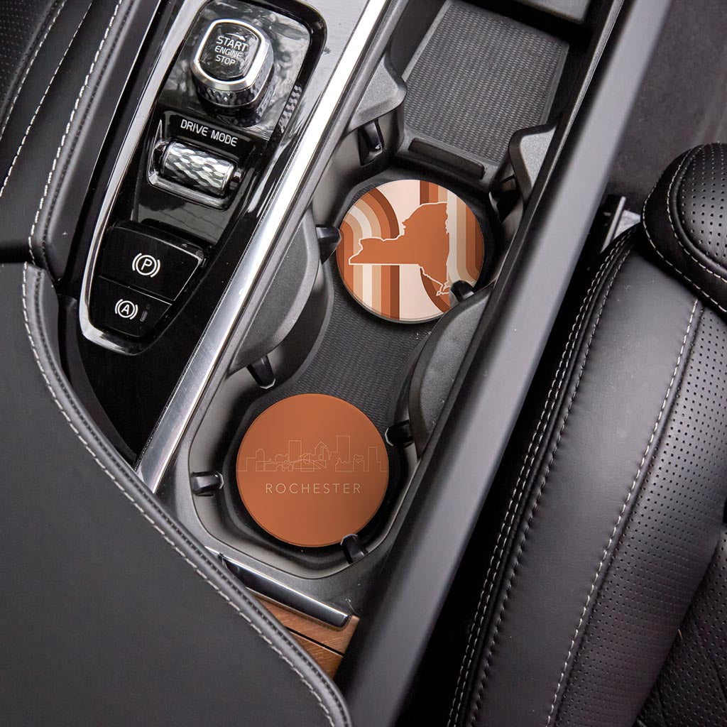 Modern Minimalist New York State Rochester Skyline| Absorbent Car Coasters | Set of 2 | Min 4