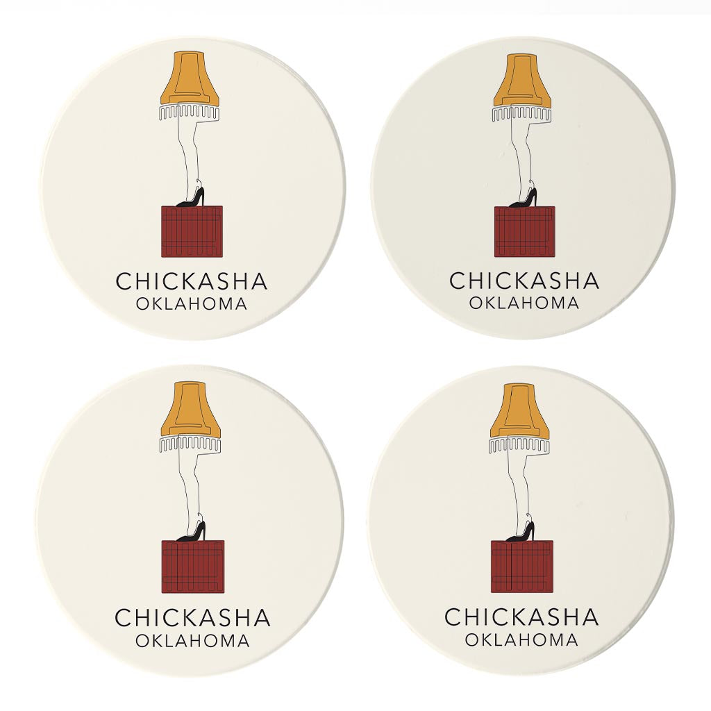 Modern Minimalist Oklahoma Colorful Chickasha Leg Lamp | Absorbent Coasters | Set of 4 | Min 2