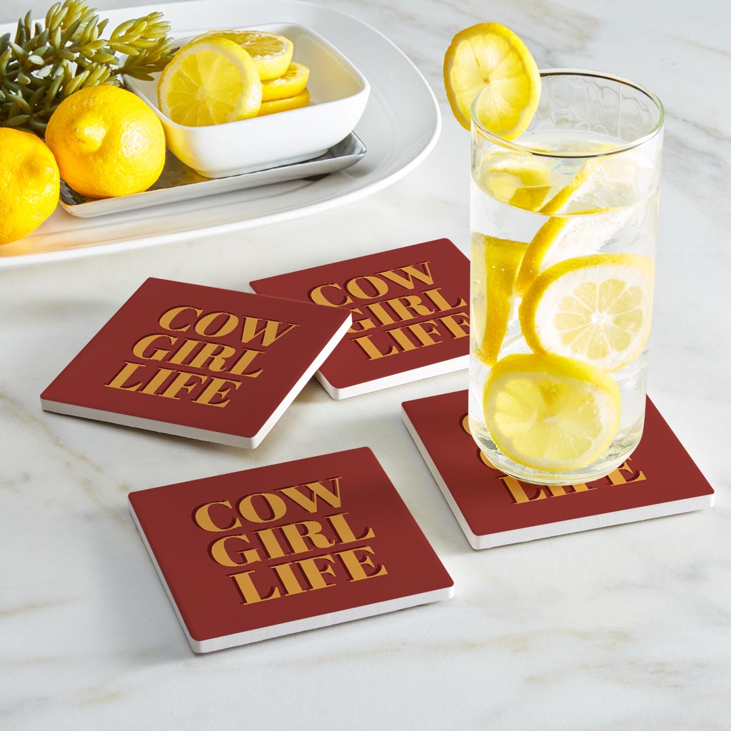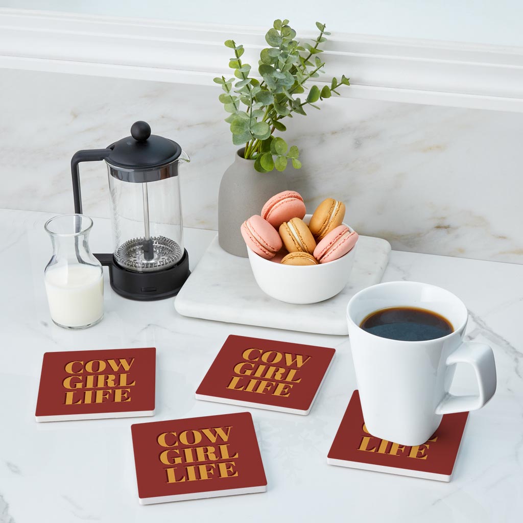 Modern Minimalist Oklahoma Cowgirl Life | Absorbent Coasters | Set of 4 | Min 2