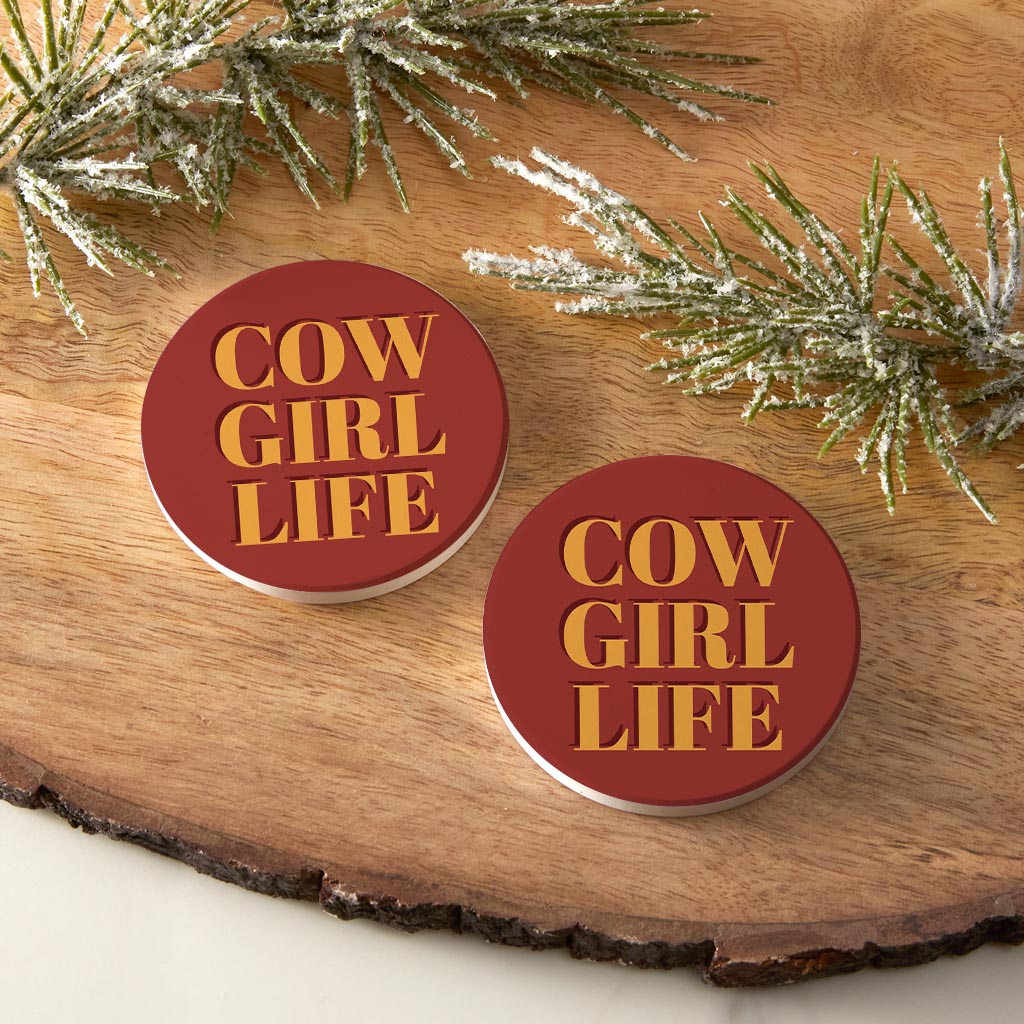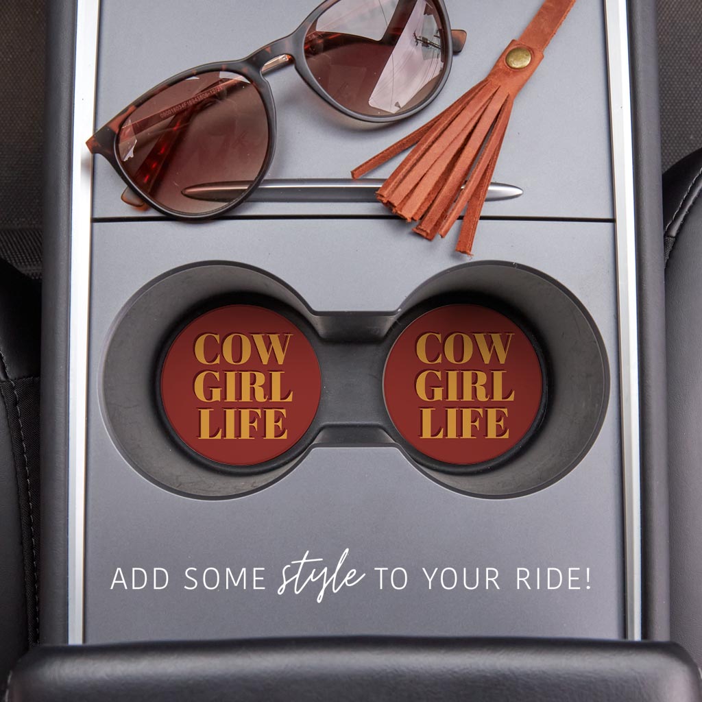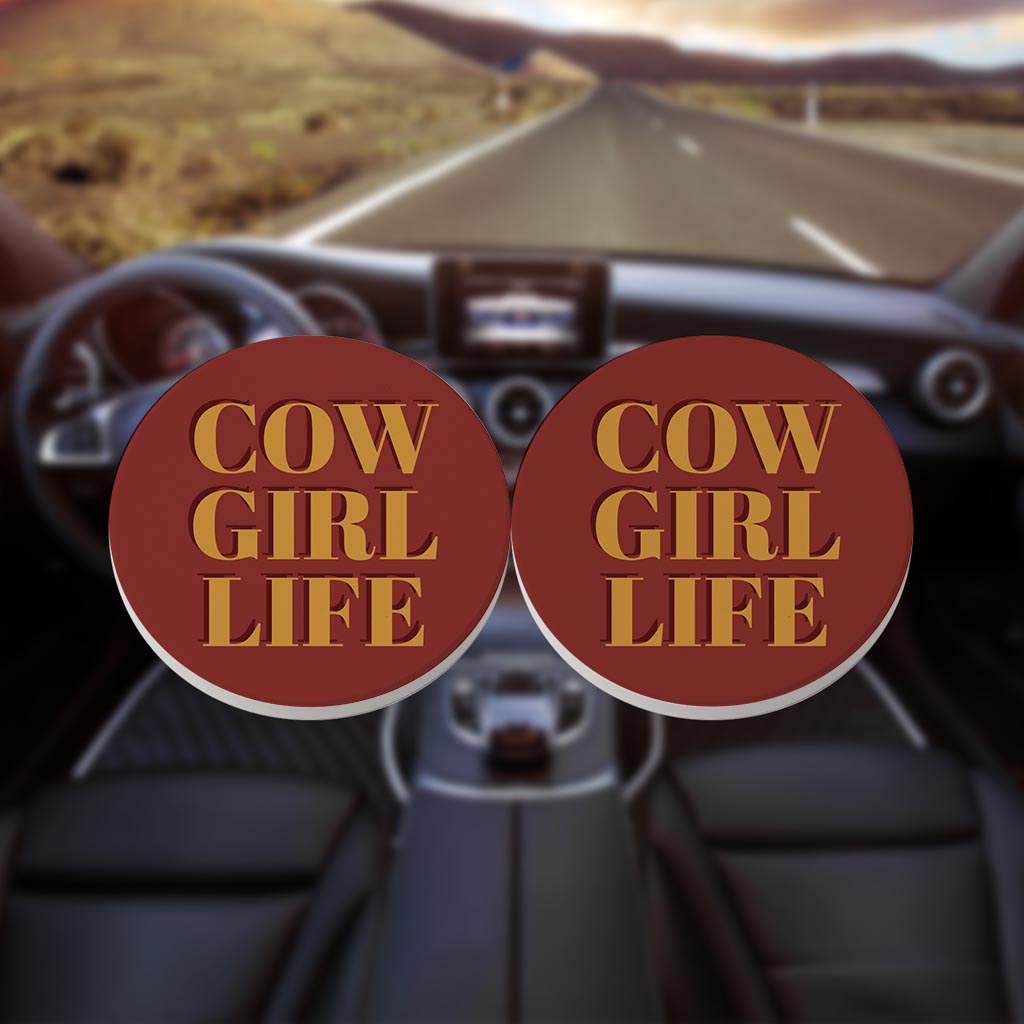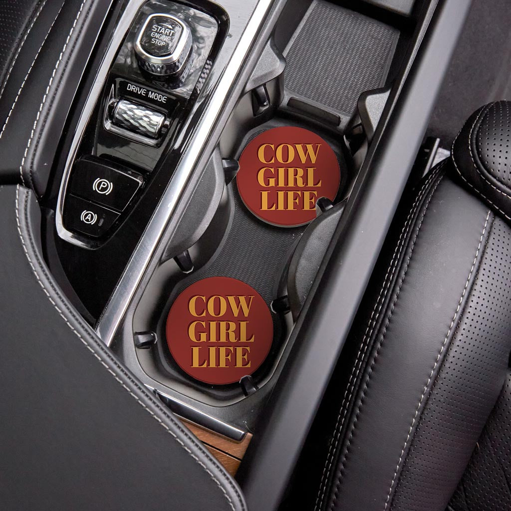 Modern Minimalist Oklahoma Cowgirl Life | Absorbent Car Coasters | Set of 2 | Min 4