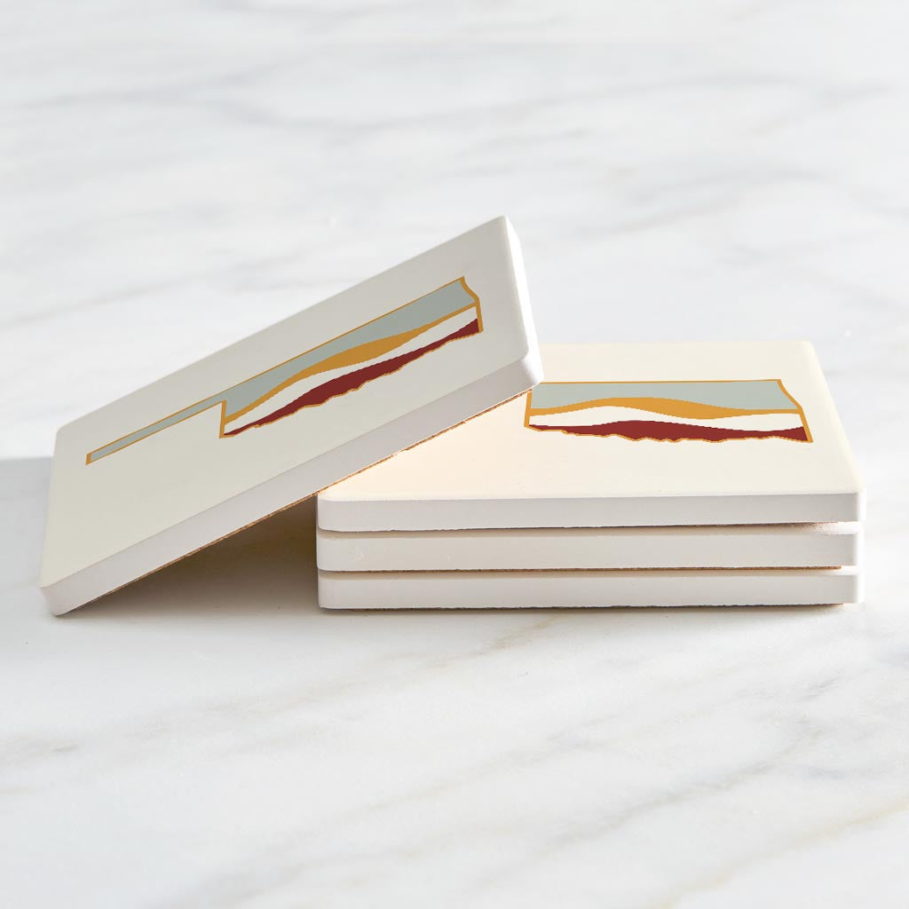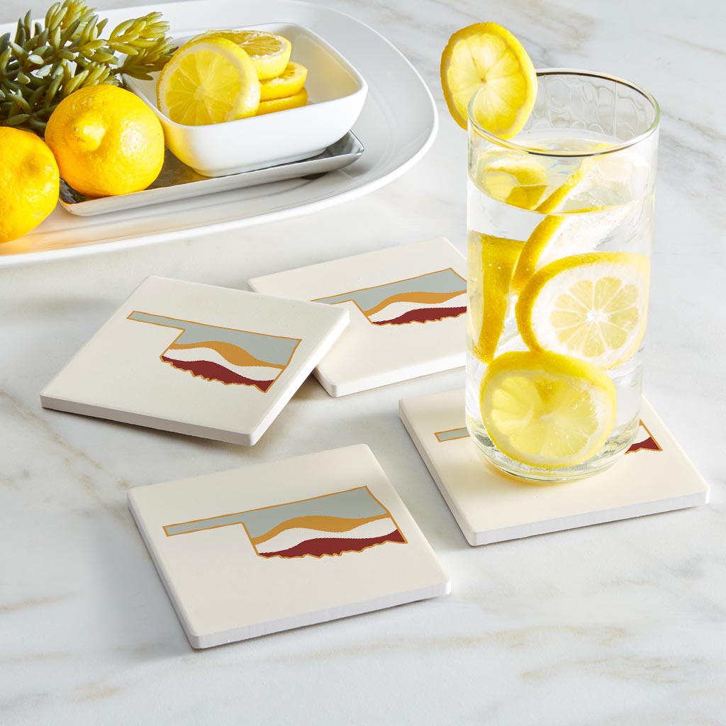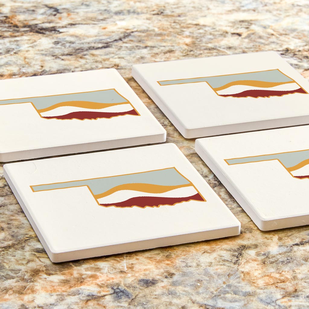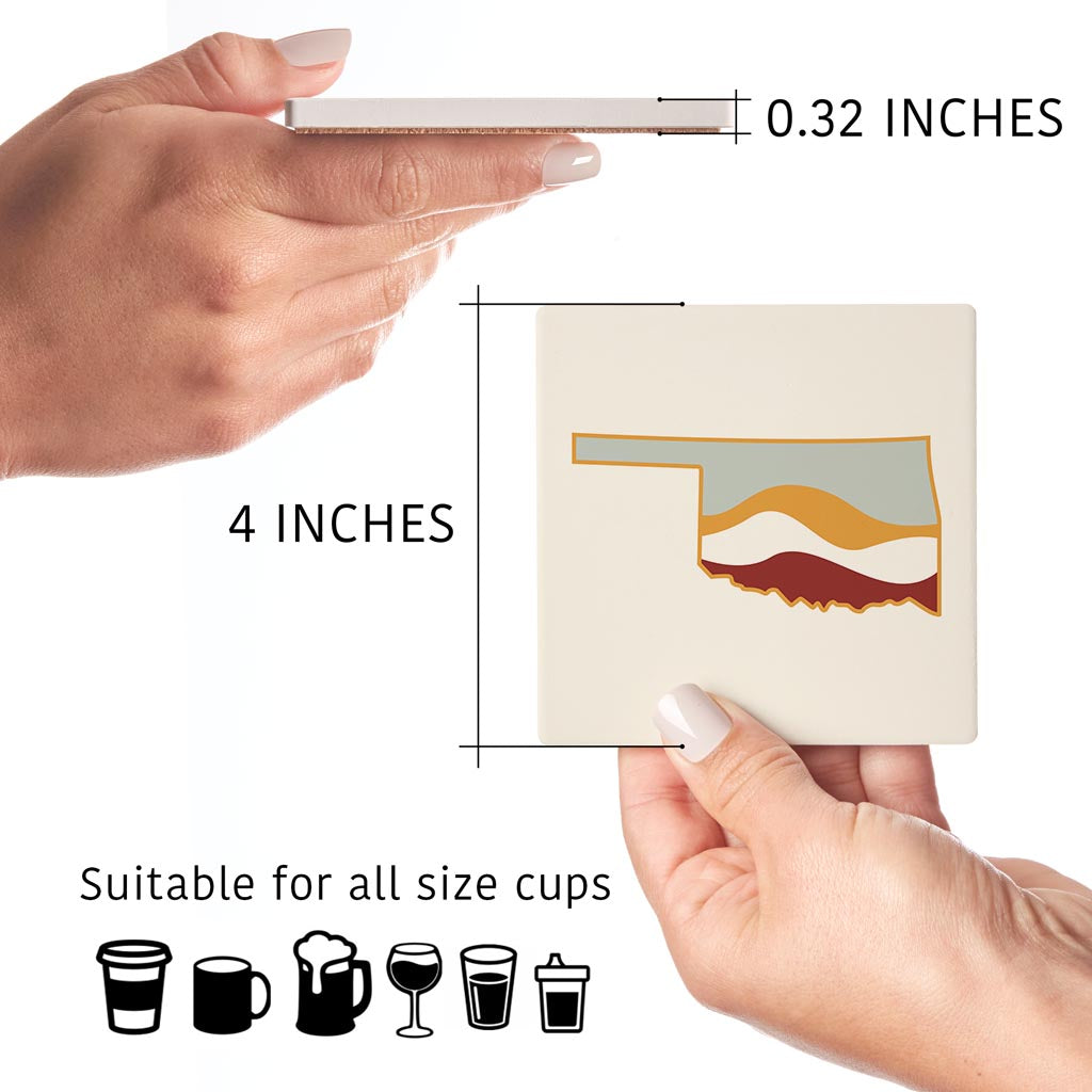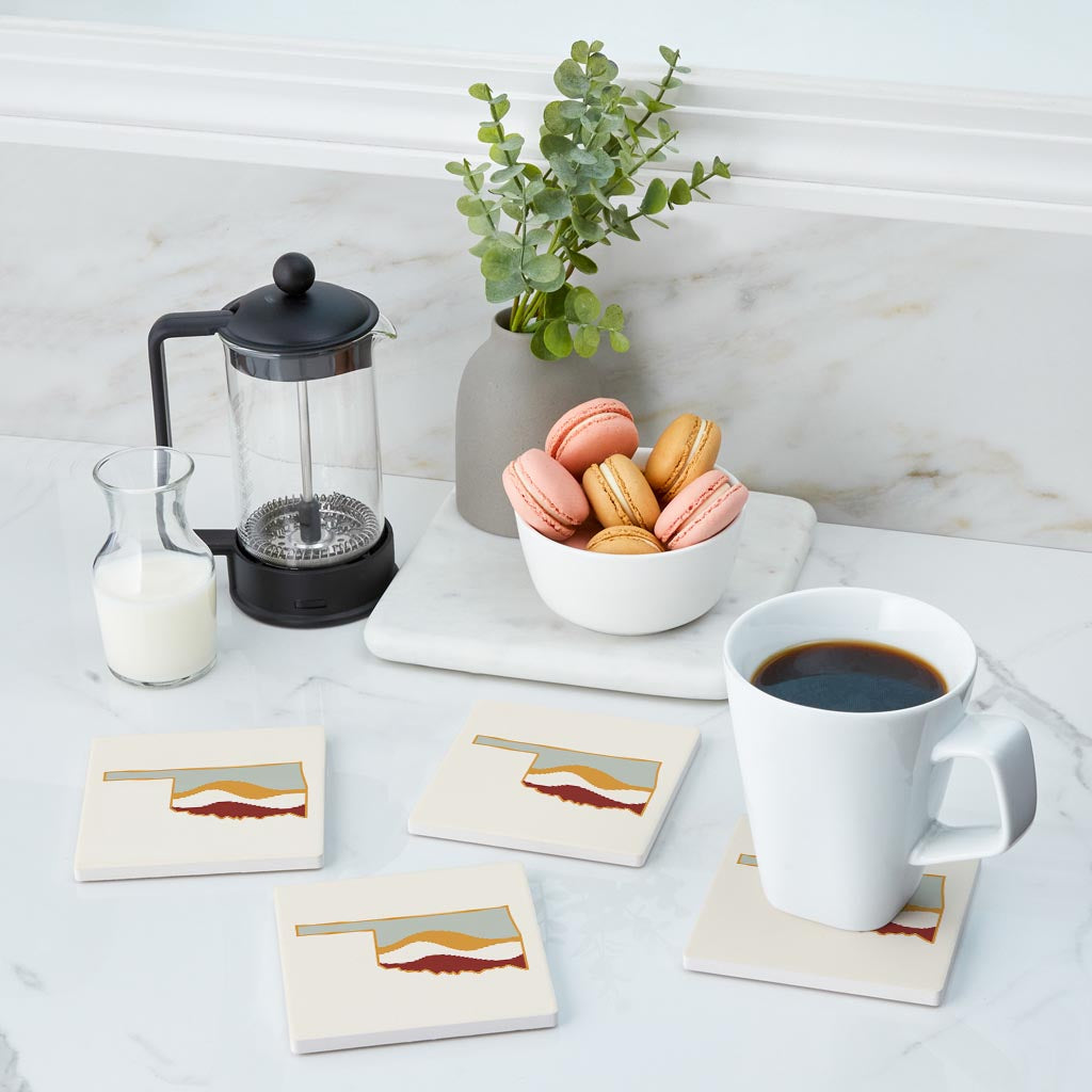 Modern Minimalist Oklahoma Cream Retro State Shape Hills| Absorbent Coasters | Set of 4 | Min 2