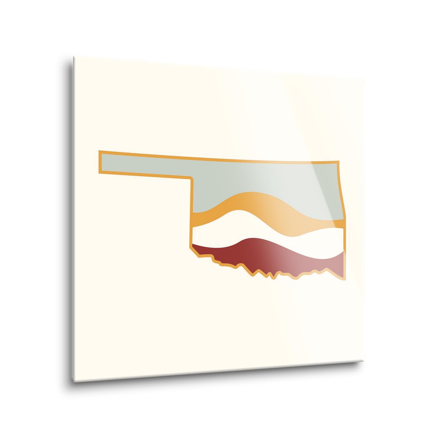 Modern Minimalist Oklahoma Cream Retro State Shape With Hills | Hi-Def Glass Art | Eaches | Min 2