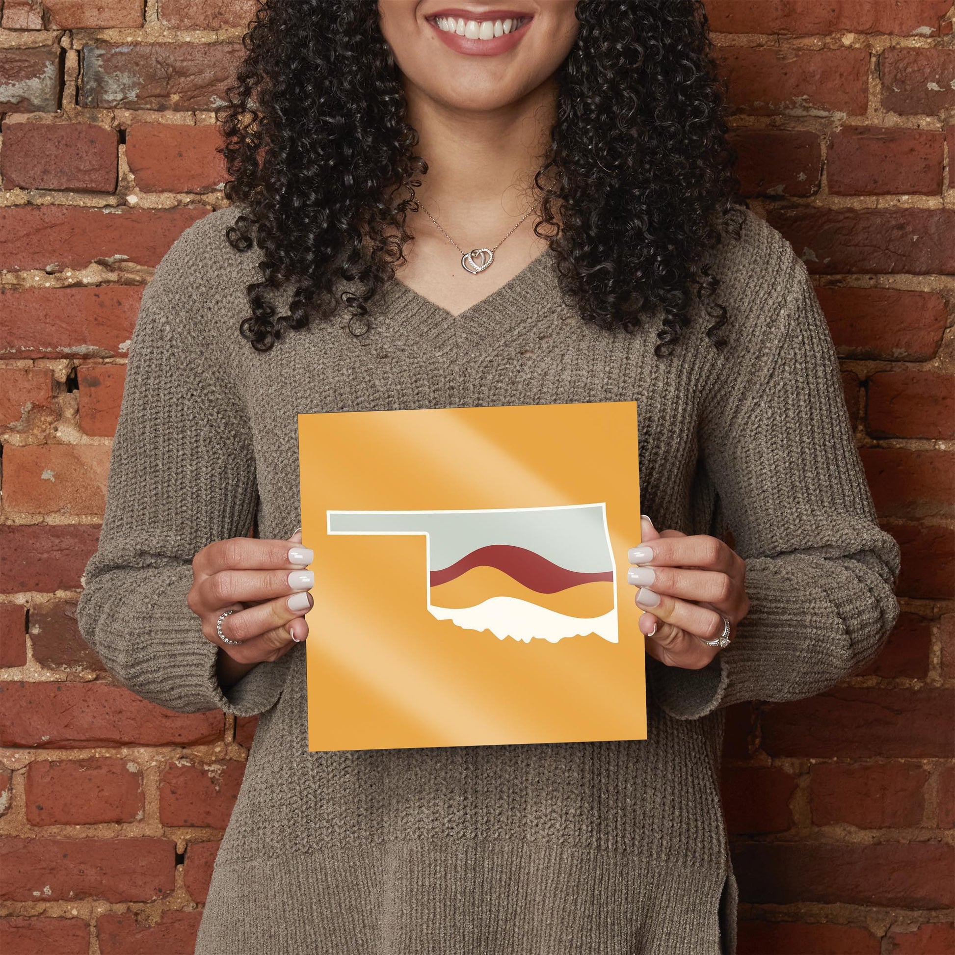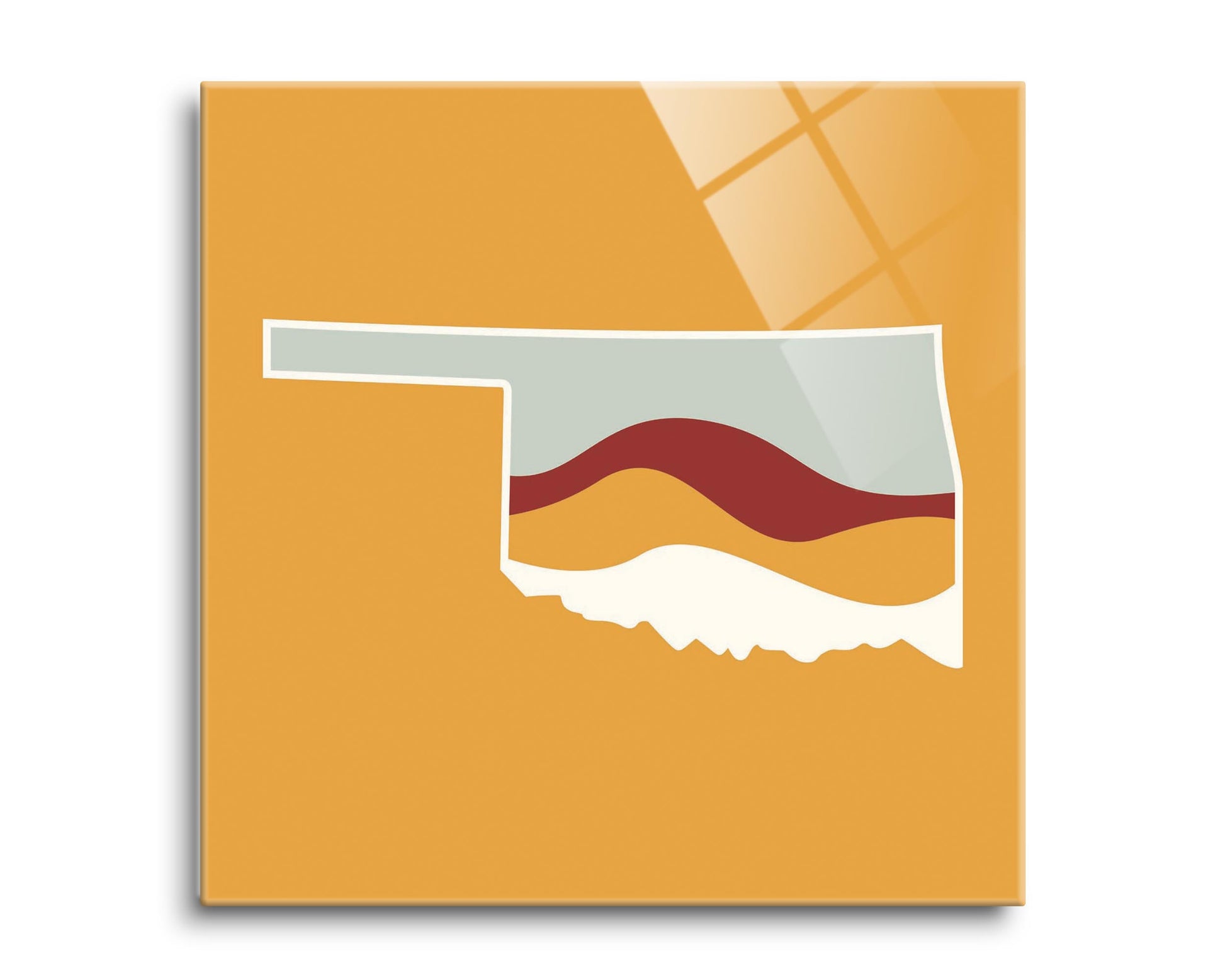 Modern Minimalist Oklahoma Orange Retro State Shape With Hills | Hi-Def Glass Art | Eaches | Min 2