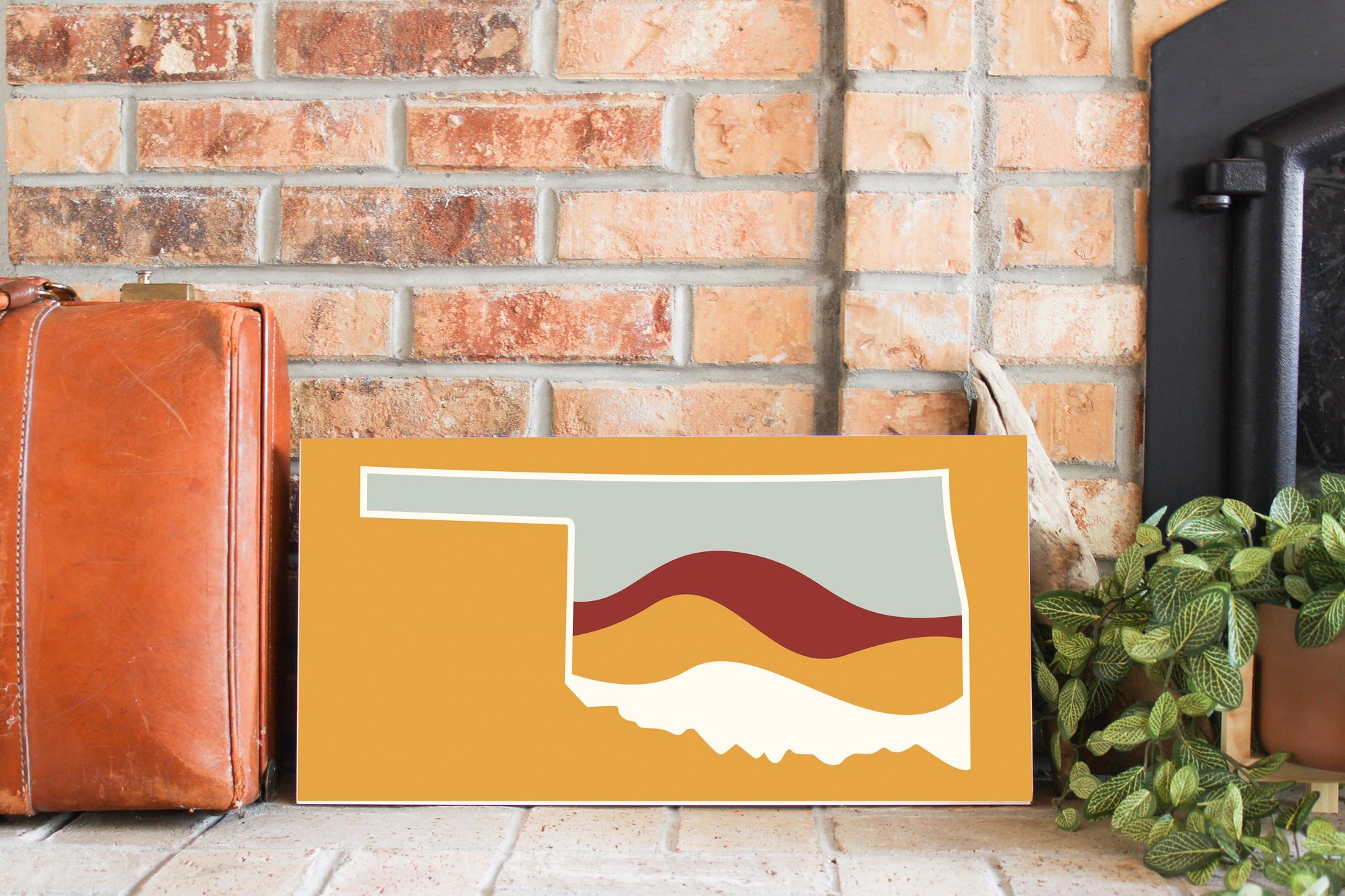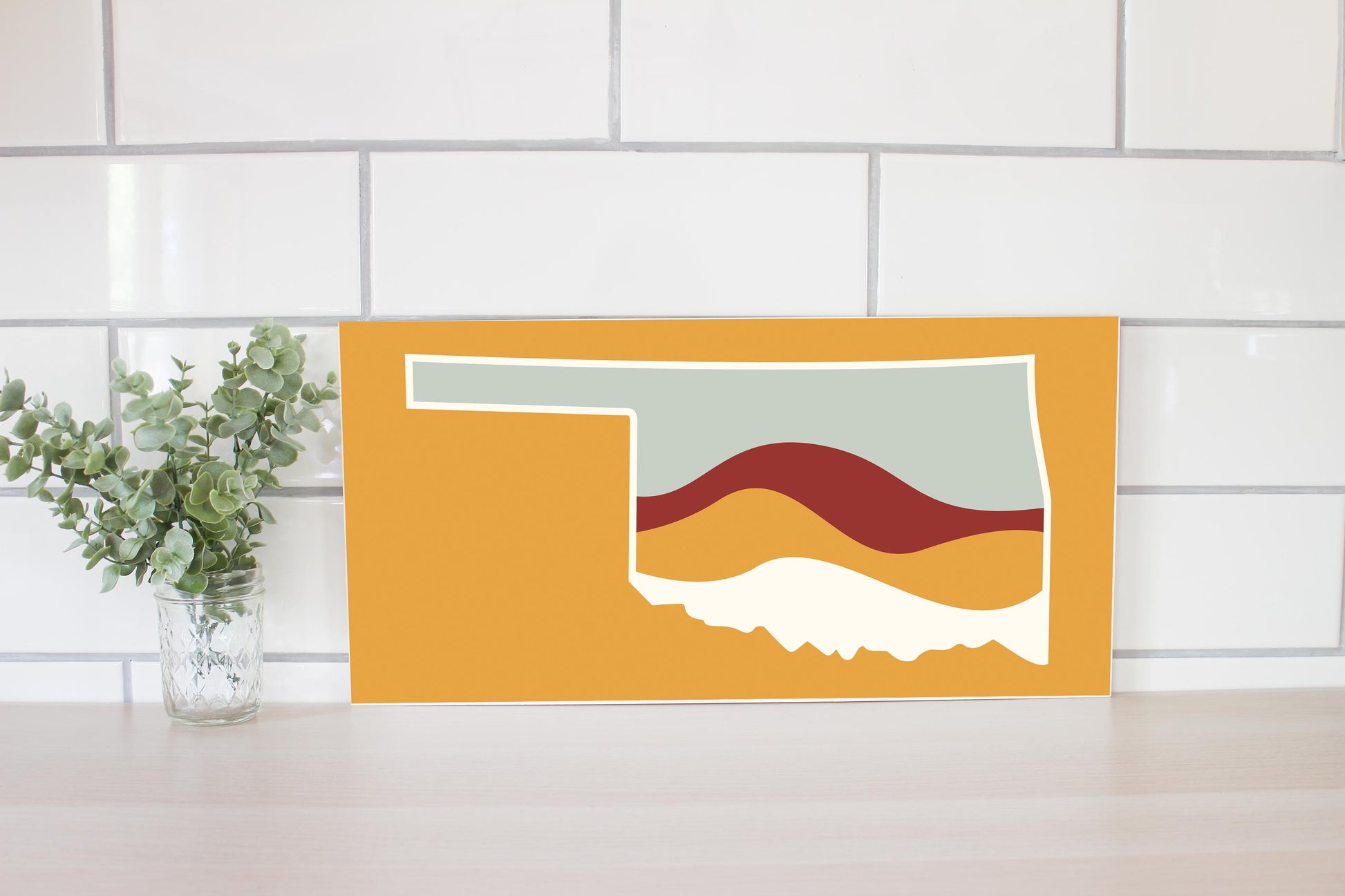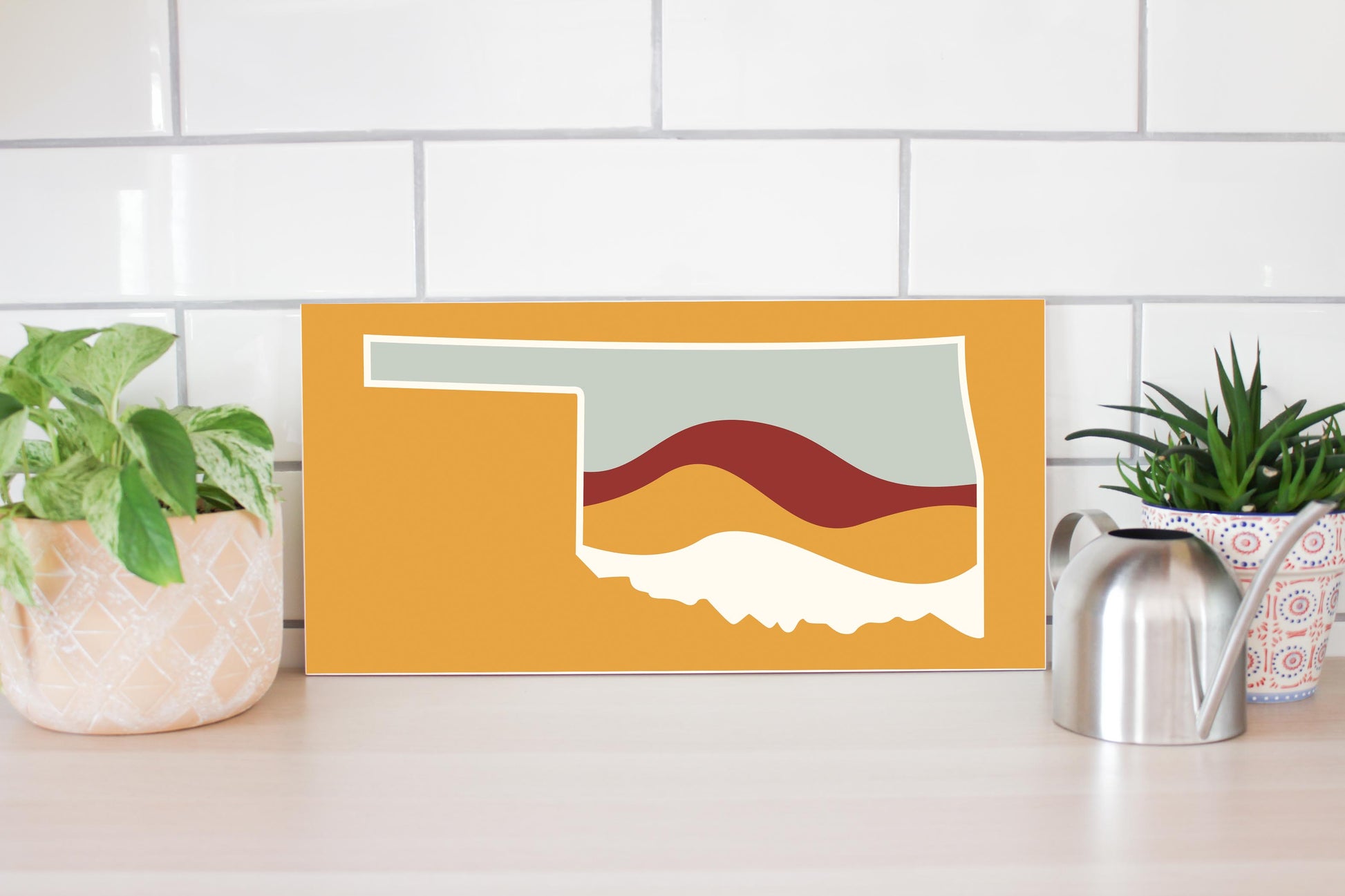 Modern Minimalist Oklahoma Orange Retro State Shape With Hills | Wood Sign | Eaches | Min 2