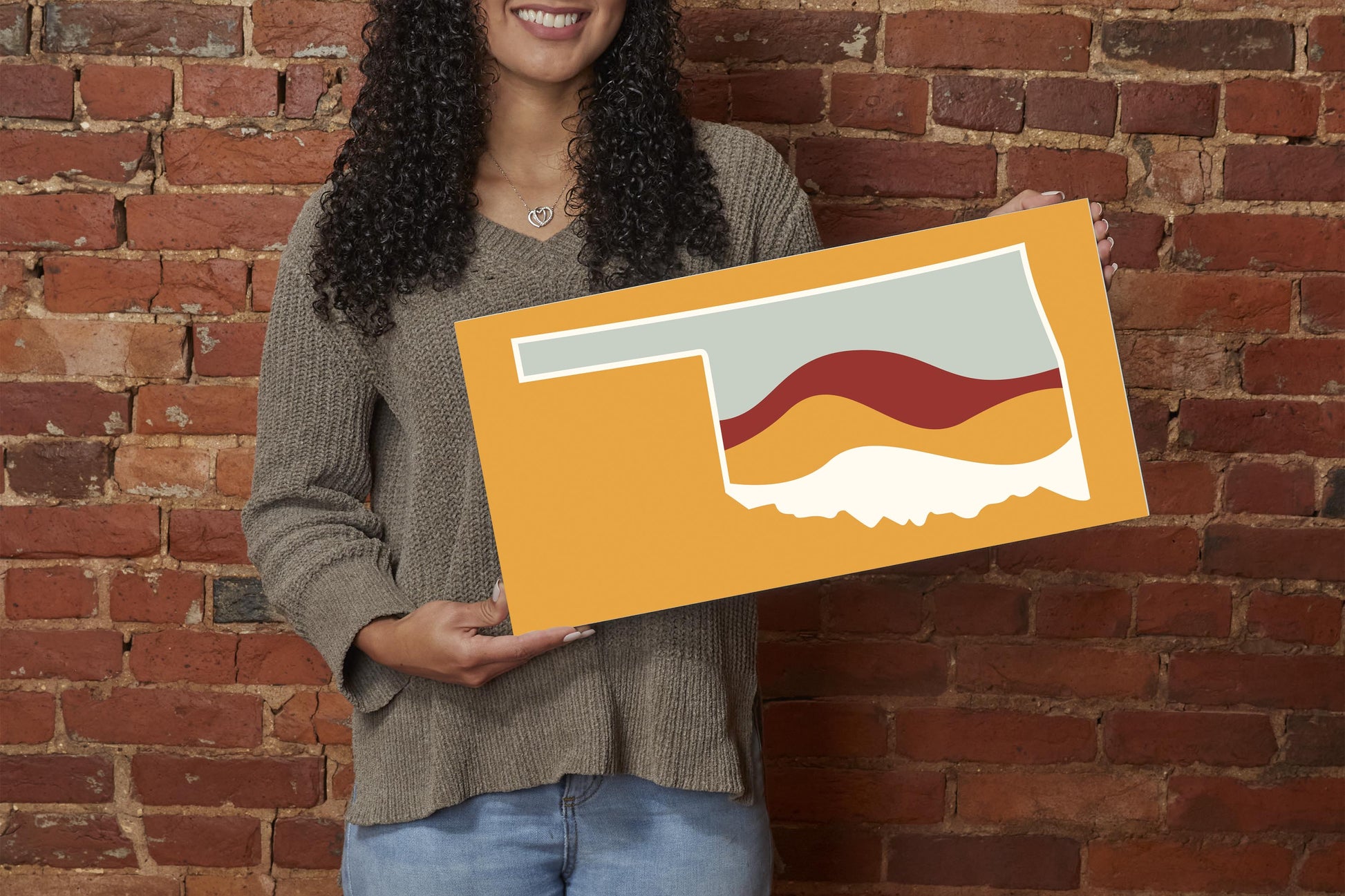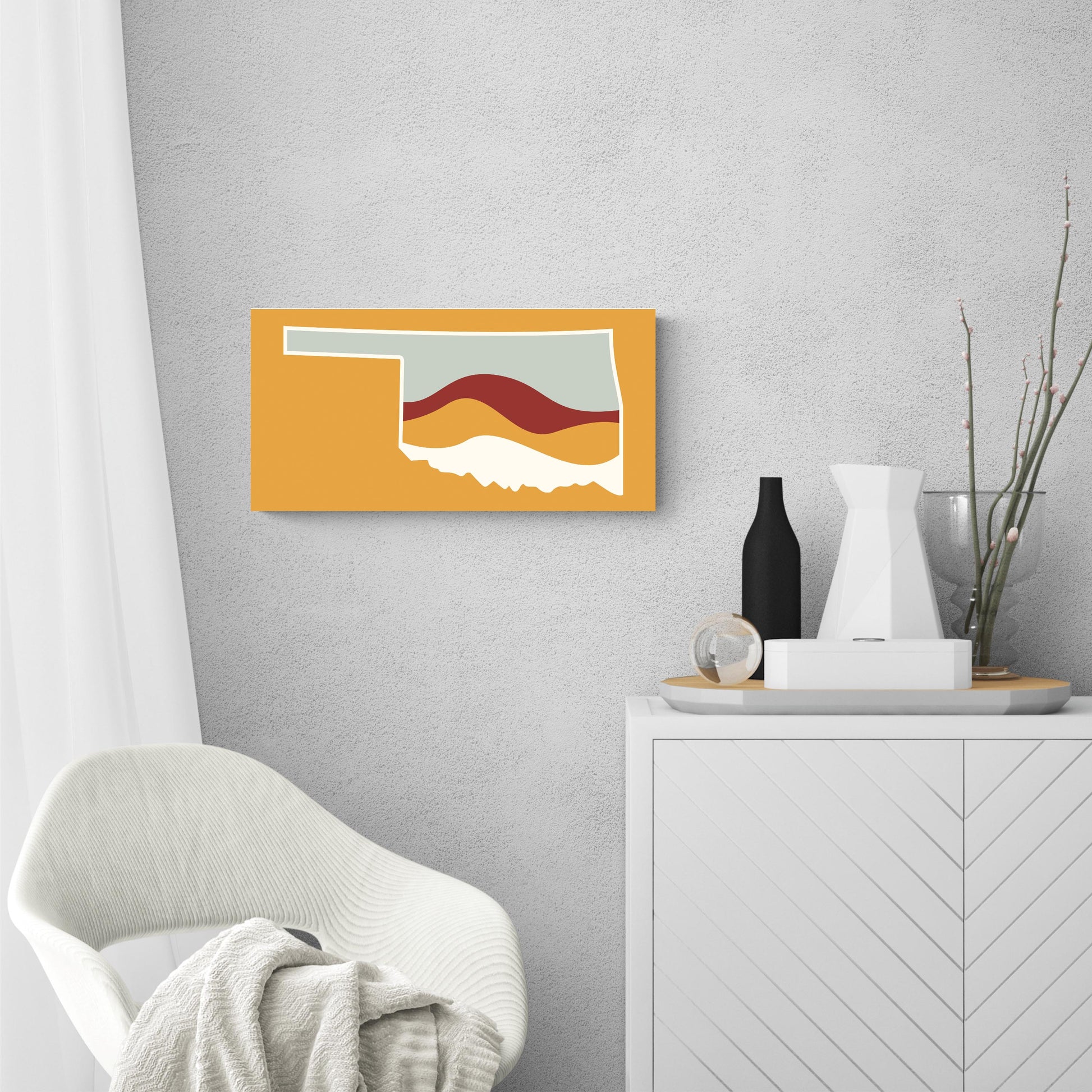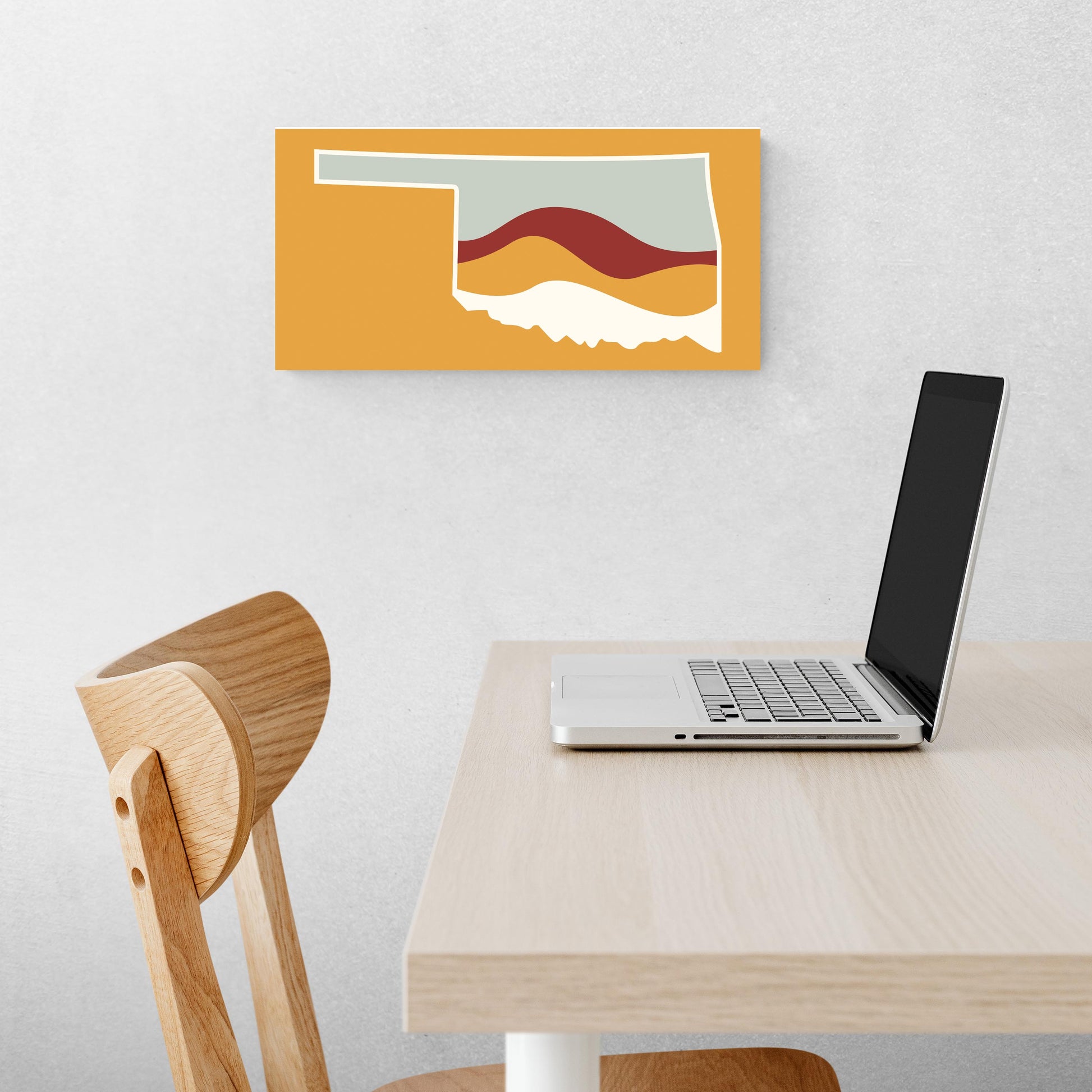 Modern Minimalist Oklahoma Orange Retro State Shape With Hills | Wood Sign | Eaches | Min 2