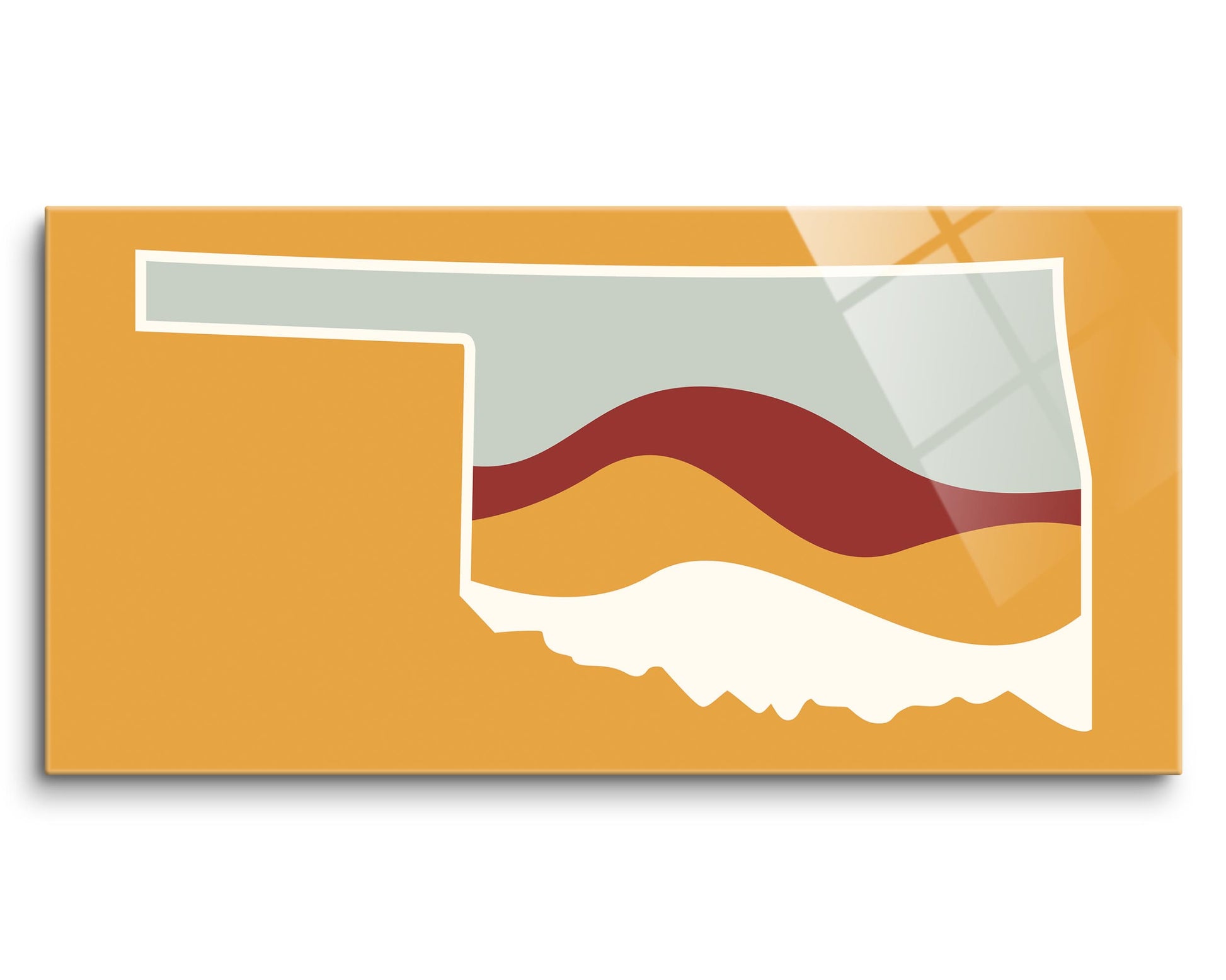 Modern Minimalist Oklahoma Orange Retro State Shape With Hills | Hi-Def Glass Art | Eaches | Min 2