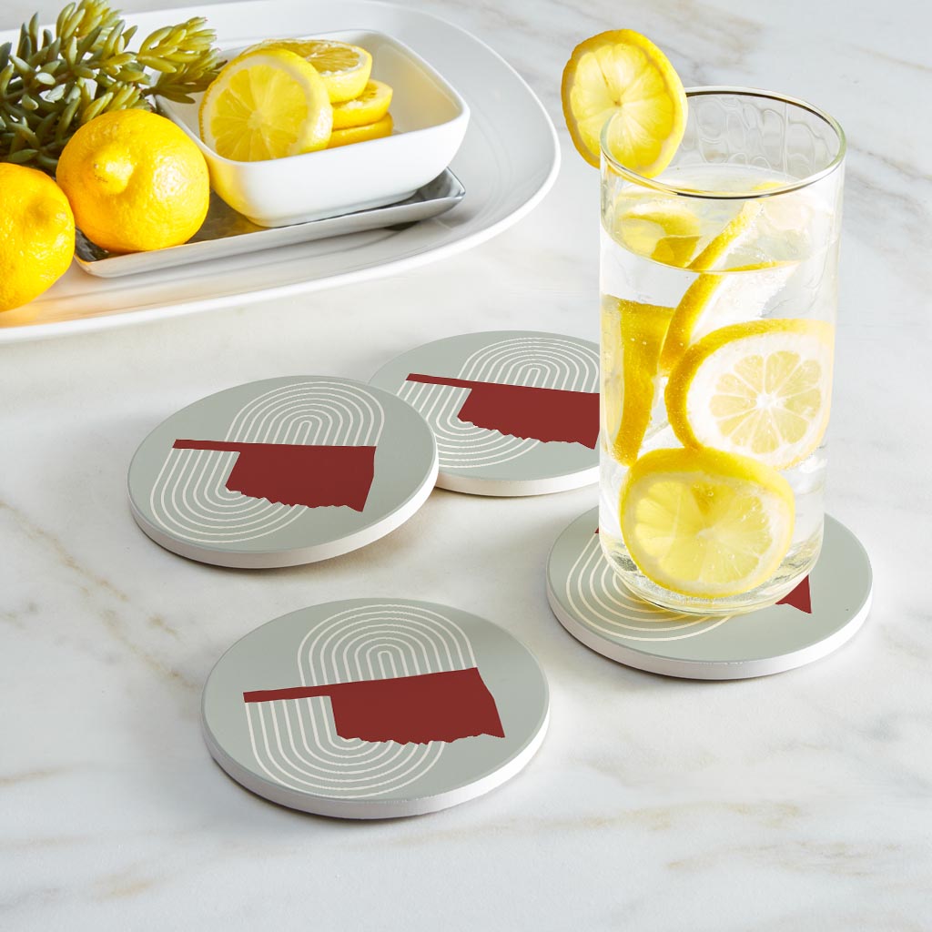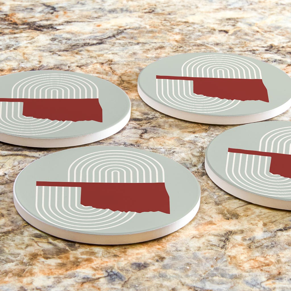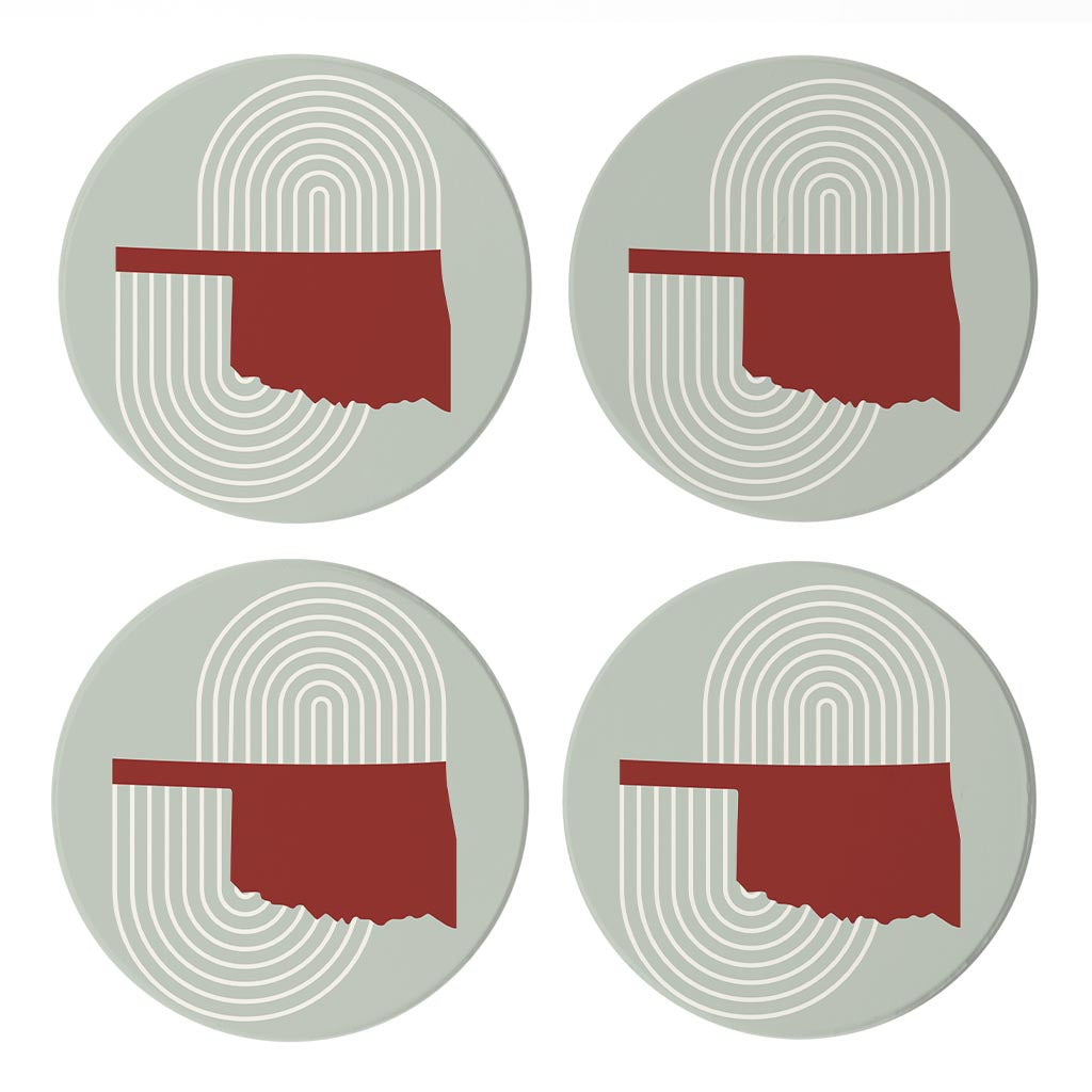 Modern Minimalist Oklahoma Retro State Shape | Absorbent Coasters | Set of 4 | Min 2