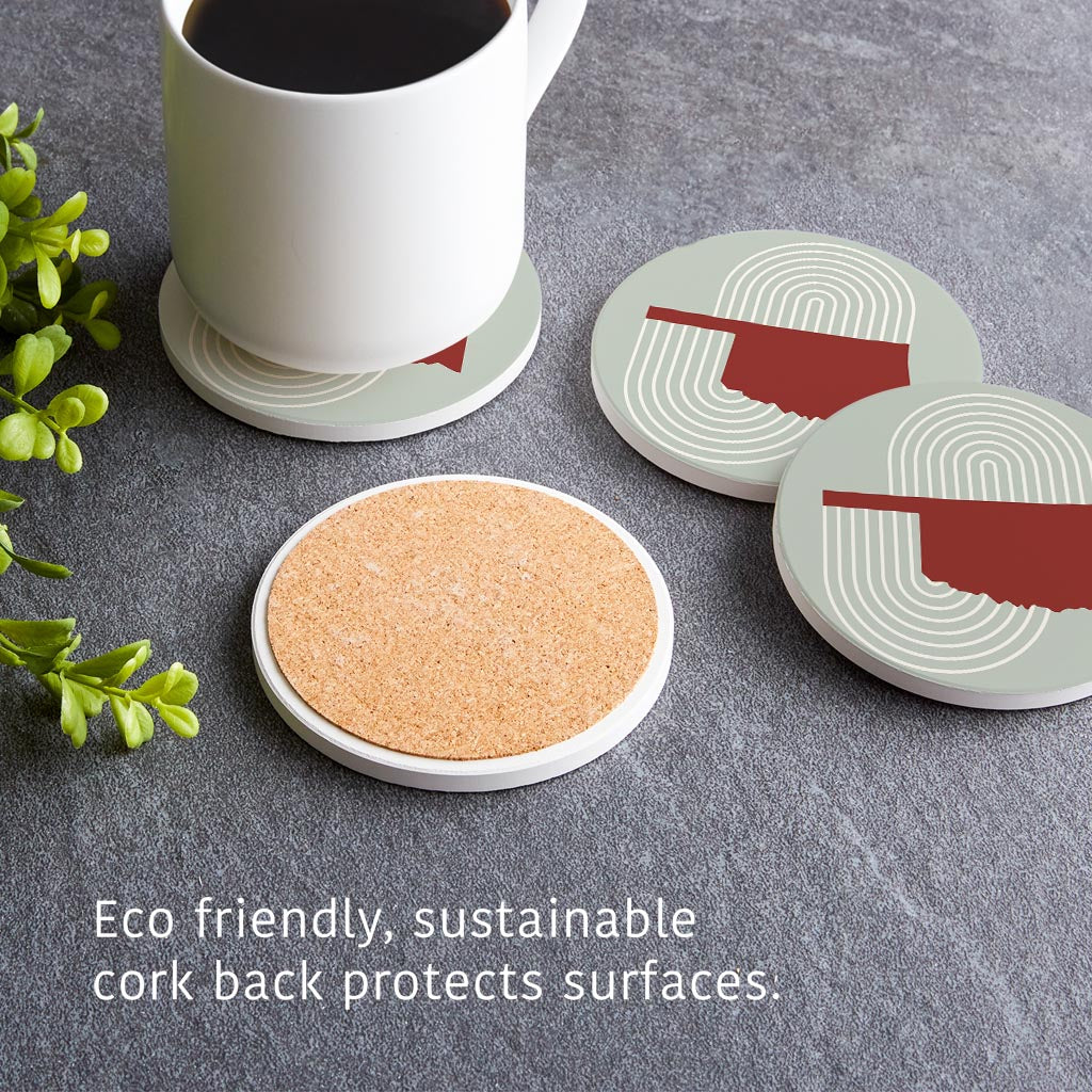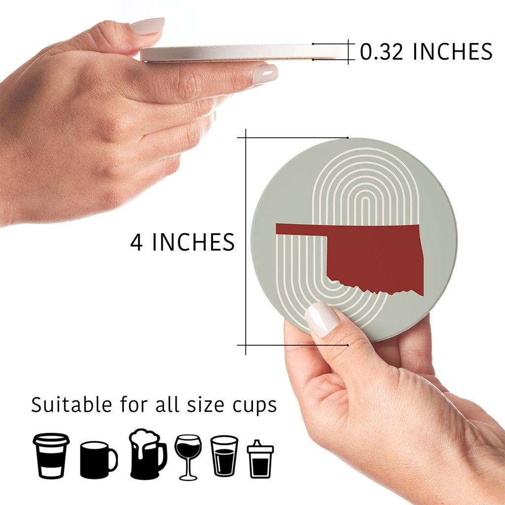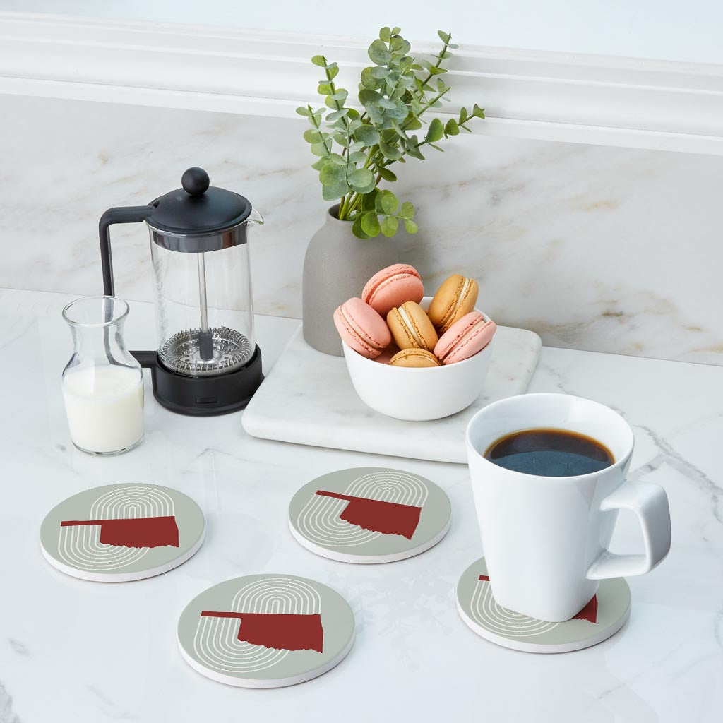 Modern Minimalist Oklahoma Retro State Shape | Absorbent Coasters | Set of 4 | Min 2