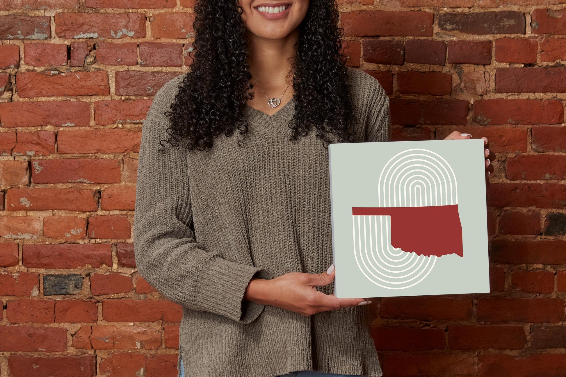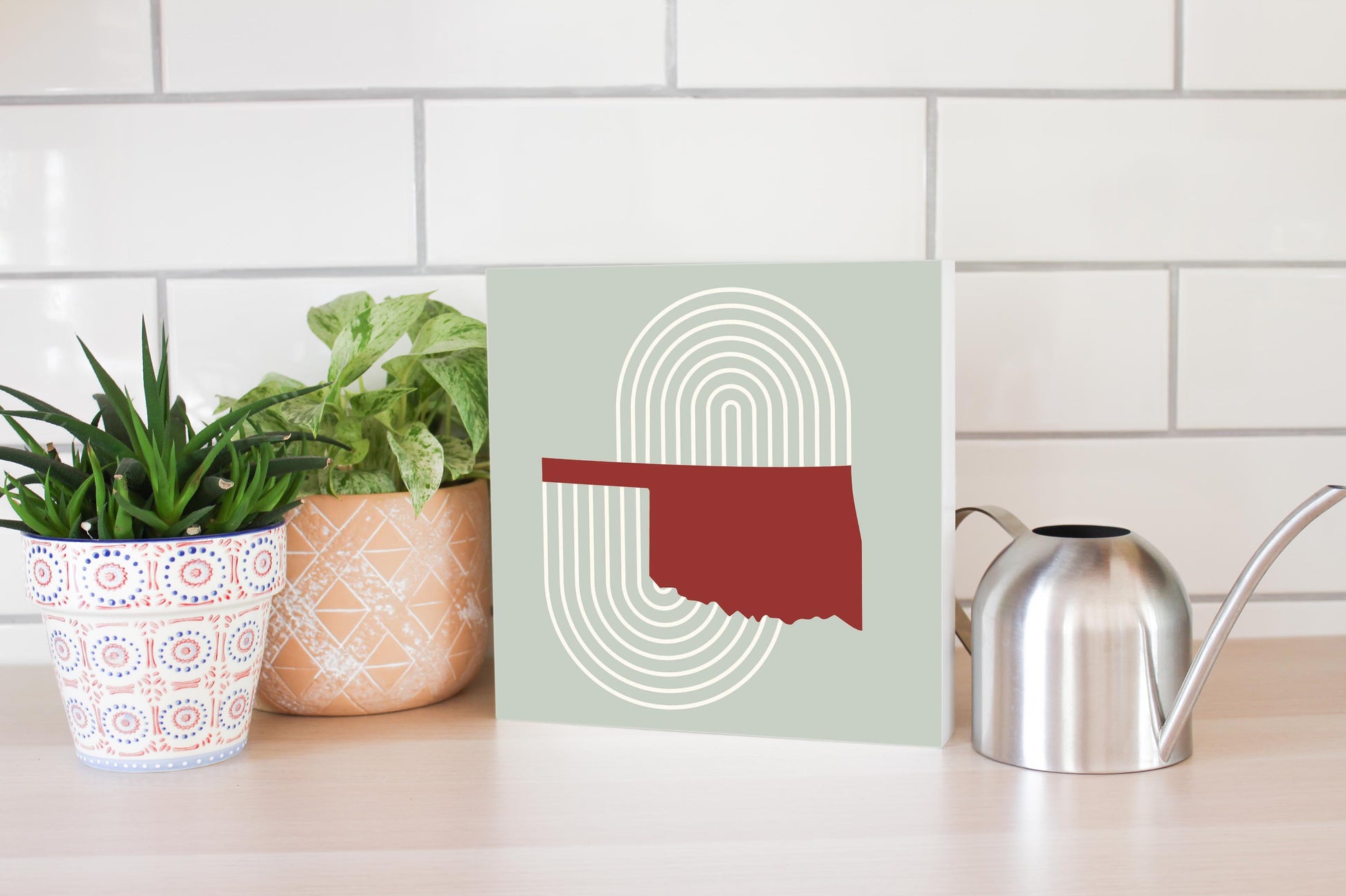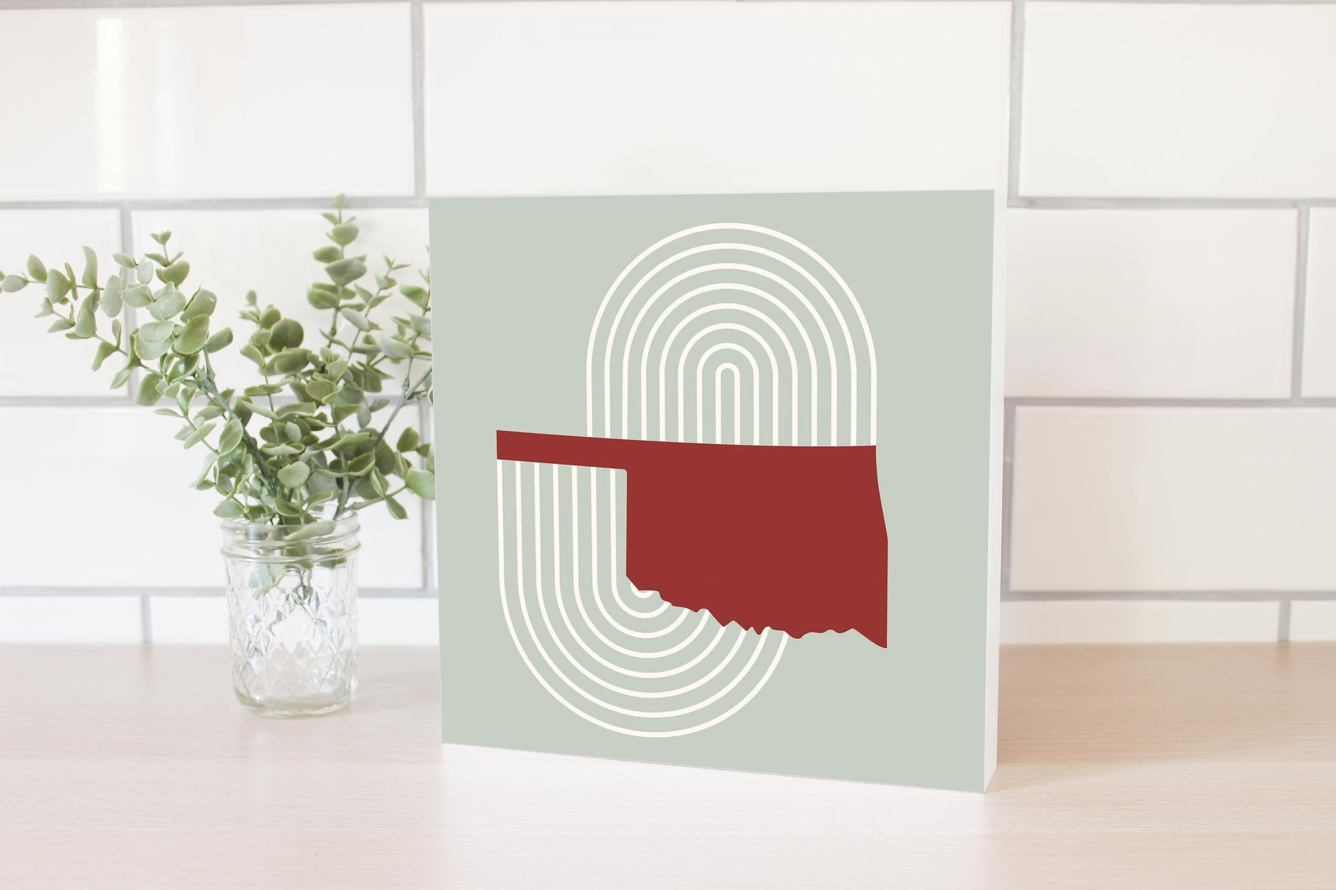 Modern Minimalist Oklahoma Retro State Shape | Wood Block | Eaches | Min 2