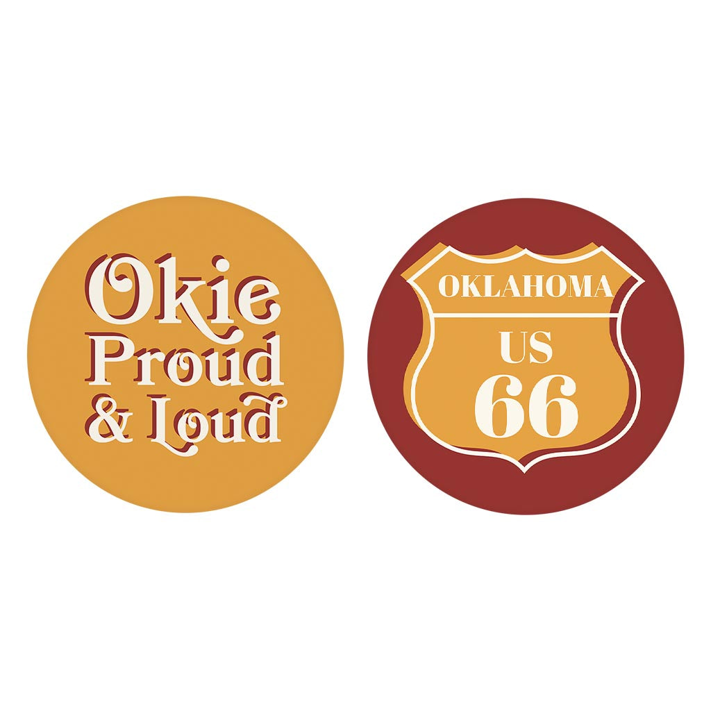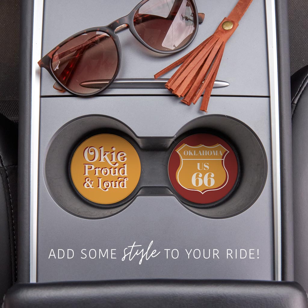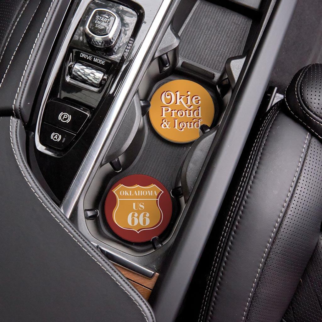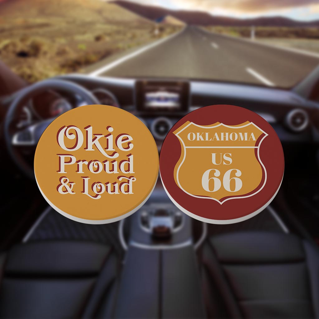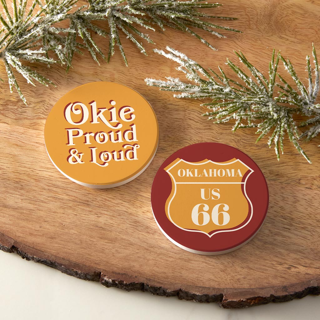 Modern Minimalist Oklahoma Set | Absorbent Car Coasters | Set of 2 | Min 4