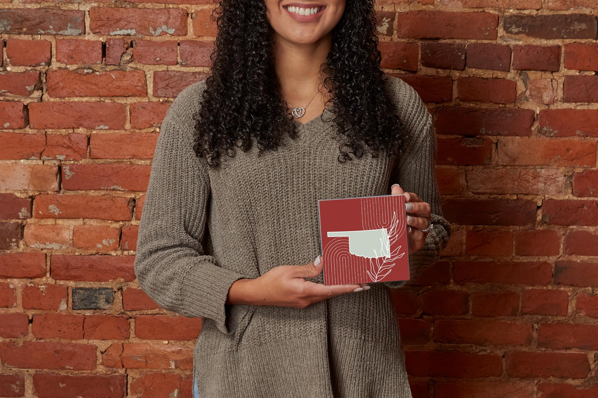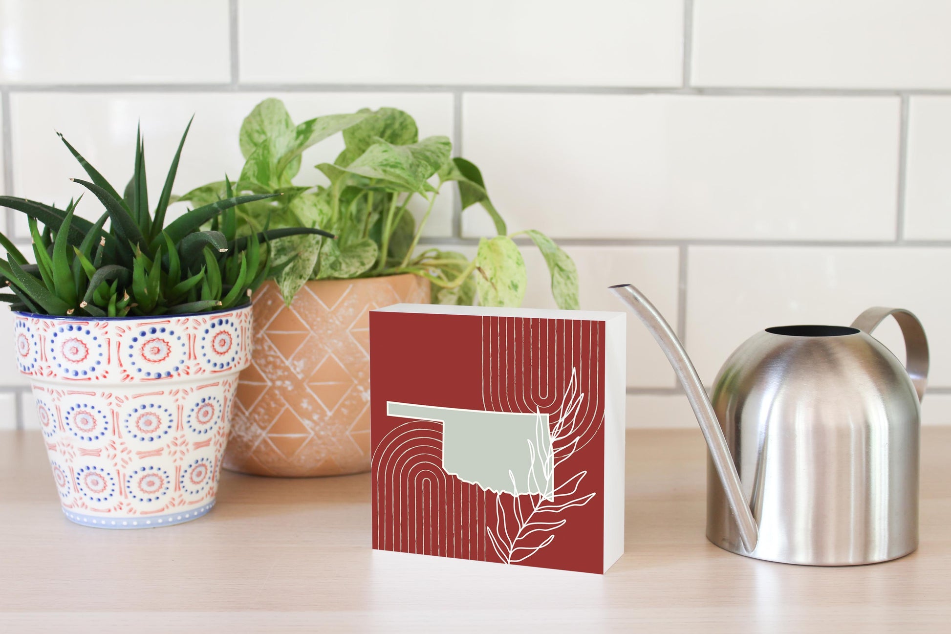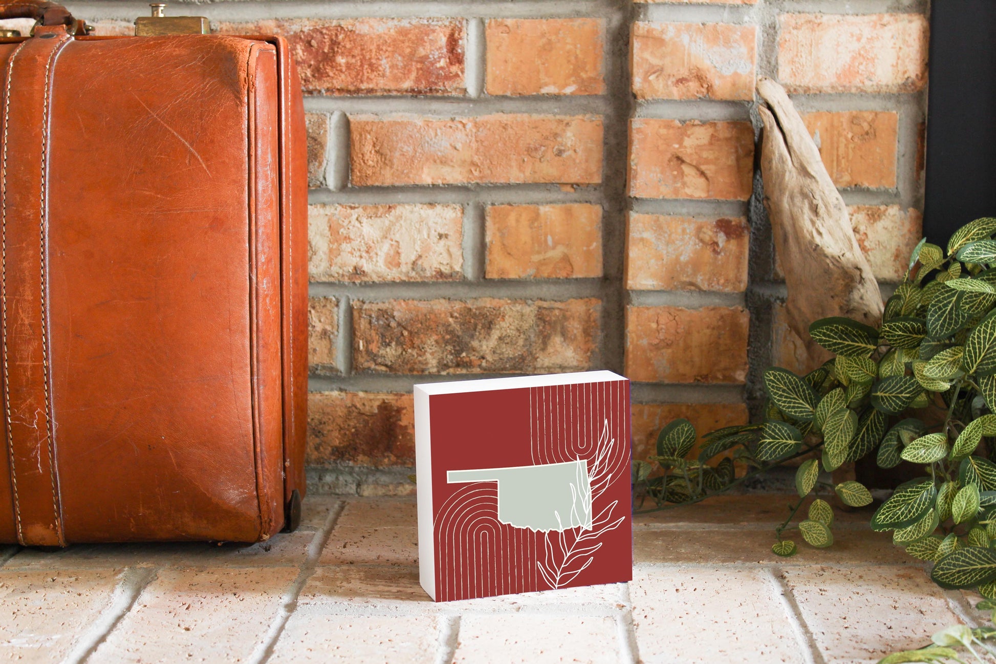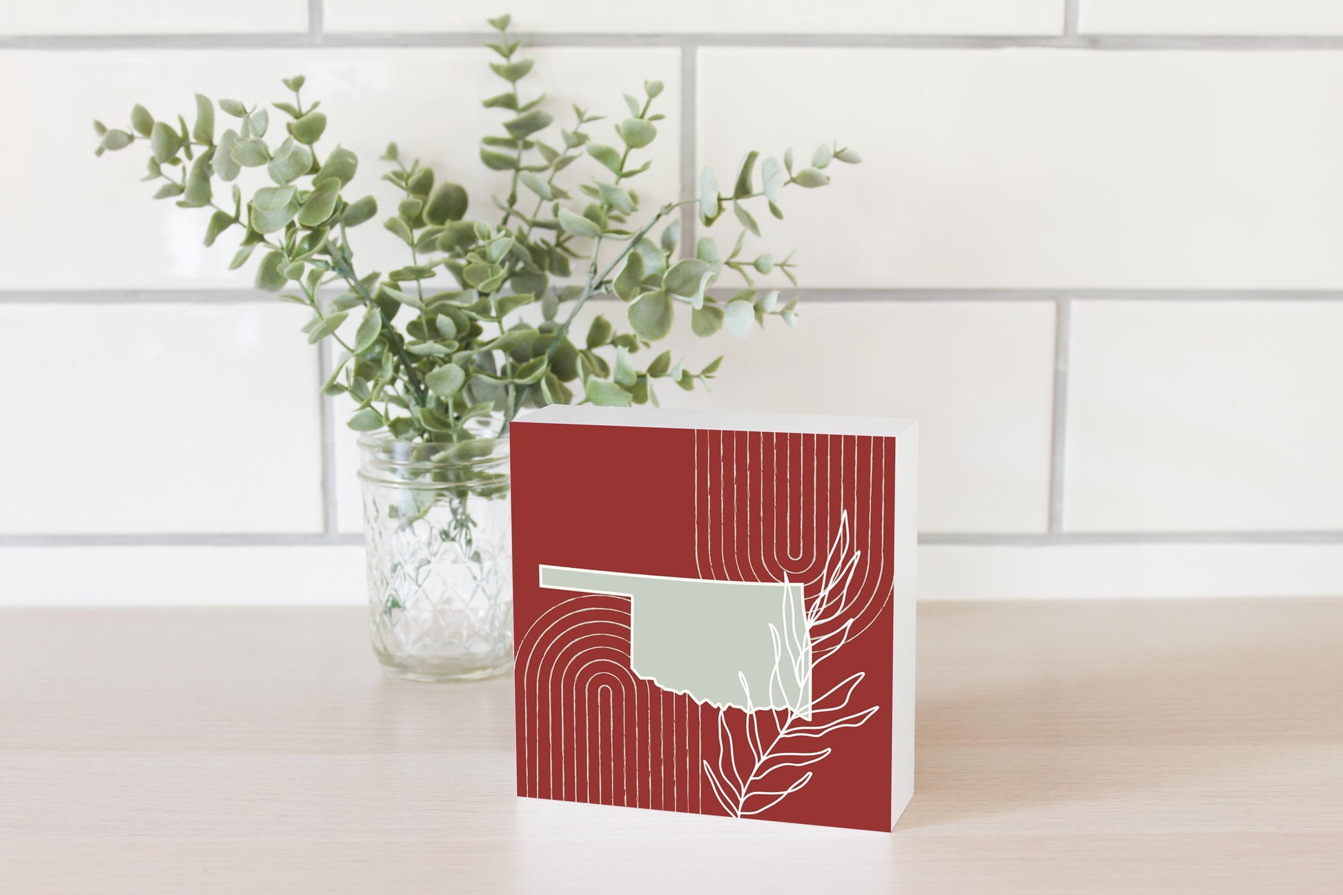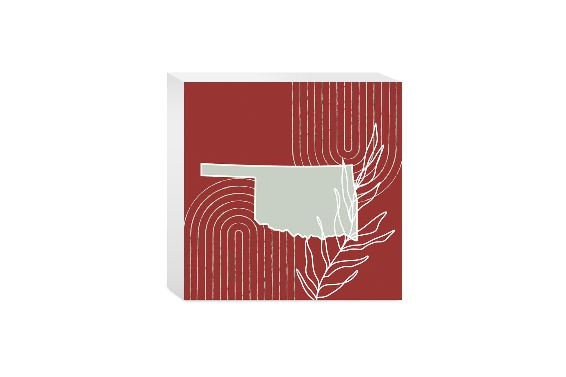 Modern Minimalist Oklahoma State Shape With Leaf | Wood Block | Eaches | Min 4