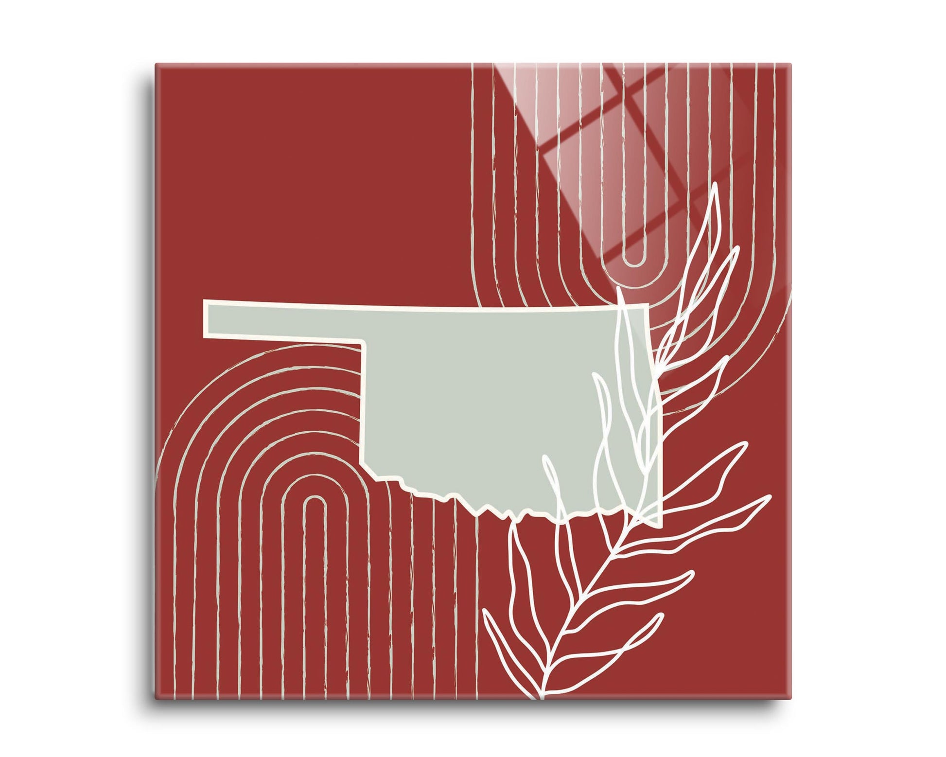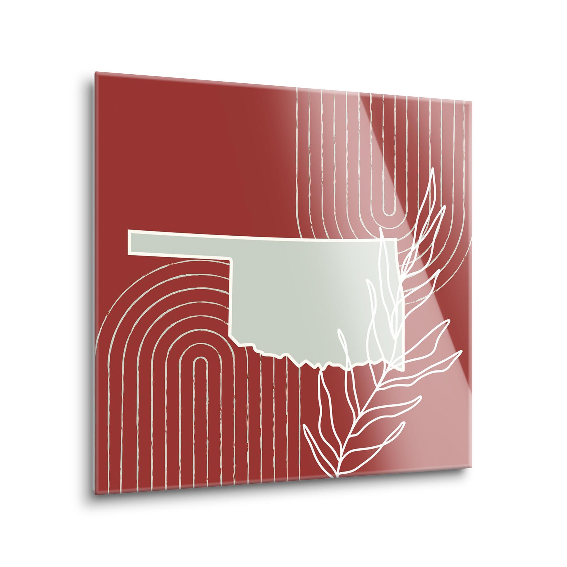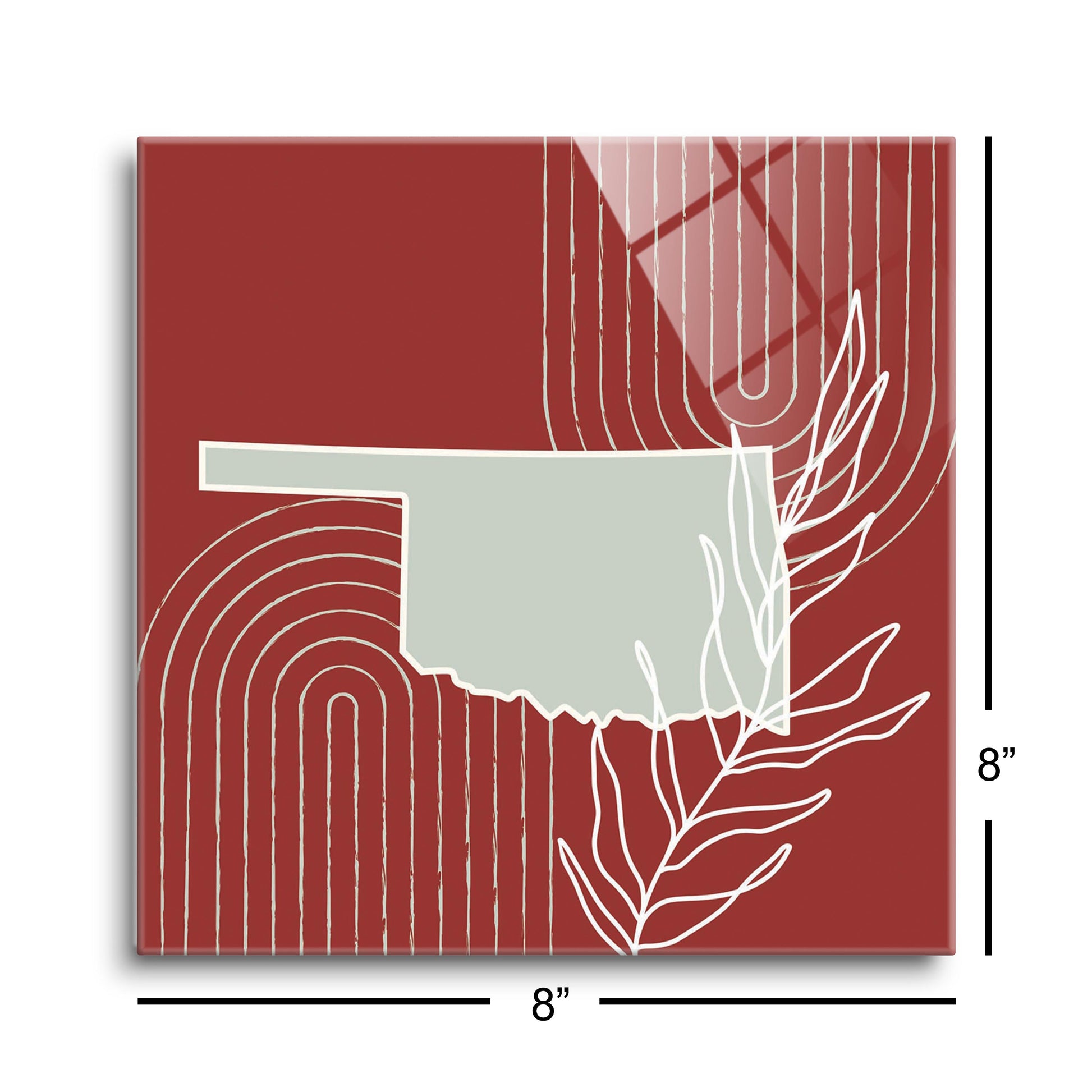Modern Minimalist Oklahoma State Shape With Leaf | Hi-Def Glass Art | Eaches | Min 2