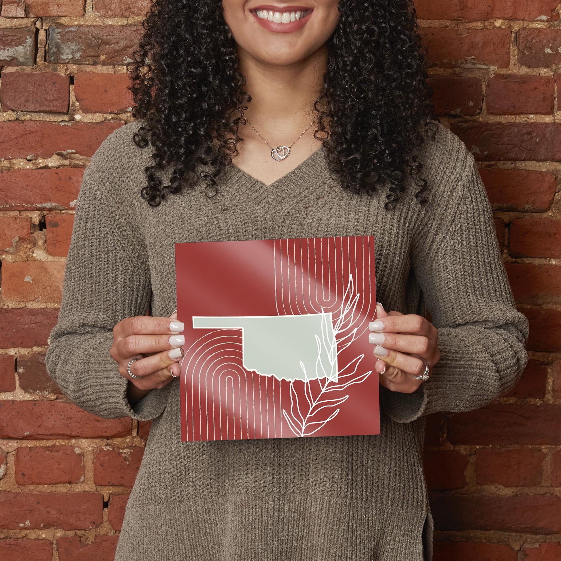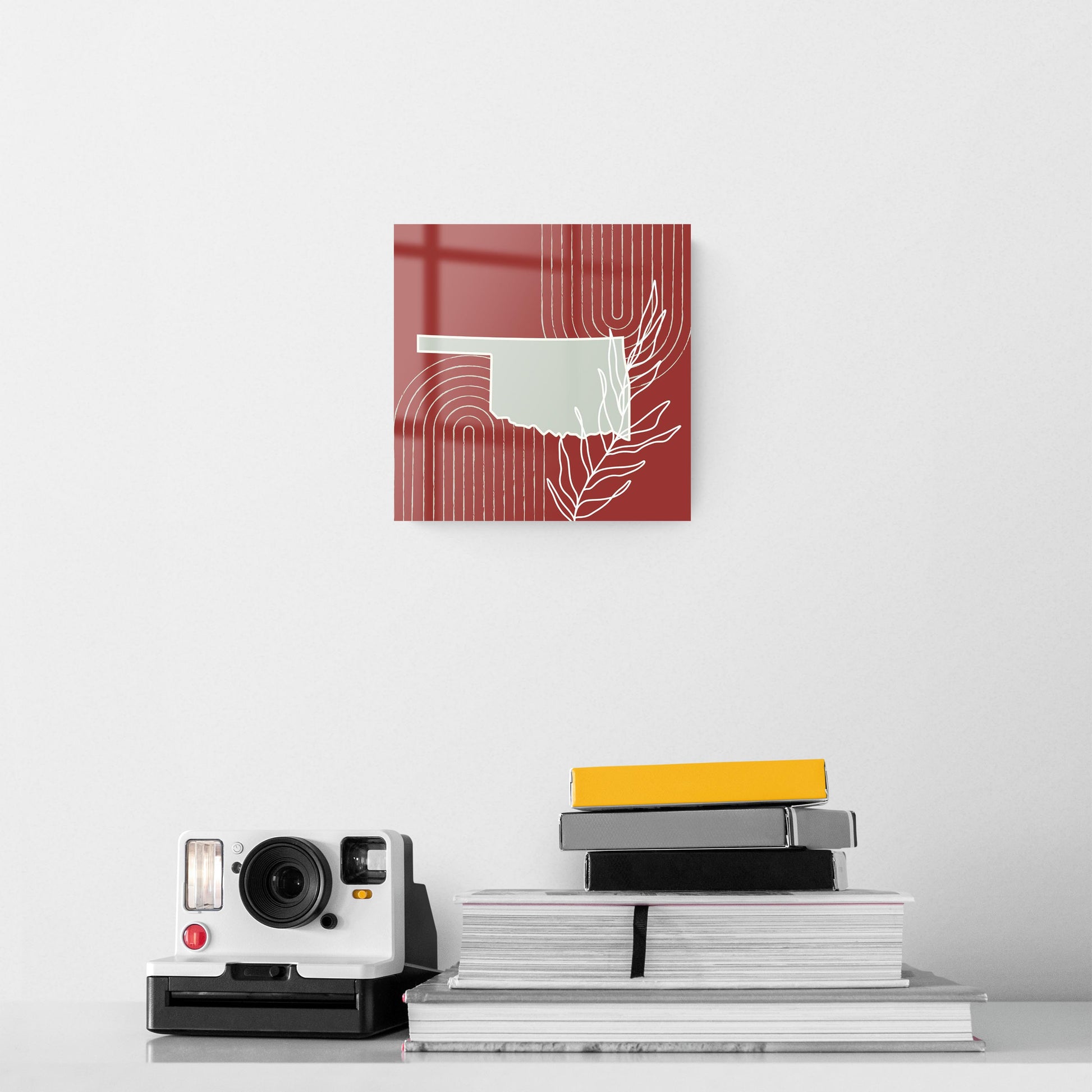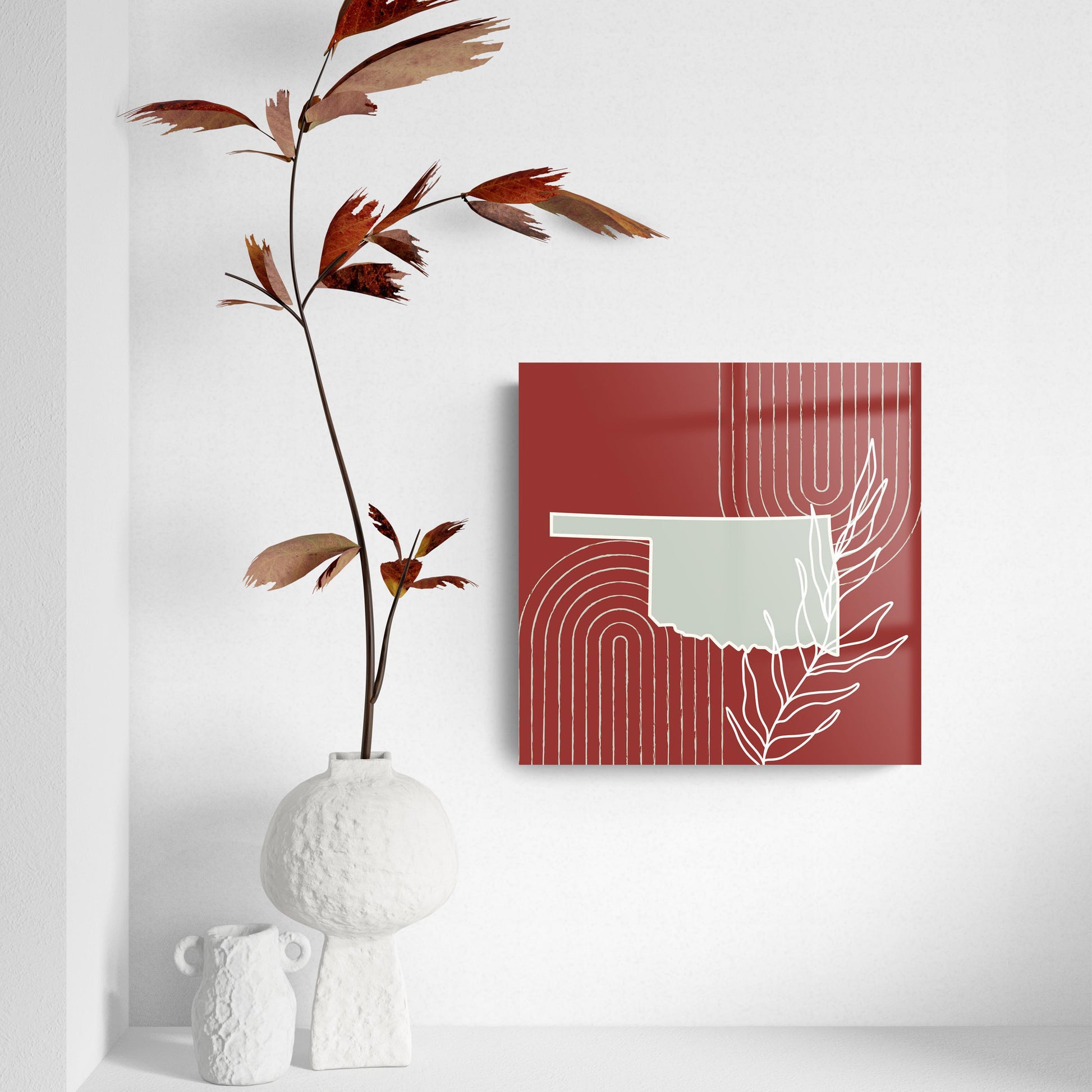 Modern Minimalist Oklahoma State Shape With Leaf | Hi-Def Glass Art | Eaches | Min 2