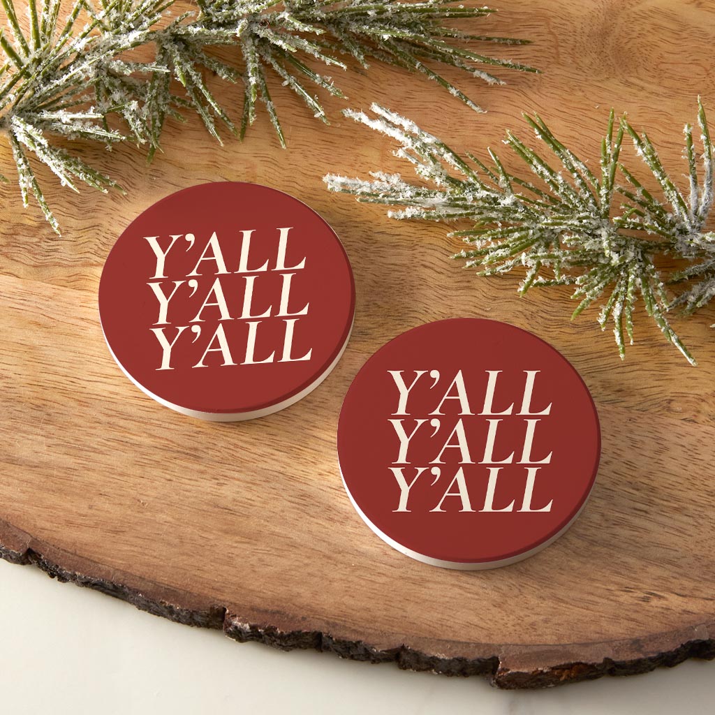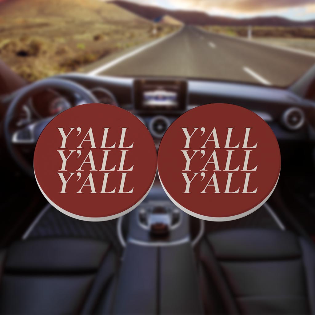 Modern Minimalist Oklahoma Yall | Absorbent Car Coasters | Set of 2 | Min 4