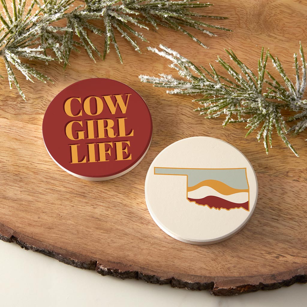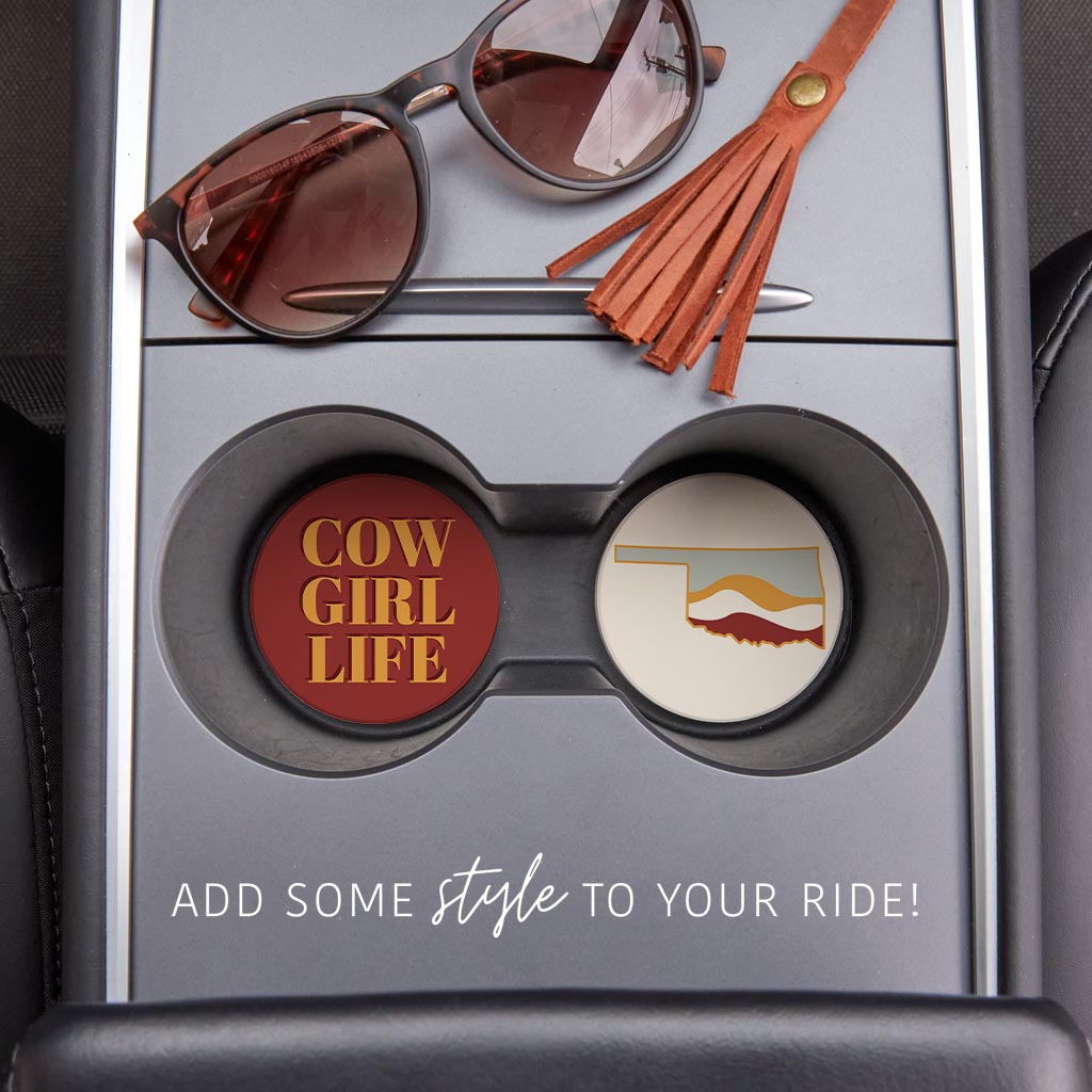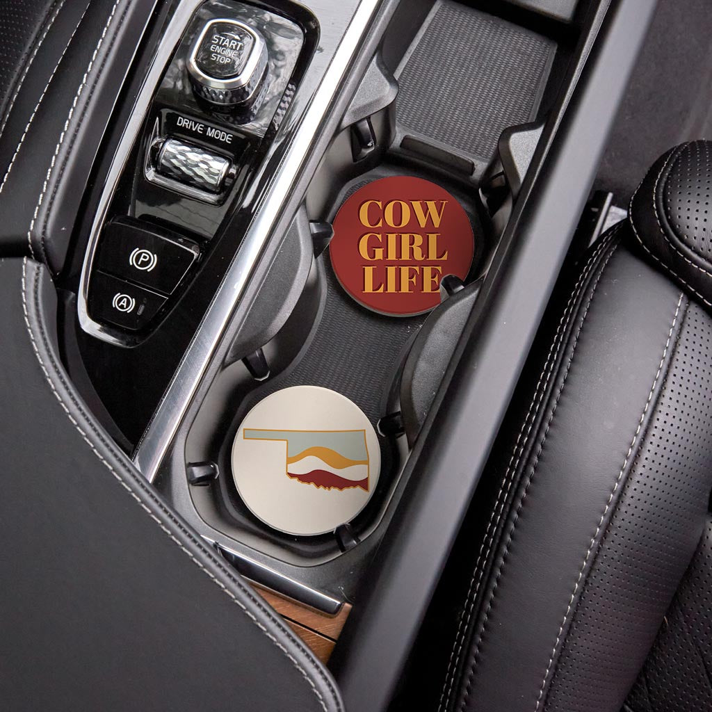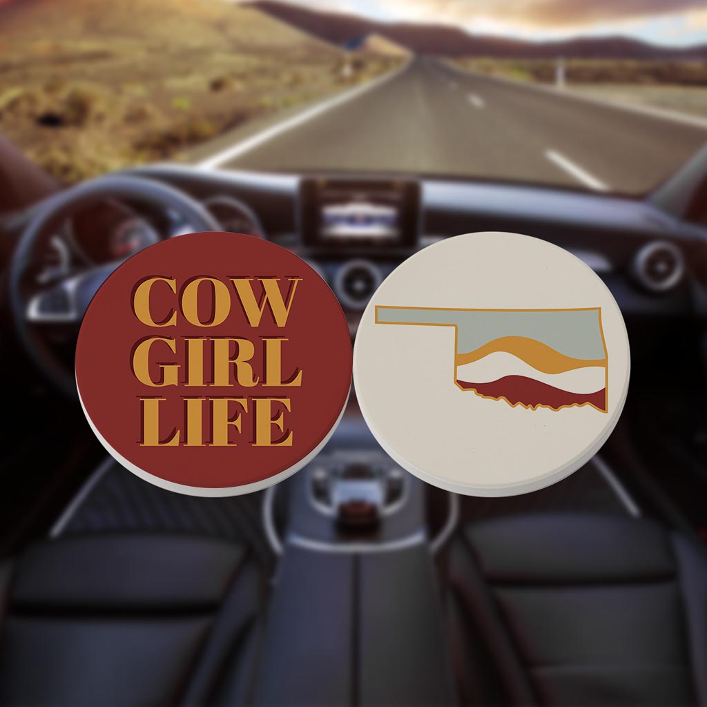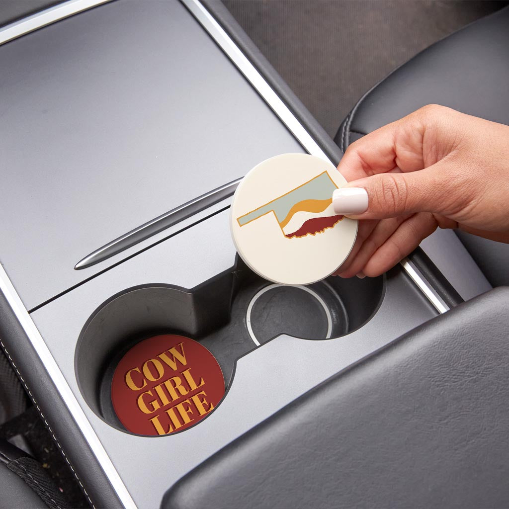 Modern Minimalist Oklahomaset | Absorbent Car Coasters | Set of 2 | Min 4