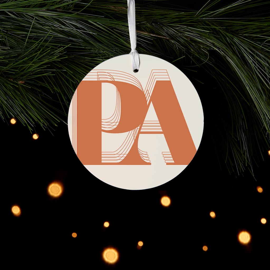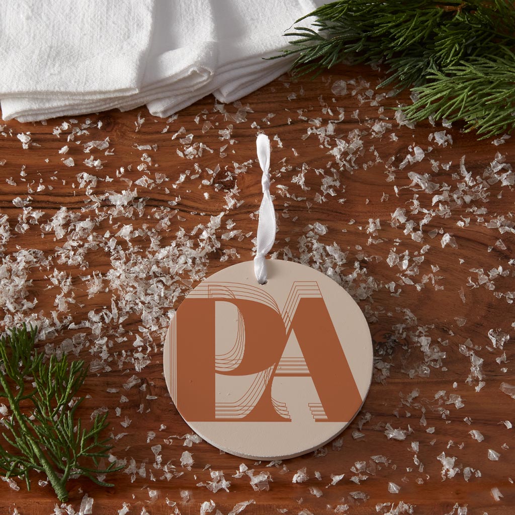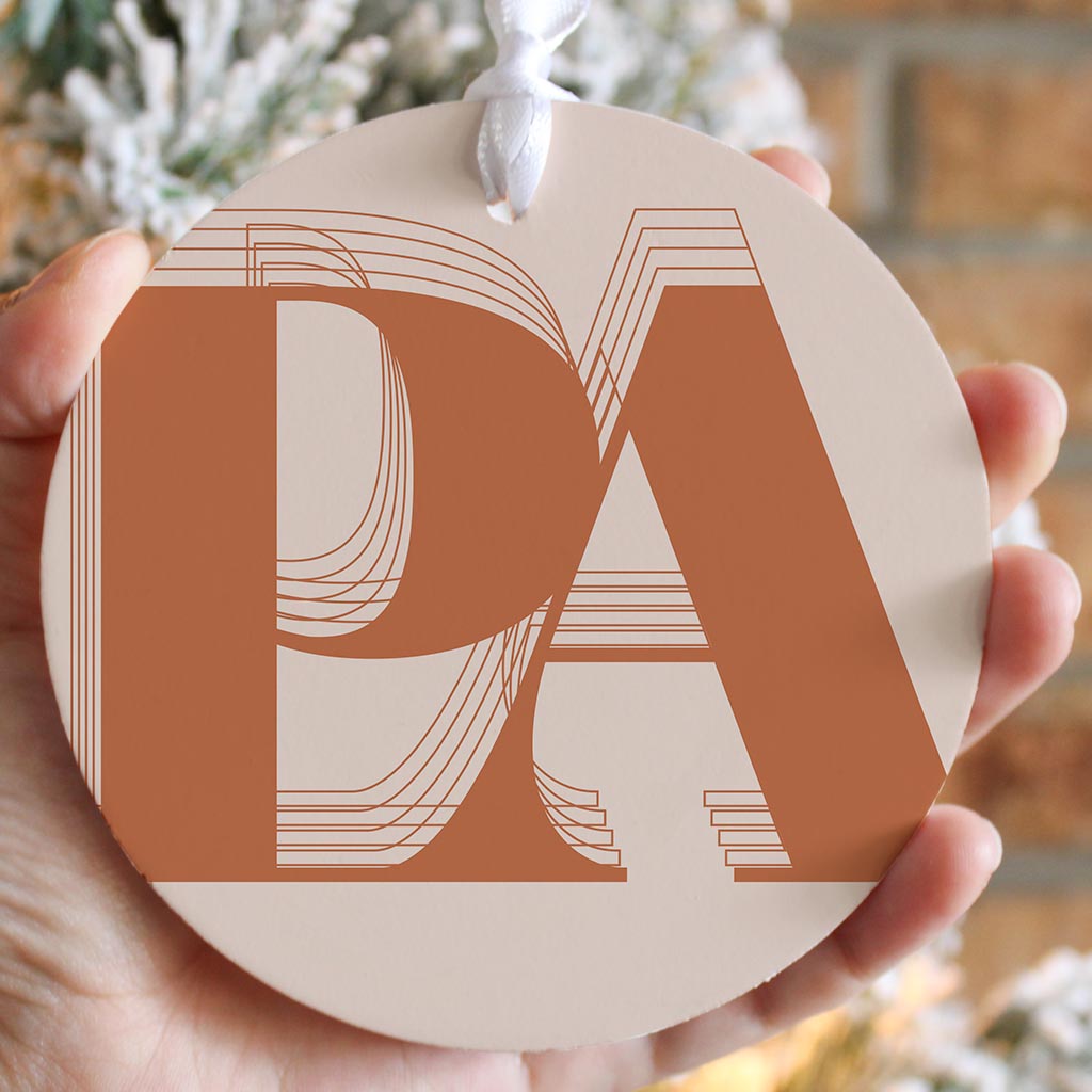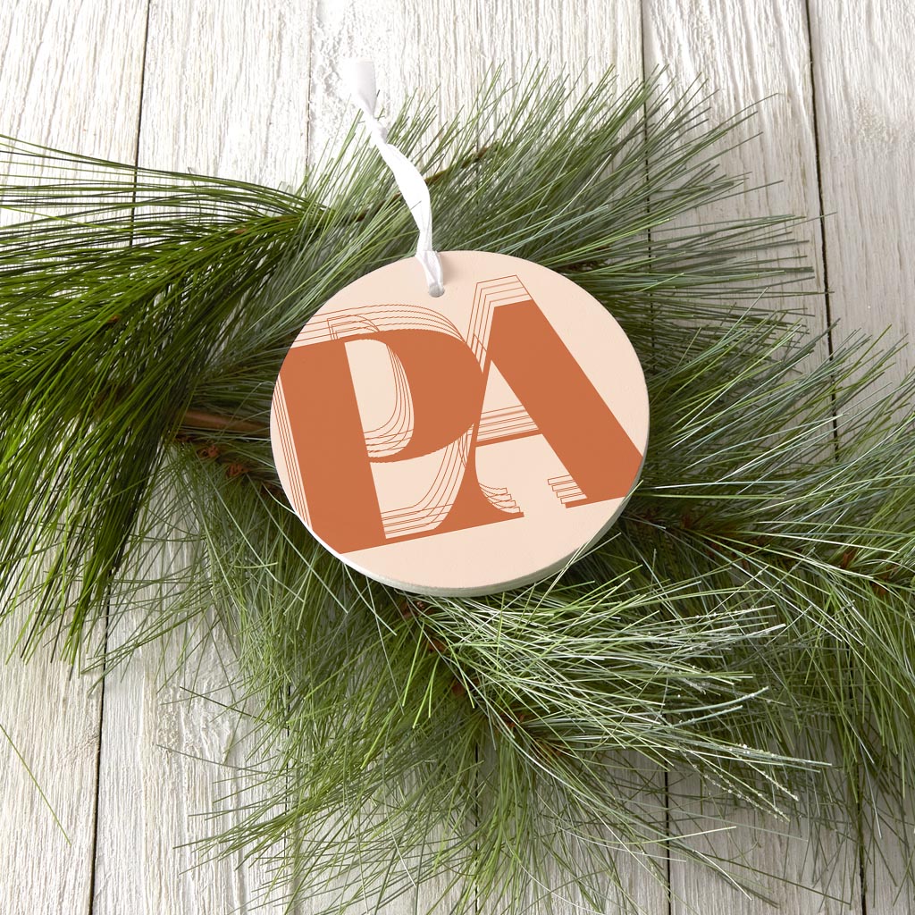 Modern Minimalist Pennsylvania Pa Initials Dark| Wood Ornament | Eaches | Min 6