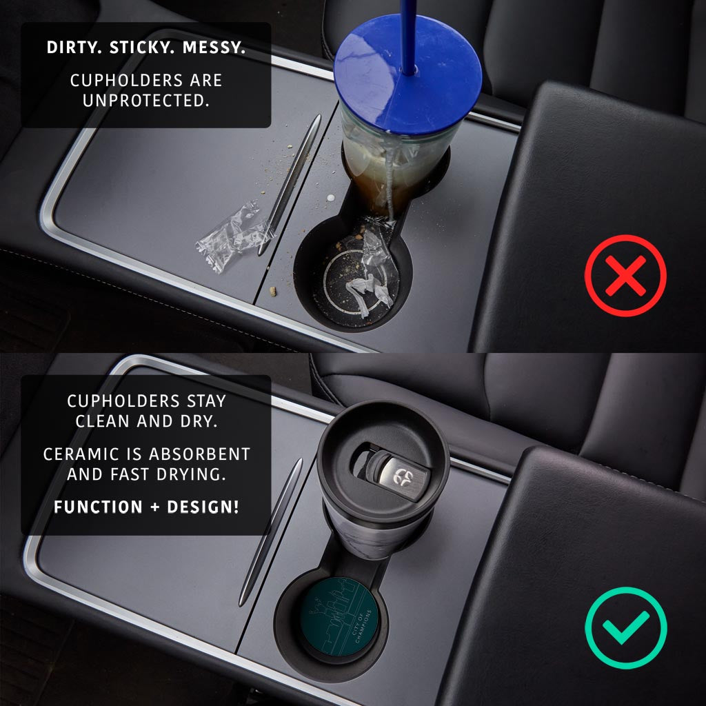 Car coasters are that little accessory that you didn’t know you needed but now consider an essential. Your cupholders are protected and kept clean by absorbing drips from your morning coffee to sticky juice boxes. The strategic divot edge allows you to easily pop it out and wipe clean. No more grime stuck in the cupholder abyss. While car coasters are wonderfully utilitarian, they also inject a little personality and design into the space you spend so much time in. Order a few to mix and match to your mood, season, or newest trends. We love when function and design coincide!