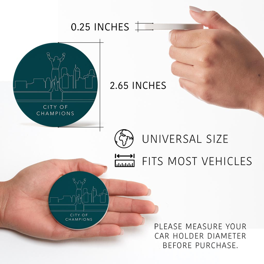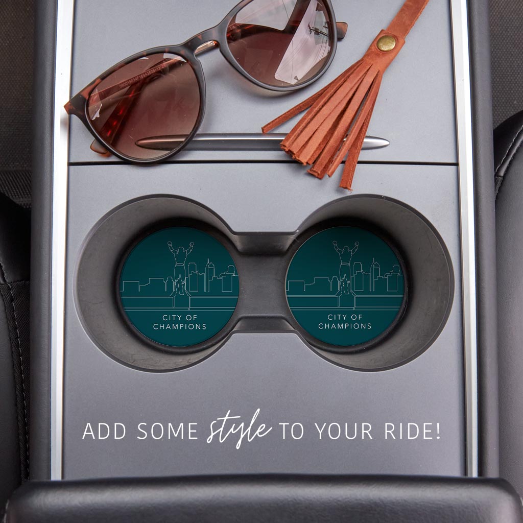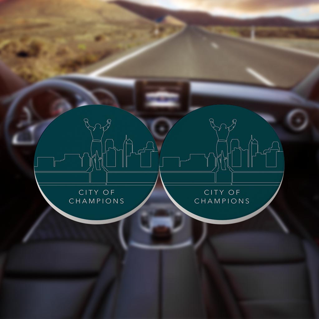 Modern Minimalist Pennsylvania Rocky Statue | Absorbent Car Coasters | Set of 2 | Min 4
