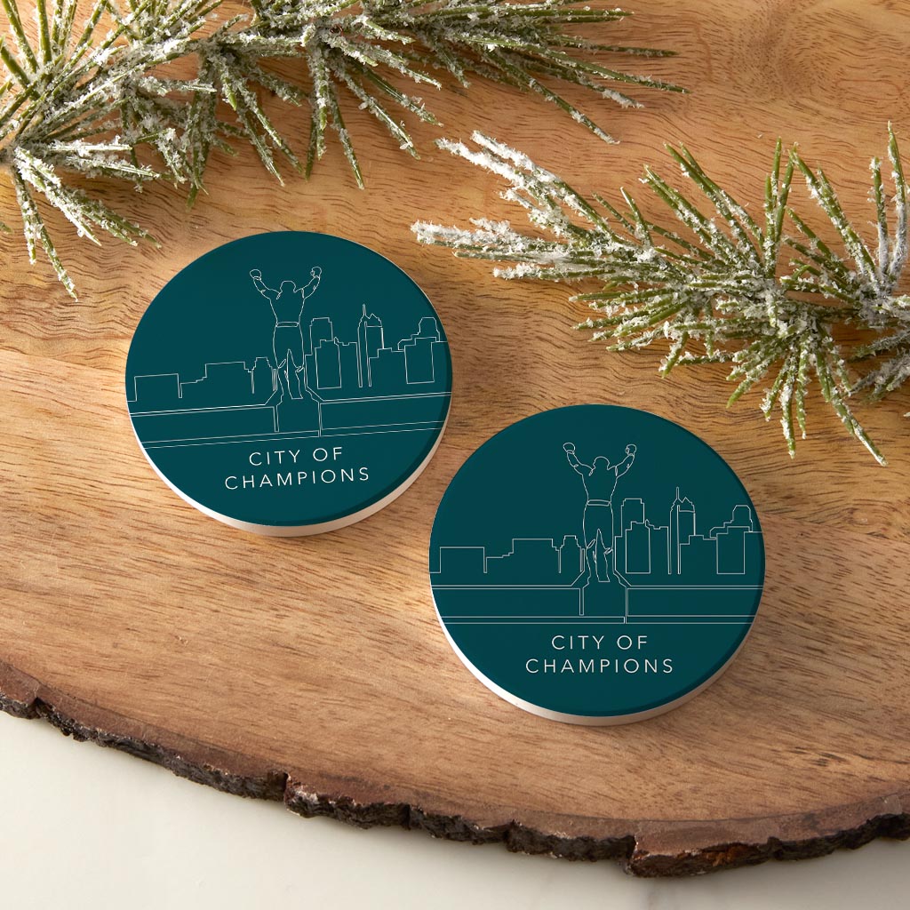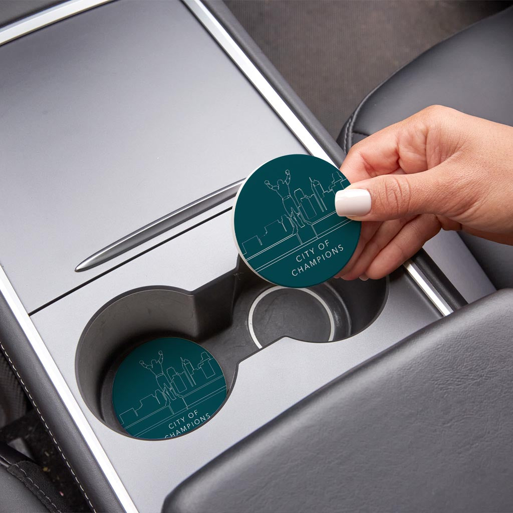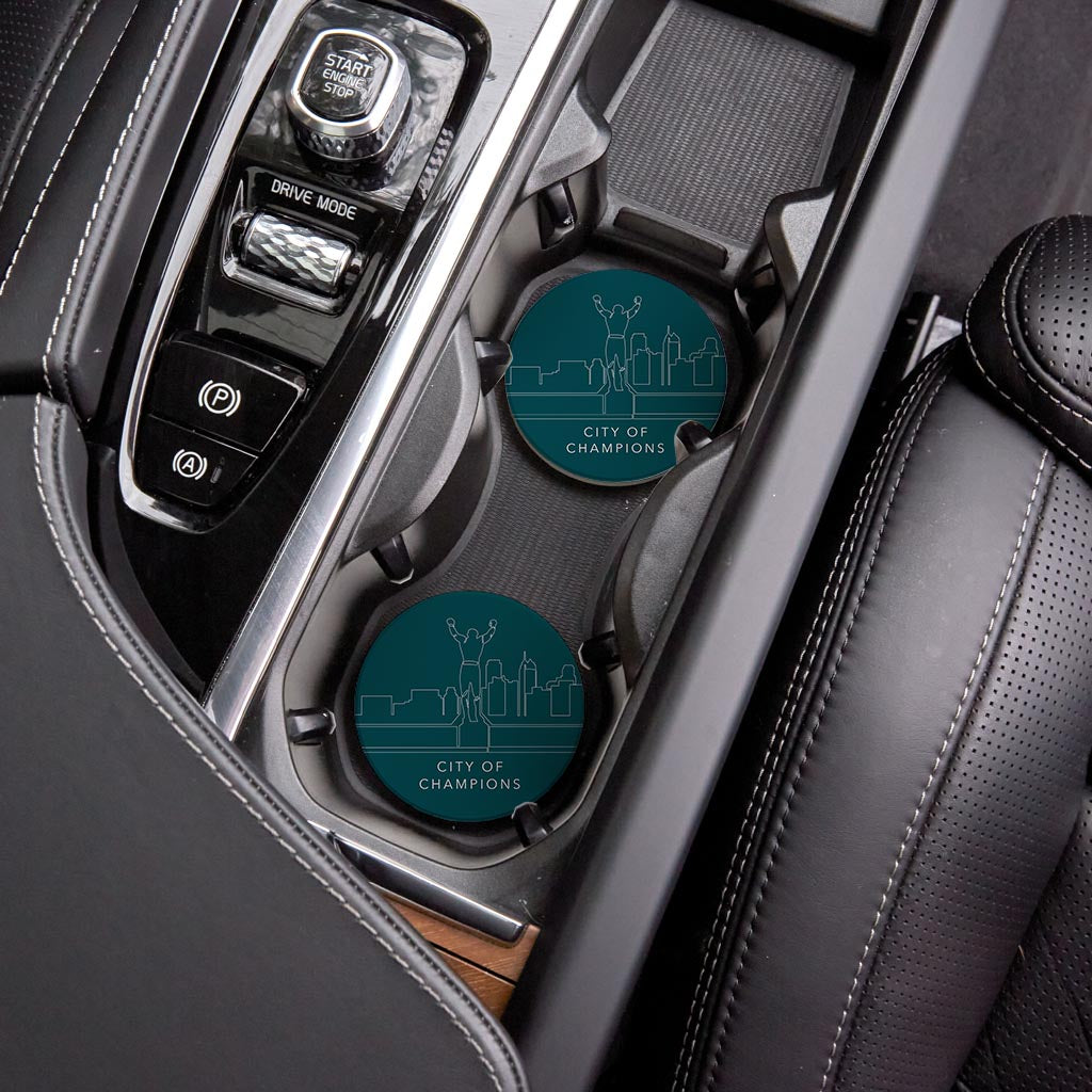 Modern Minimalist Pennsylvania Rocky Statue | Absorbent Car Coasters | Set of 2 | Min 4