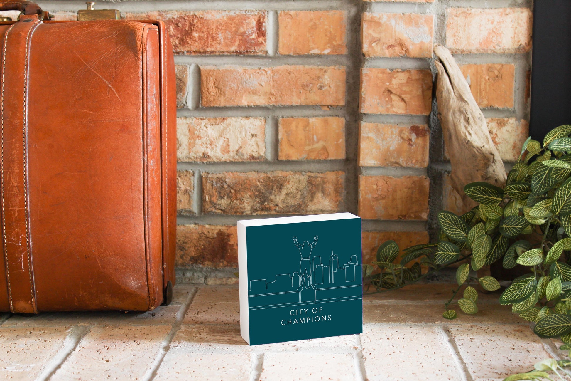 Modern Minimalist Pennsylvania Rocky Statue | Wood Block | Eaches | Min 4