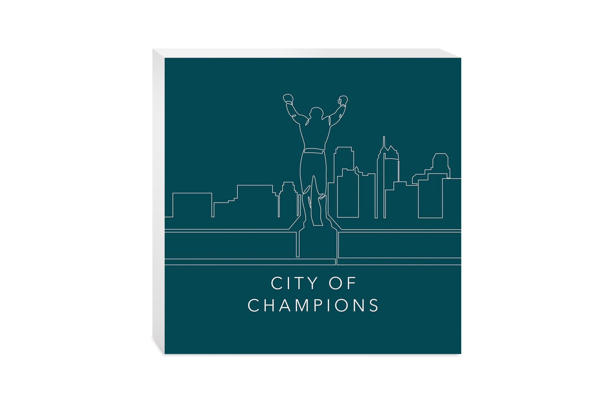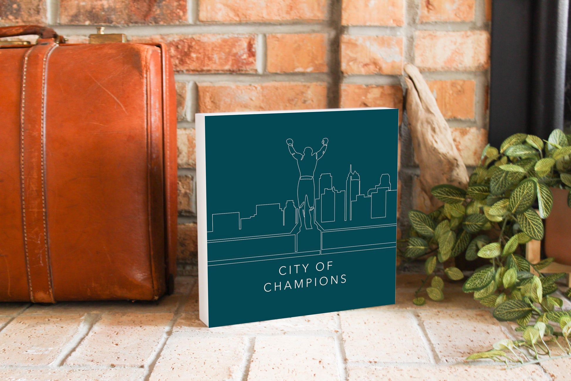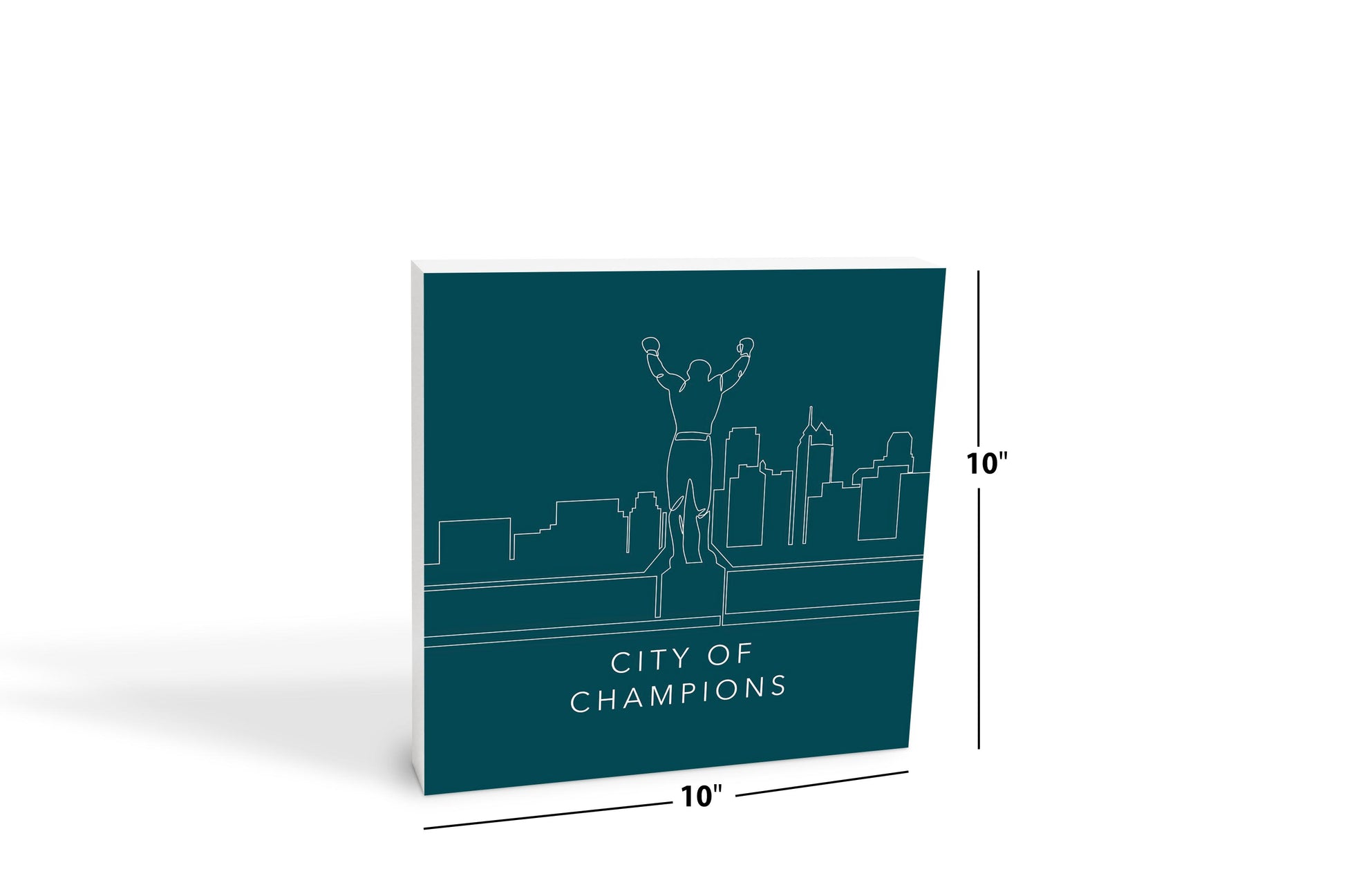 Modern Minimalist Pennsylvania Rocky Statue | Wood Block | Eaches | Min 2