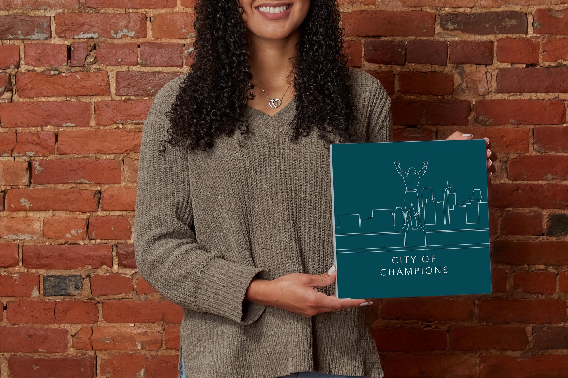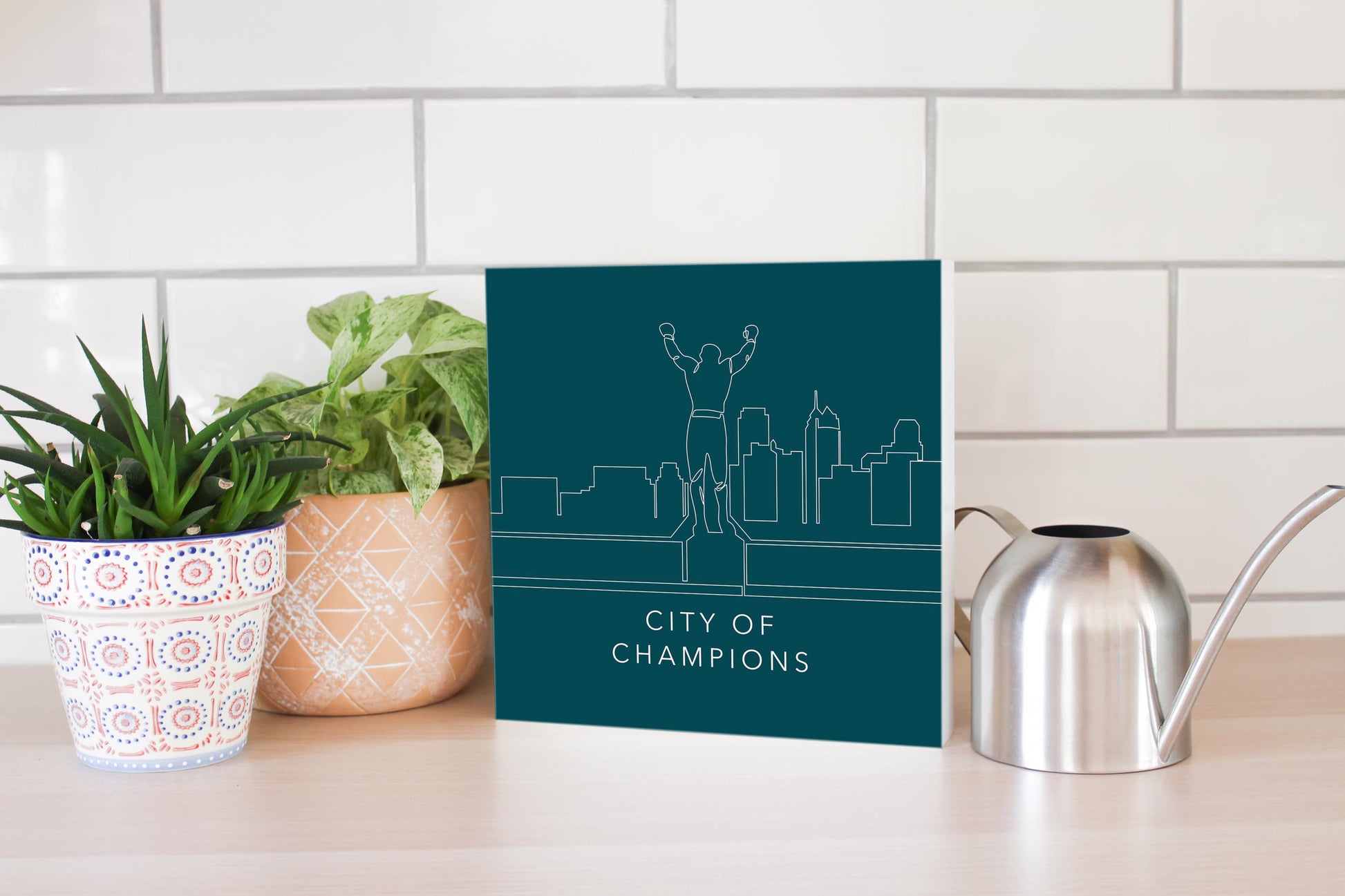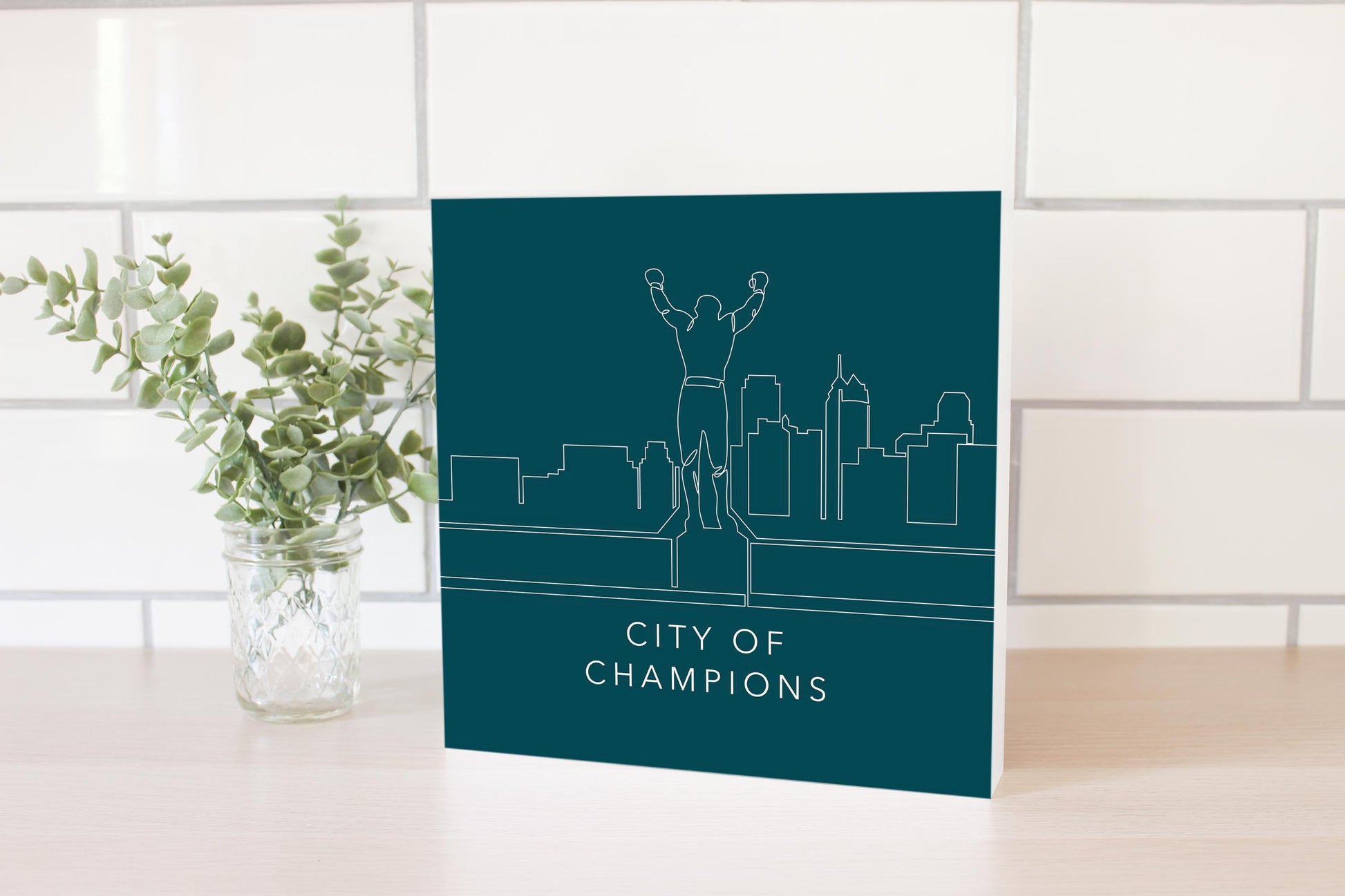 Modern Minimalist Pennsylvania Rocky Statue | Wood Block | Eaches | Min 2