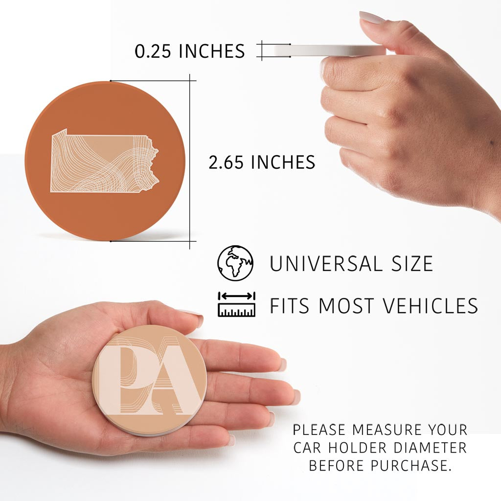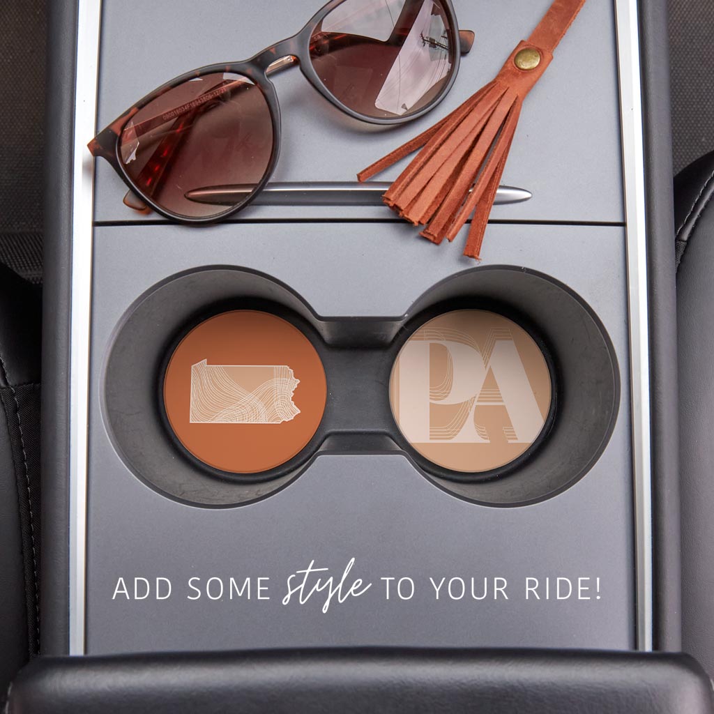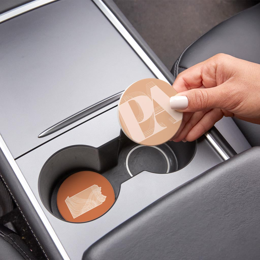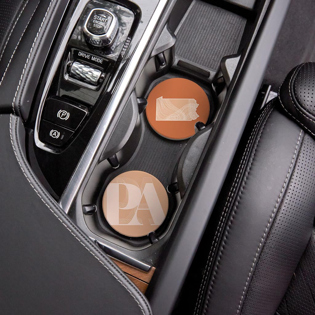 Modern Minimalist Pennsylvania State Initials | Absorbent Car Coasters | Set of 2 | Min 4