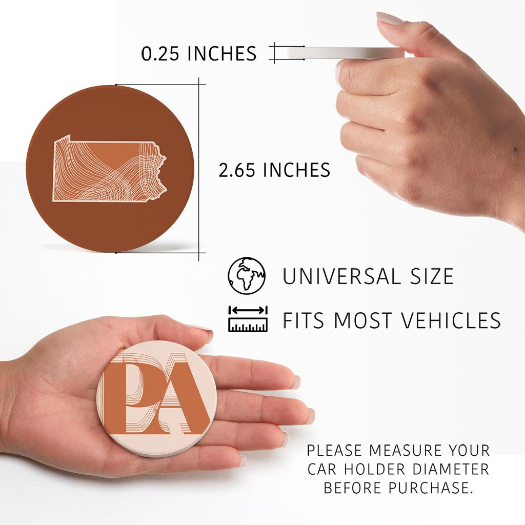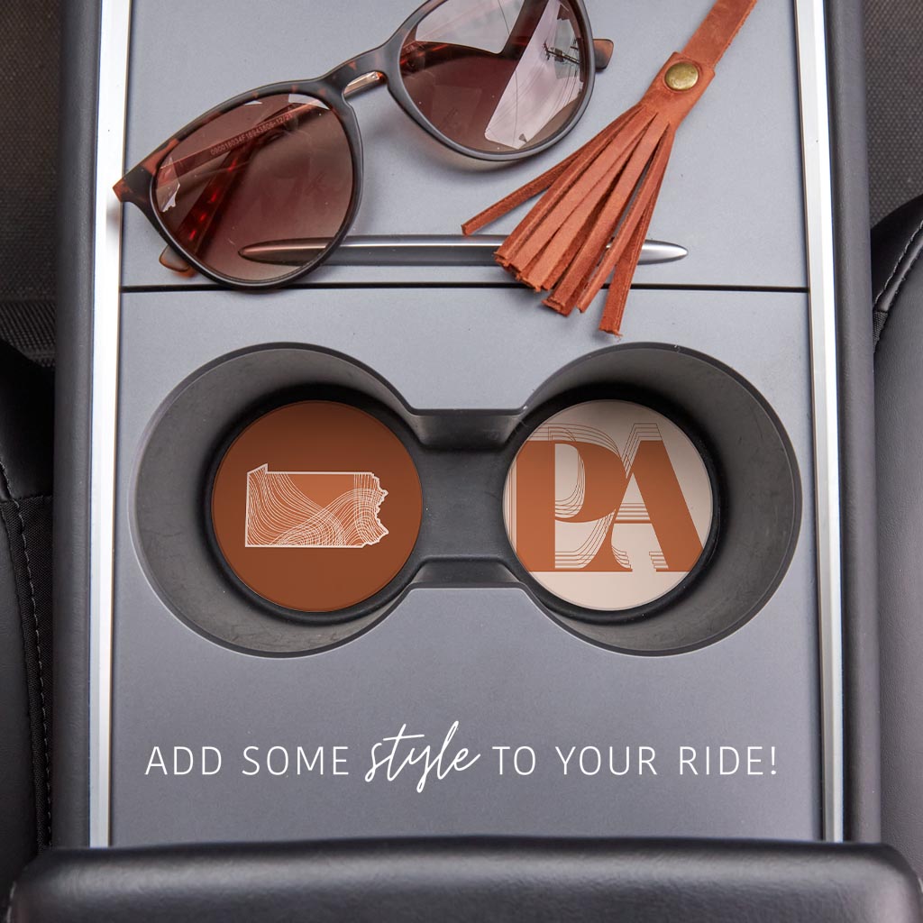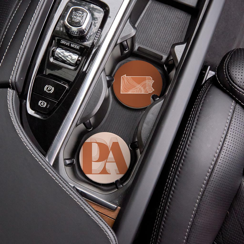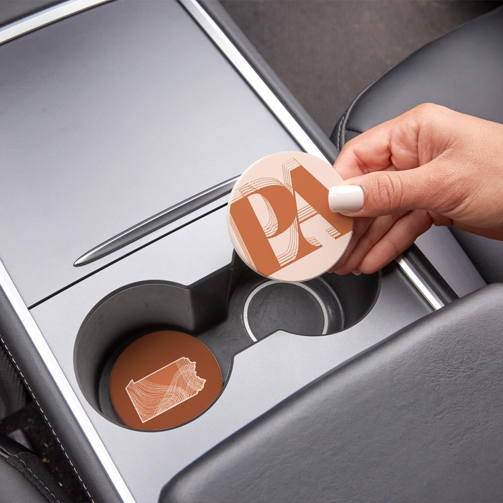 Modern Minimalist Pennsylvania State Initials | Absorbent Car Coasters | Set of 2 | Min 4